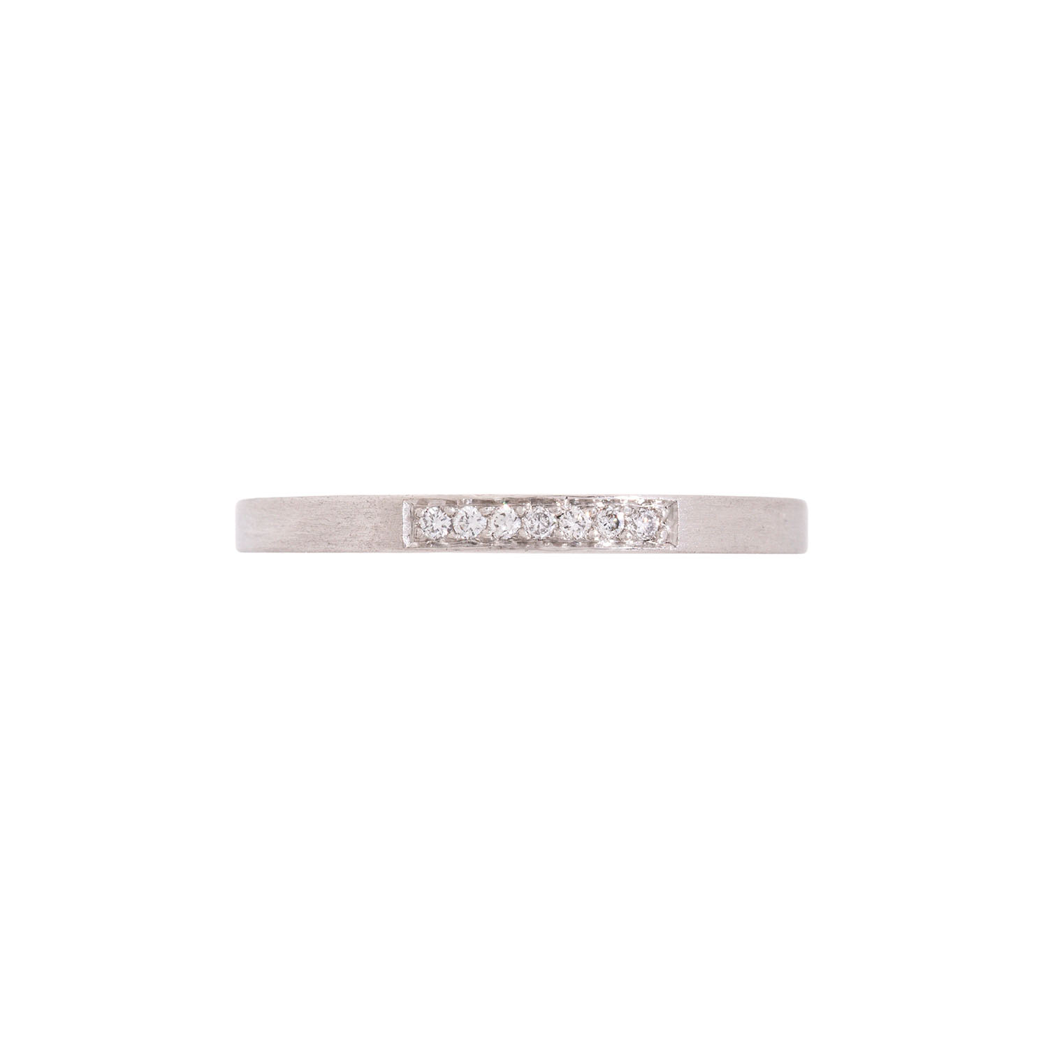 Ring with 7 brilliant cut diamonds, totalling ap. 0.03 ct, platinum, 3.5 g, ring size 51, 21st century, minimal signs of wear.