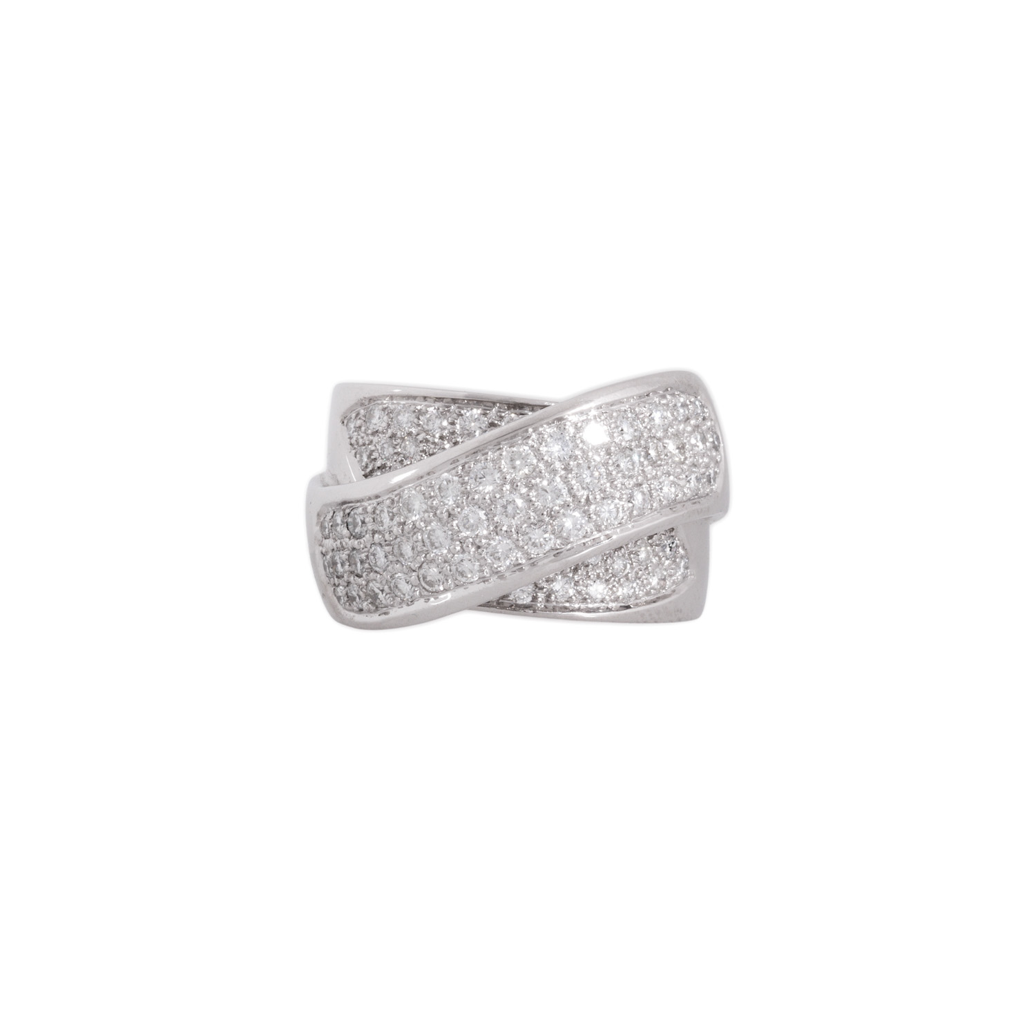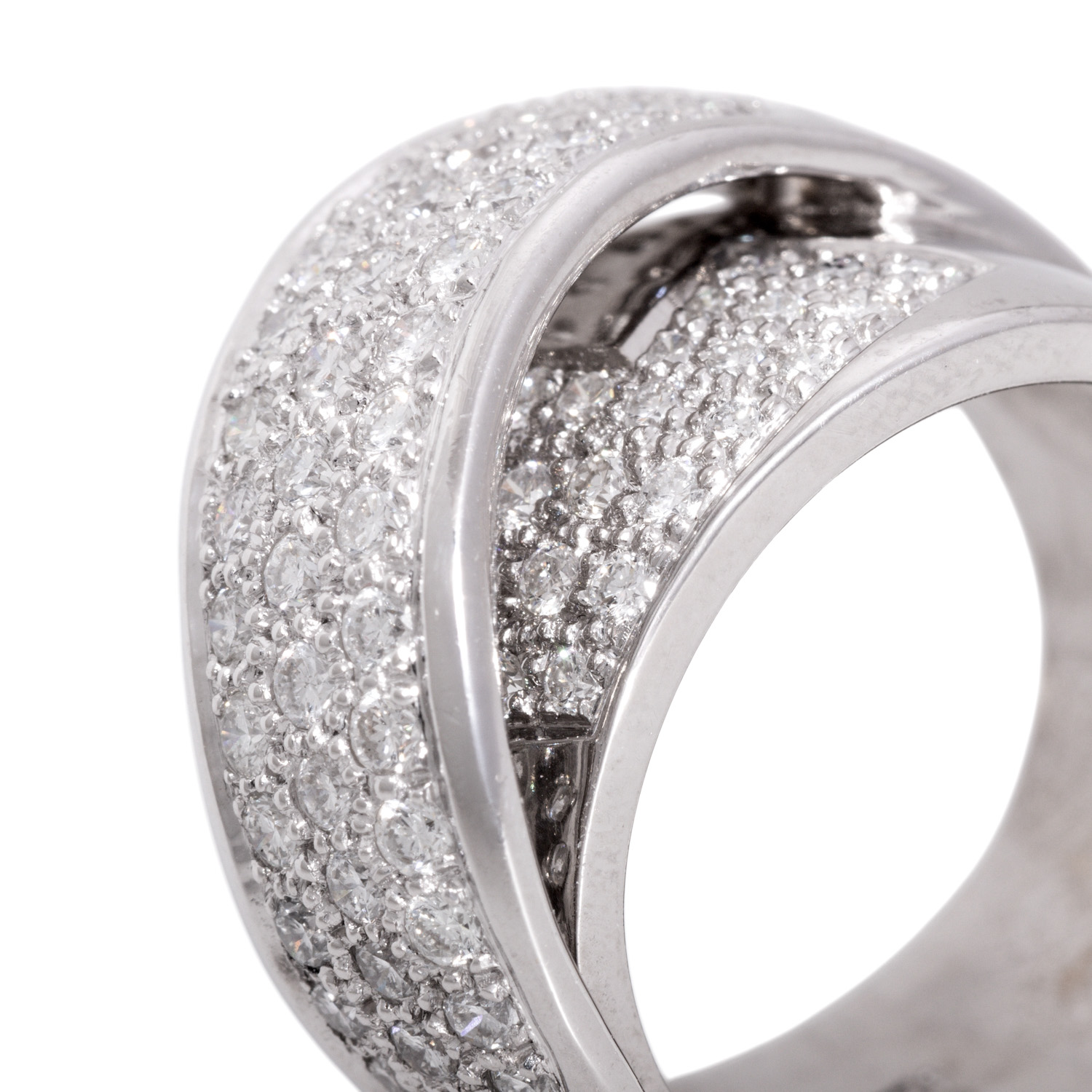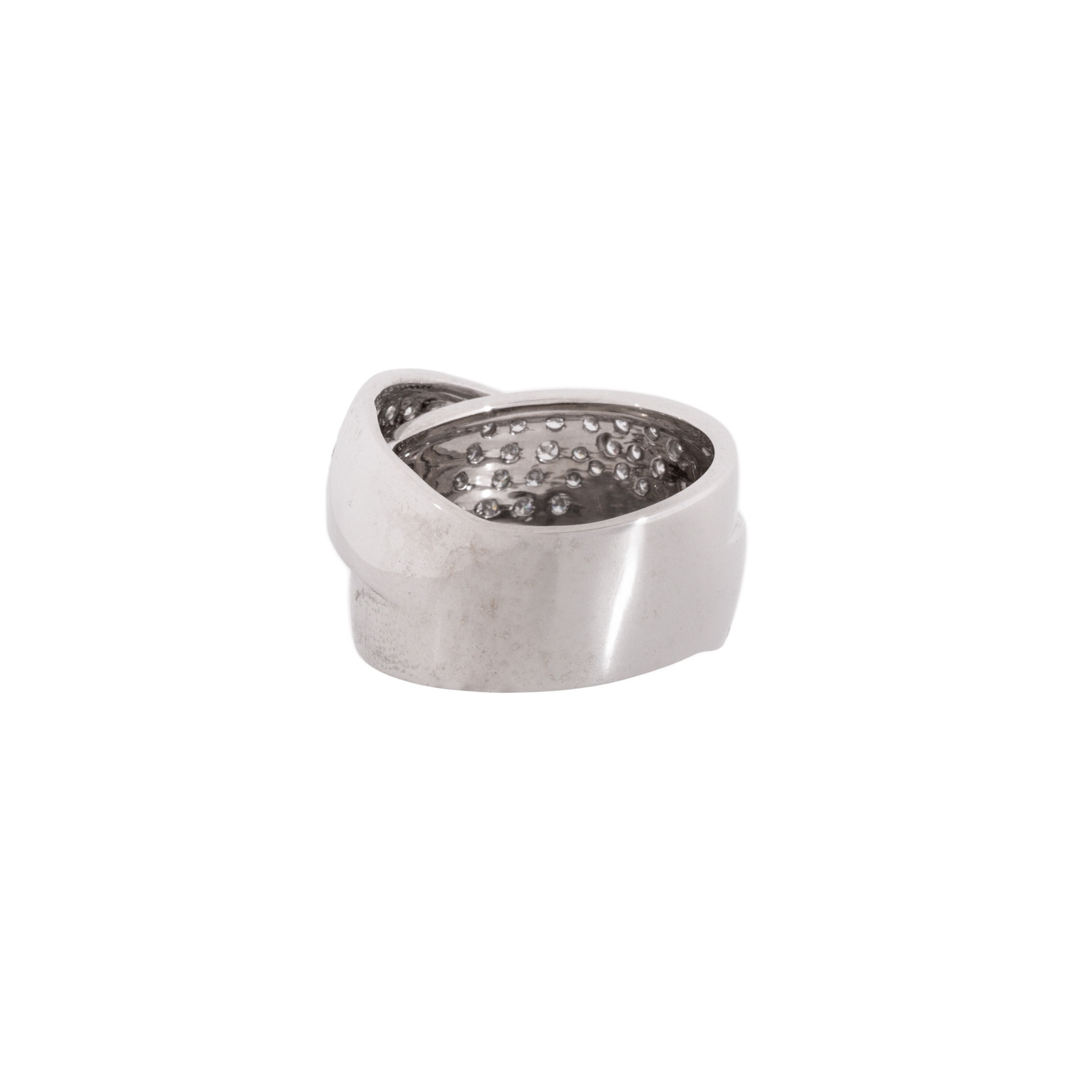 Ring with 85 brilliant cut diamonds, totalling ap. 1,5 ct, good colour and clarity, 18K white gold, 17.2 g, ring size 55, W (ringhead): ap. 14 mm, 20th/21st century, minor signs of wear.