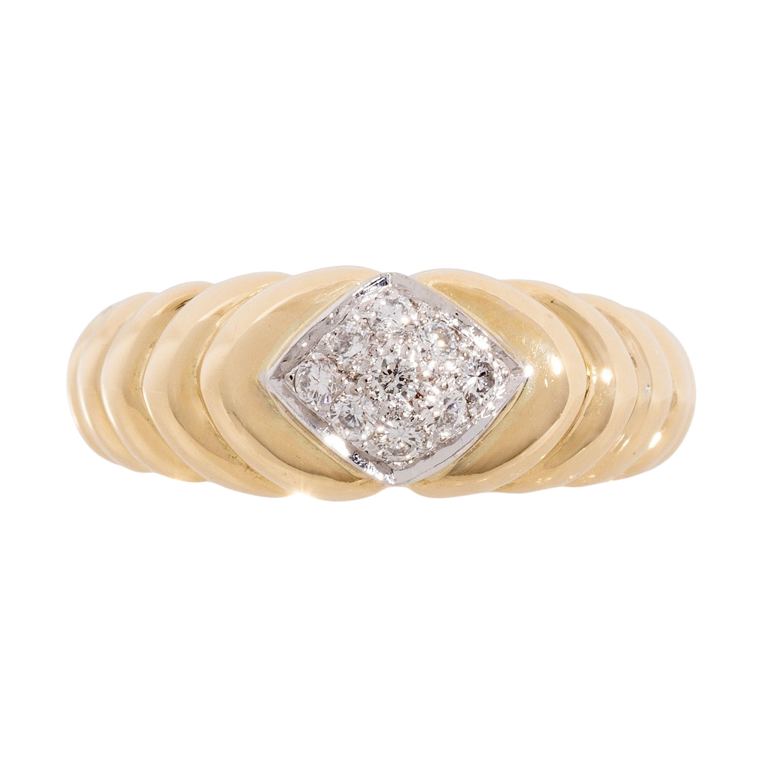 Ring with 9 brilliant cut diamonds, totalling ap. 0.18 ct, good colour and clarity, 18K yellow and white gold, 7.0 g, ring size 55, late 20th century, minimal signs of wear.