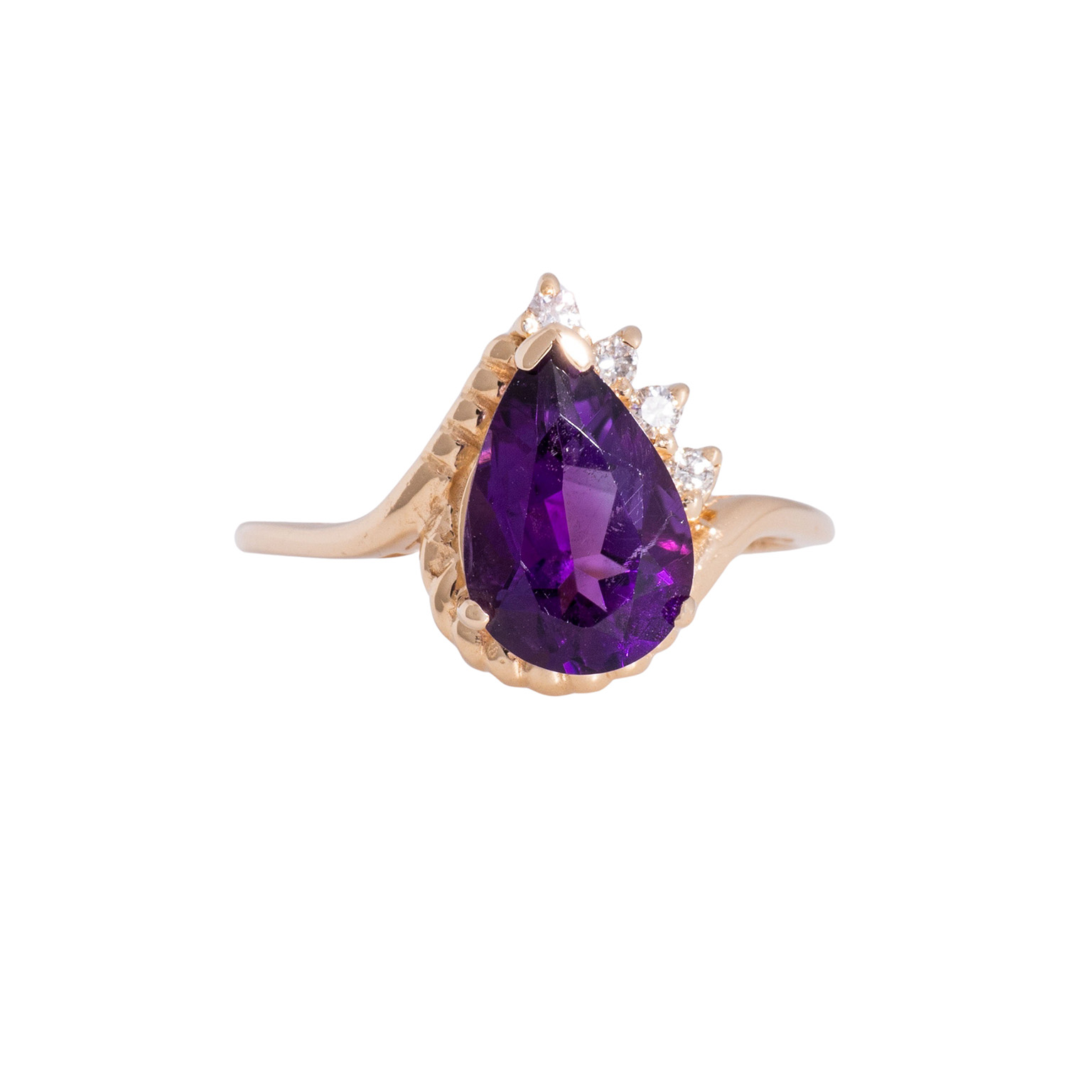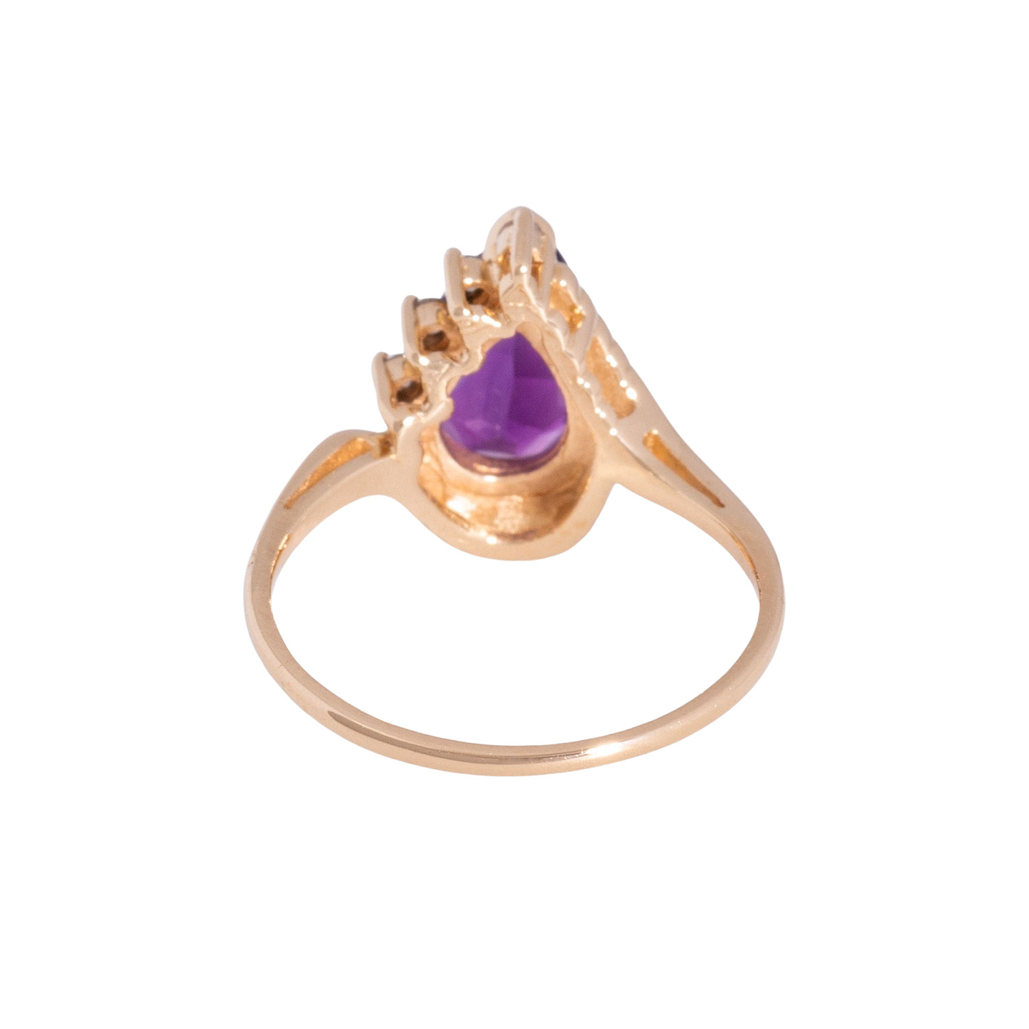 Ring with amtehyste, pendeloque faceted, 10 x 7 mm, 4 brilliant cut diamonds, totalling ap. 0.02 ct, 14K yellow gold, 2.9 g, ring size 53, late 20th century, minor signs of wear.