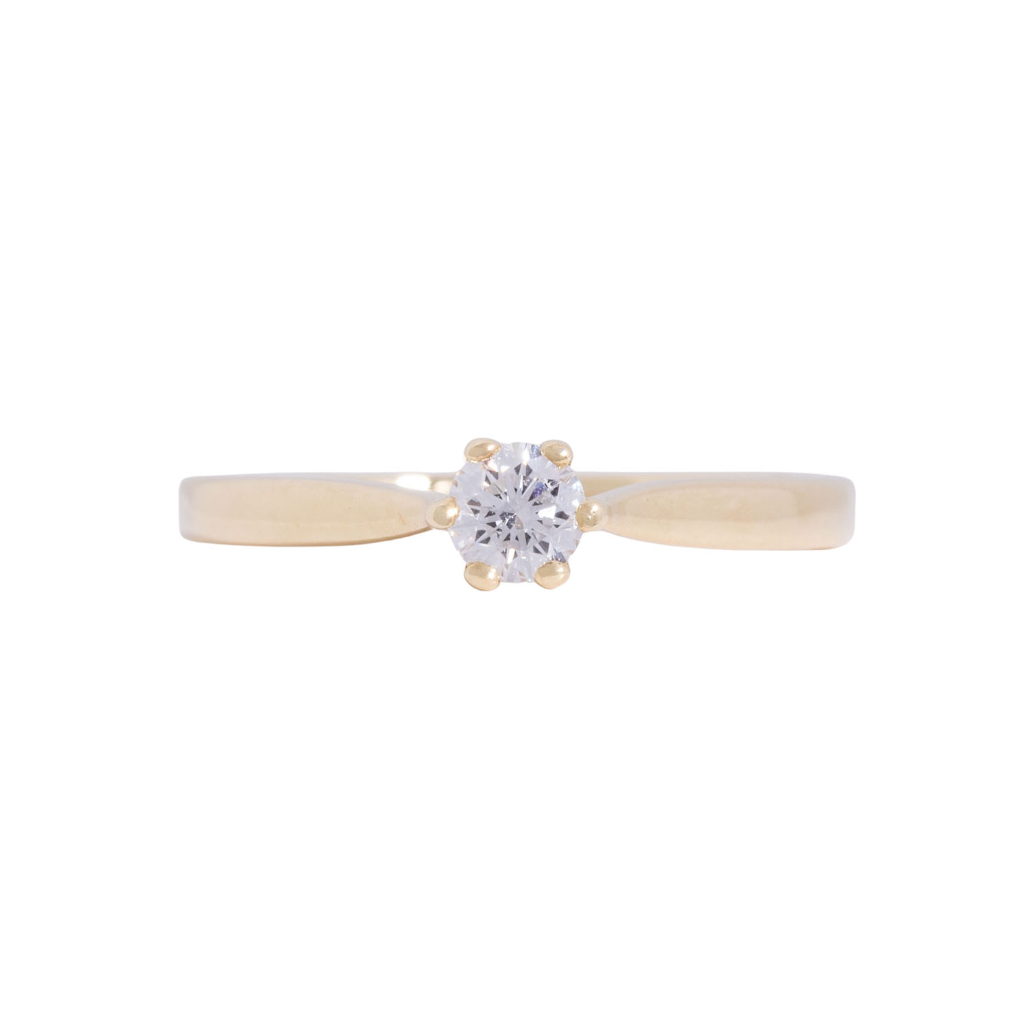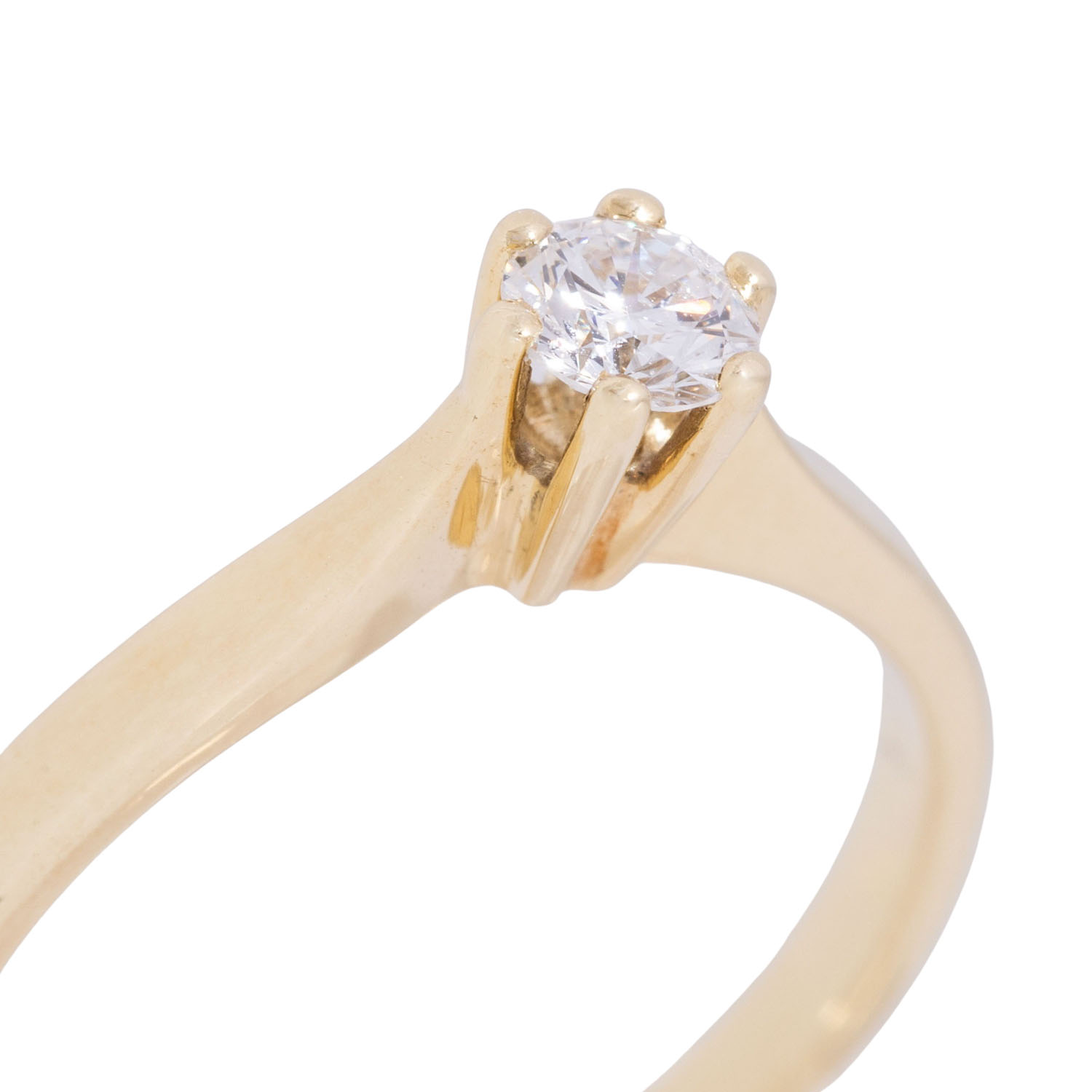 Ring with brilliant cut diamond, ap. 0.20 ct, WHITE (H)/VS, 14K yellow gold, 2.0 g, ring size 52, late 20th century, minimal signs of wear.