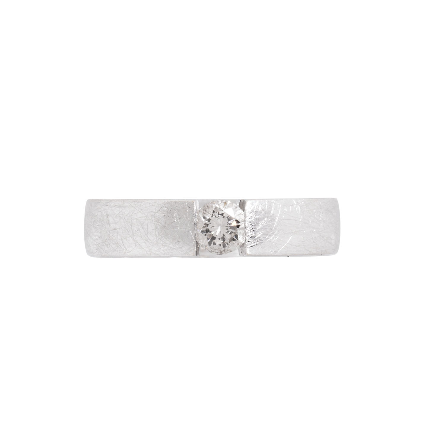 Ring with brilliant-cut diamond, approx. 0.30 ct, approx. TW (K-L)/P, 18K white gold, 6.3g, satin finished, ring size: 56, W: approx. 4.5 mm, 21st century, minor signs of wear.