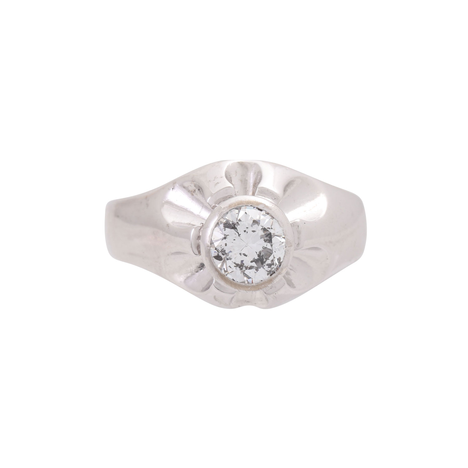 Ring with brilliant-cut diamond ca. 1 ct, ca. RW (F-G)/I2, 14K WG, 9 gr, ring size 68, 2nd half 20th century, minor signs of wear.