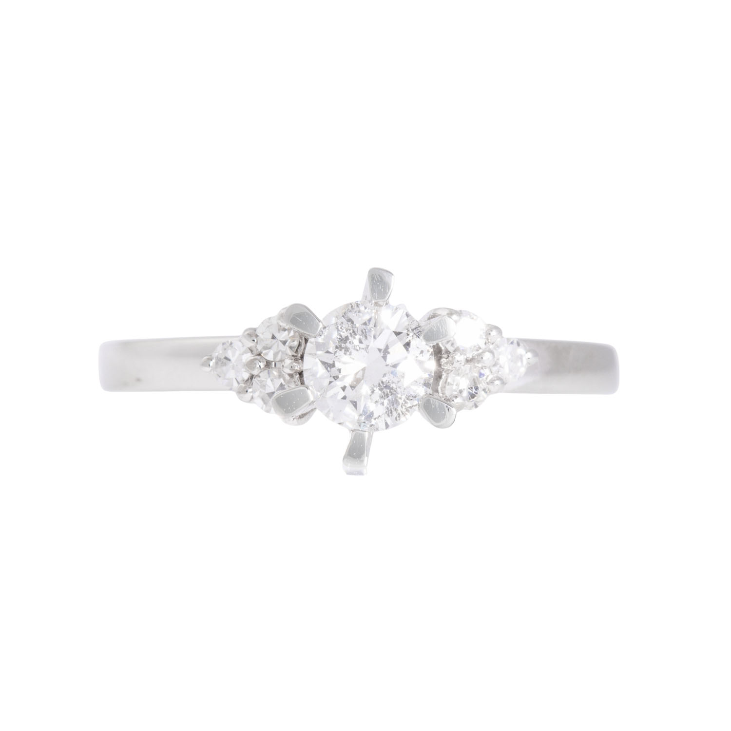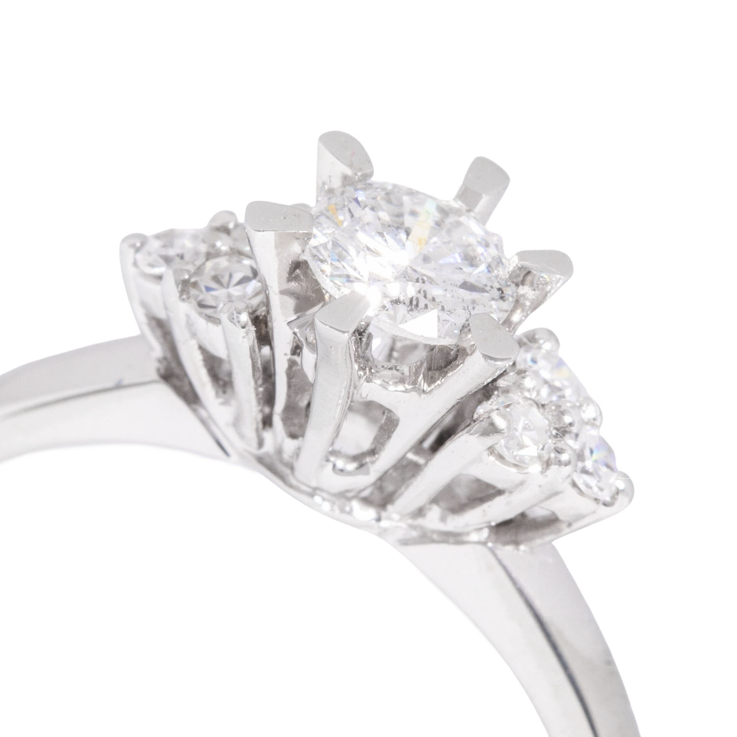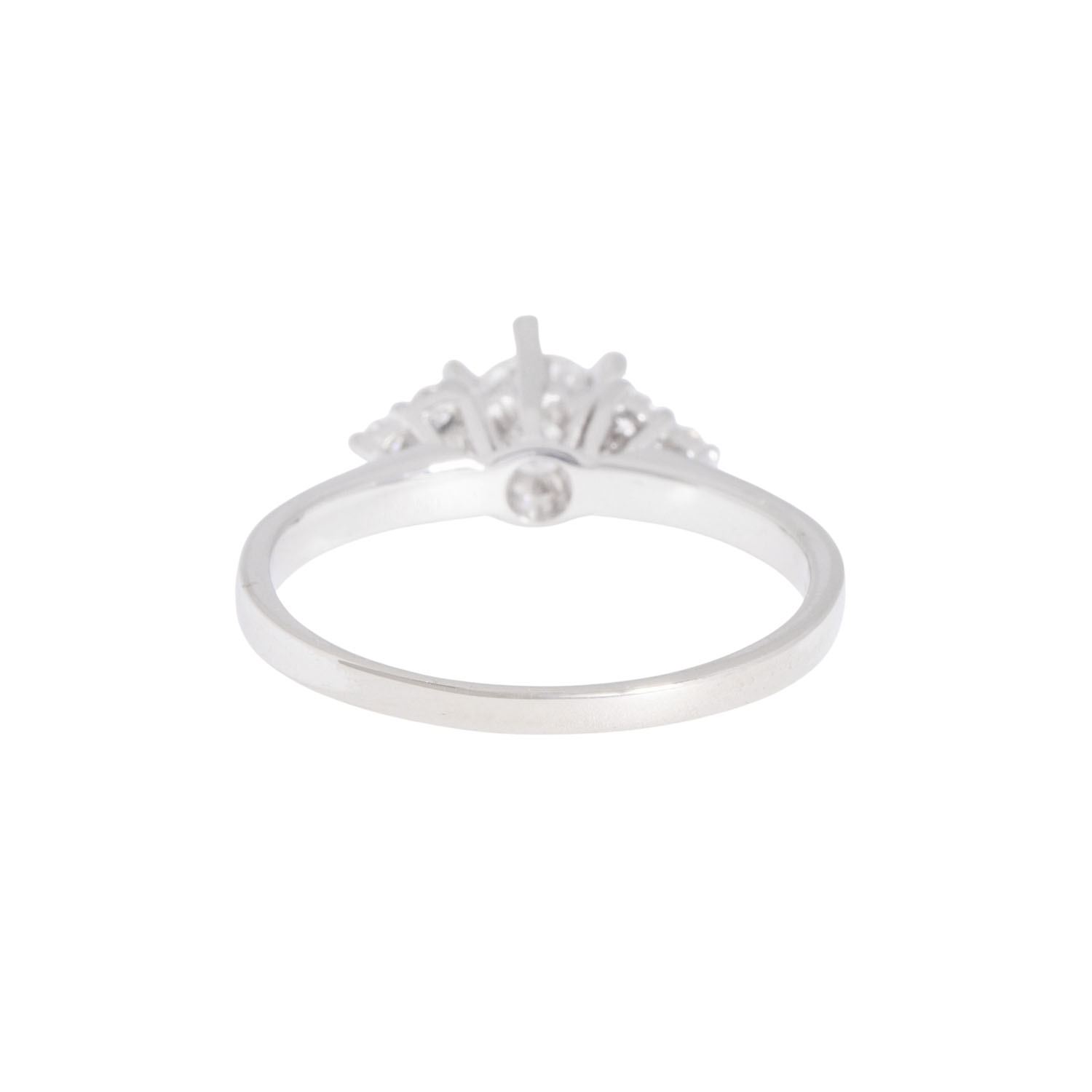 Ring with central brilliant-cut diamond of ca. 0.3 ct, ca. RW (F-G)/I2, additional diamonds totalling ca. 0.12 ct, good colour a. clarity, 18K WG, 2.7 g, ring size 54, 2nd half 20th century, minor signs of wear.
