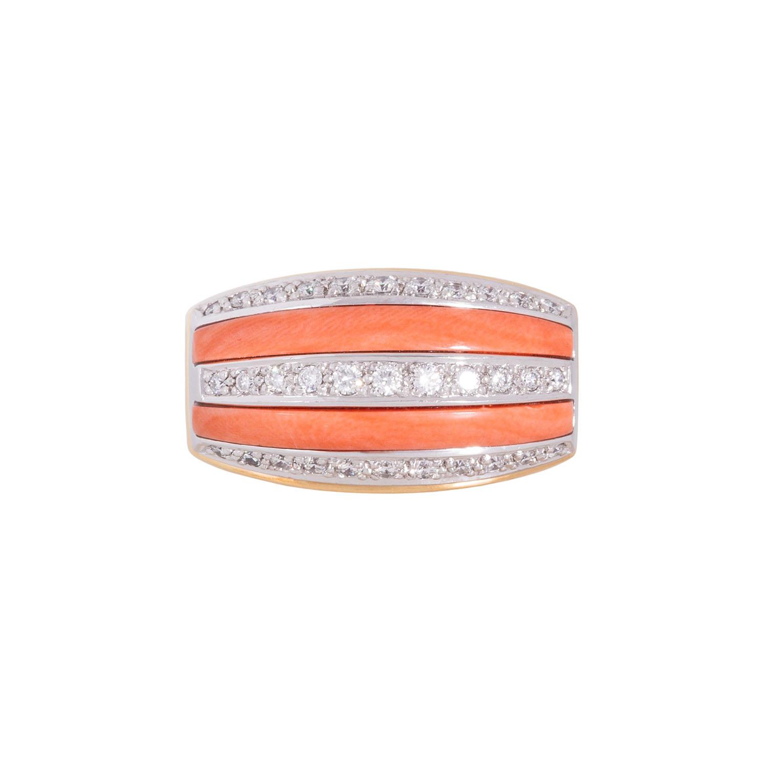 Ring with coral inlay and 33 brilliant-cut diamonds.