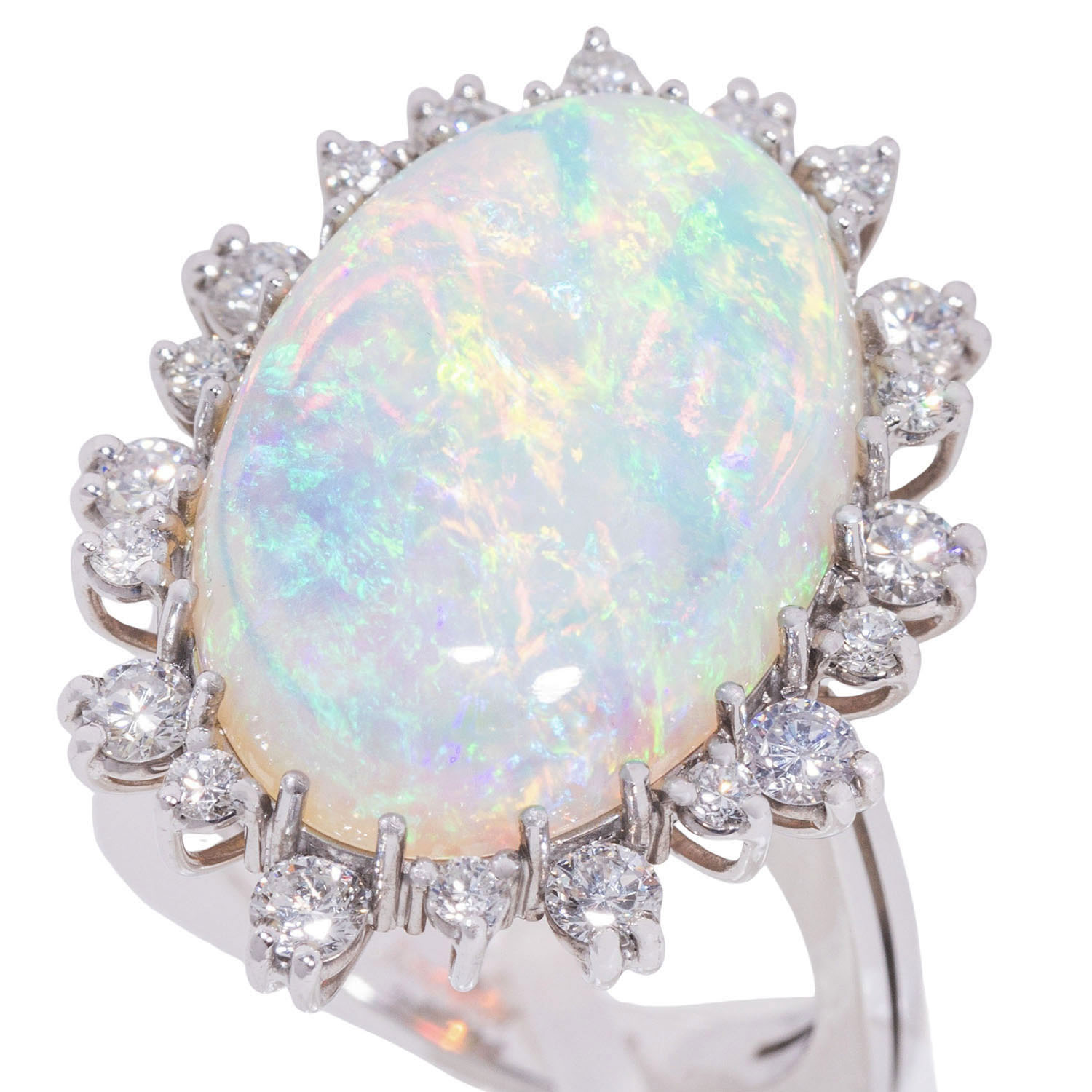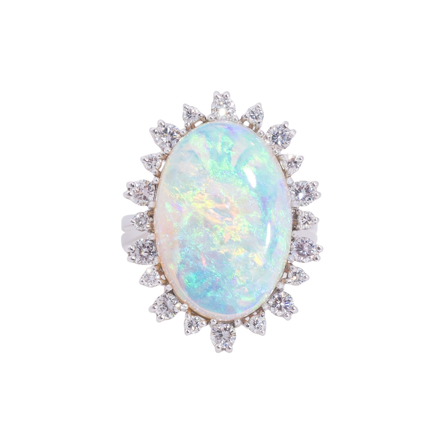 Ring with oval crystal opal surrounded by brilliant-cut diamonds totaling ca. 1.75 ct,