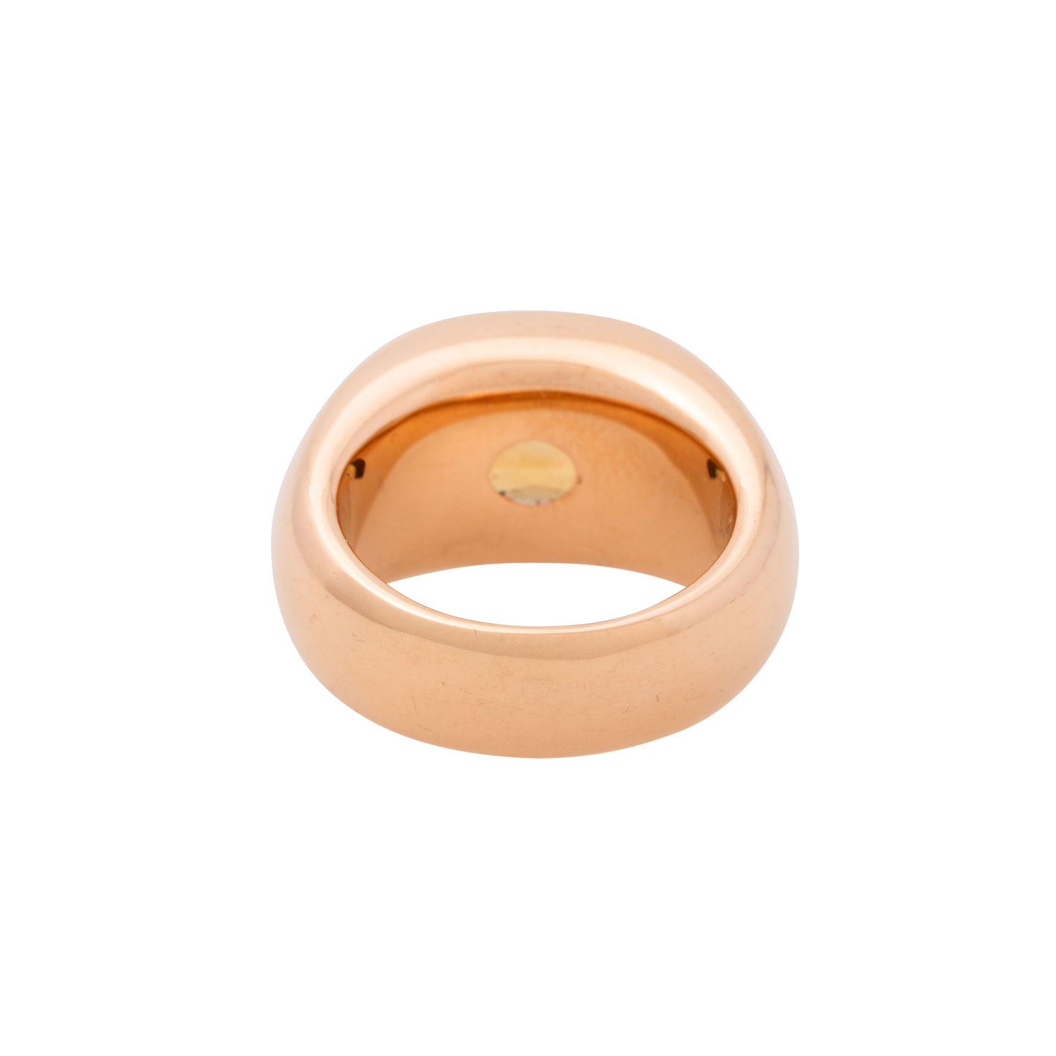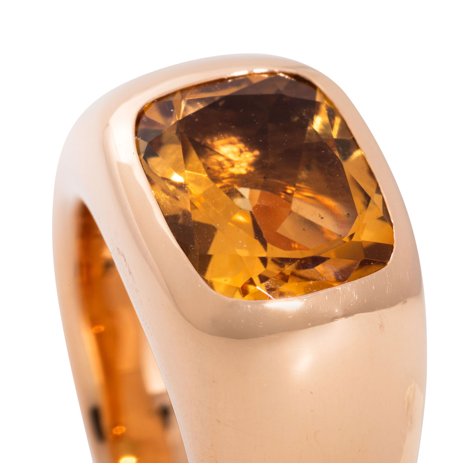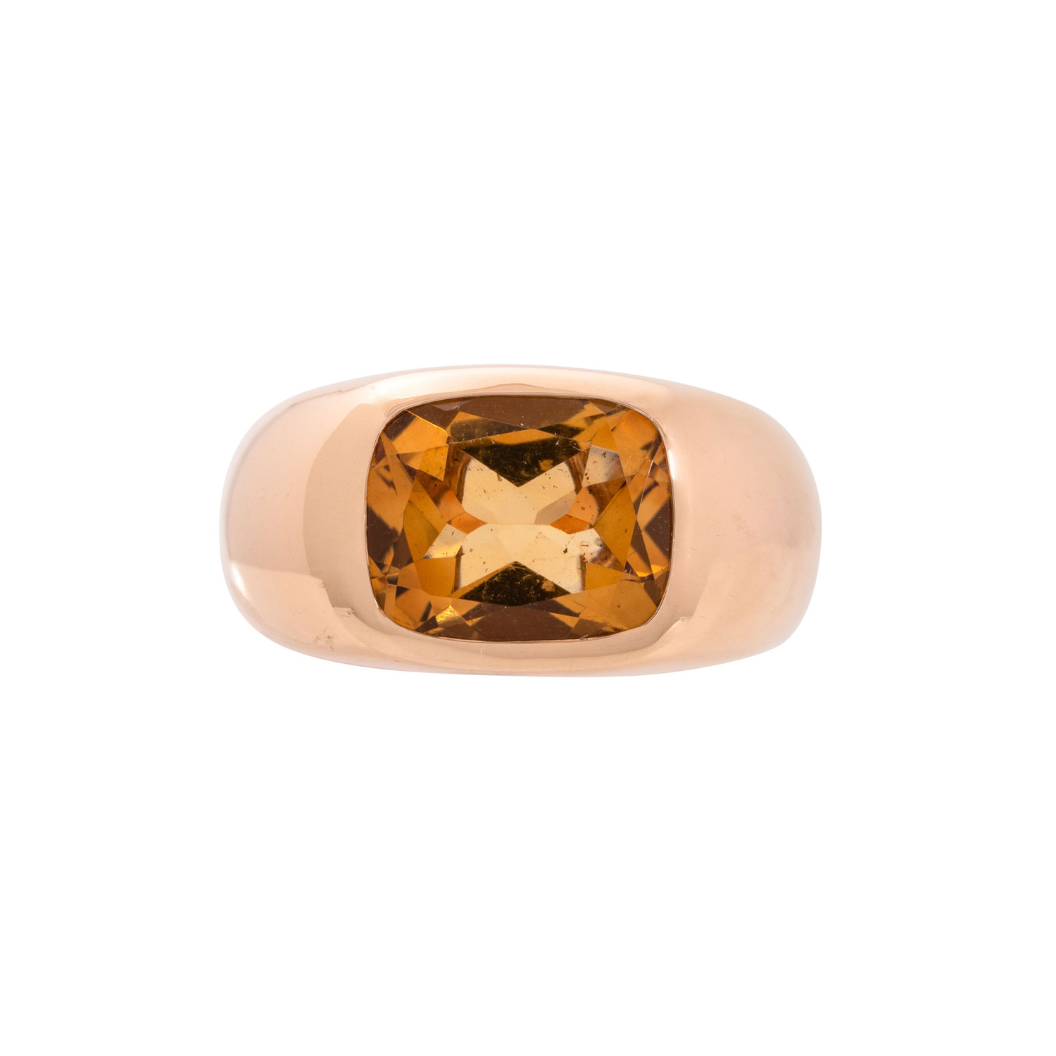 Ring with cushion-cut citrine ca. 4.2 ct, YG 18K, 12.9 g, ring size 54, 21st century, mint condition, solid design.