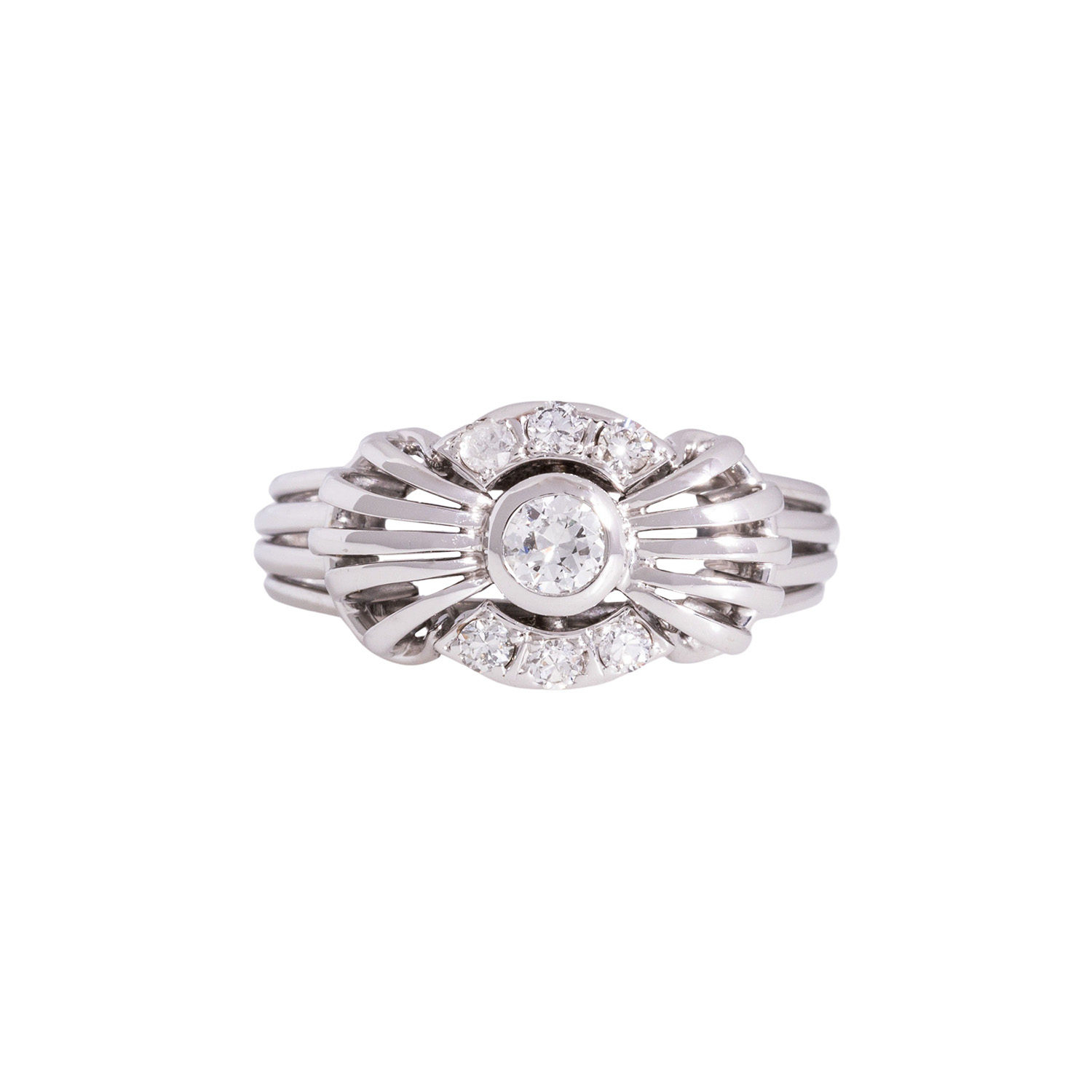 Ring with Brillant-cut diamond ca. 0.25 ct, old-european- and single-cut diamonds totalling ca. 0.05 ct, STW (I-J)/VS - P, 14K white gold, 5.7 g, ring size 57, late 20th century, one brilliant chipped, minor signs of wear.
