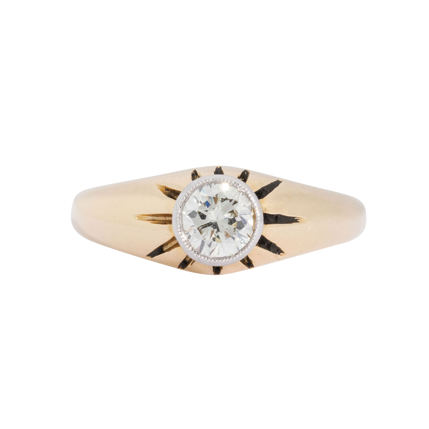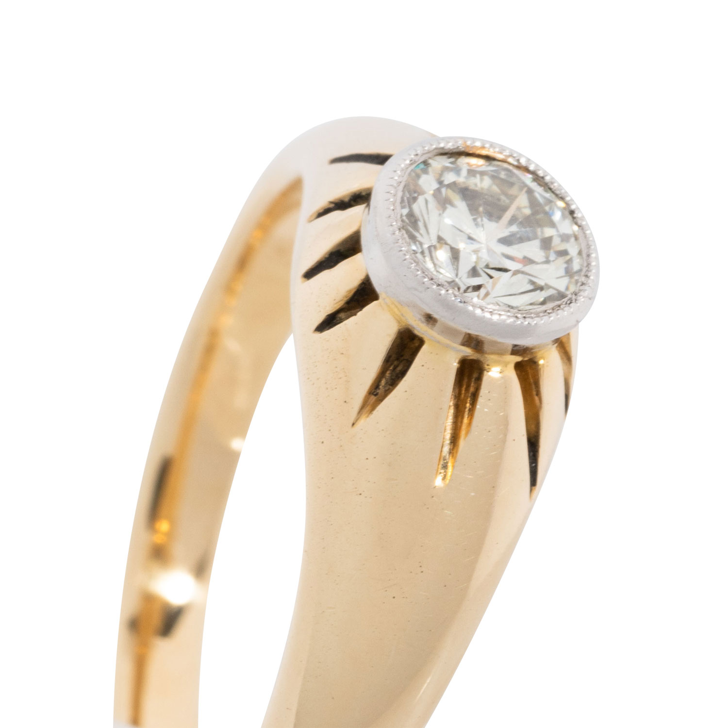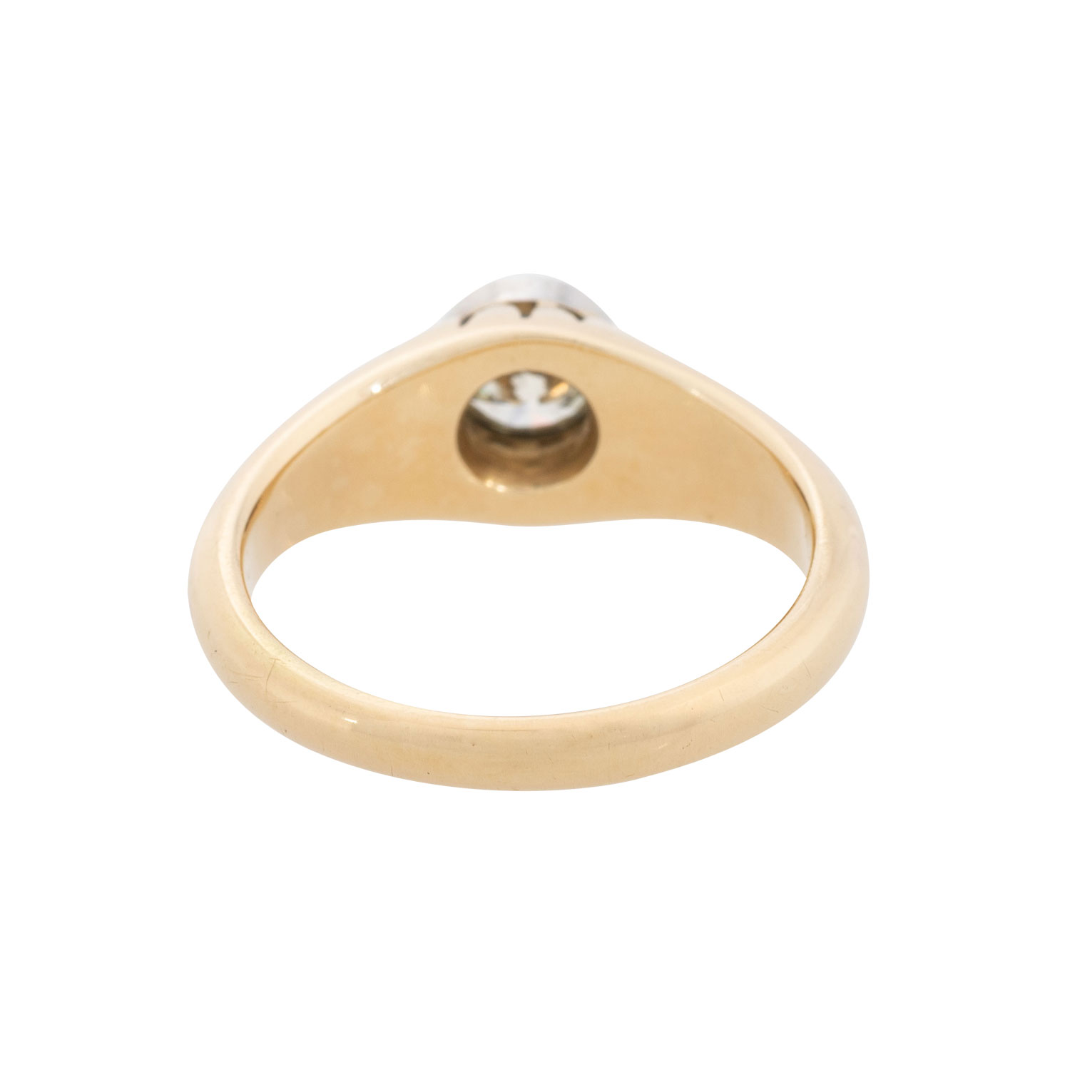 Ring with brilliant cut diamond, ap. 0.50 ct, STW (I)/VS, 14K yellow and white gold, 5.9 g, ring size 54, 2nd half of 20th century, minimal signs of wear.