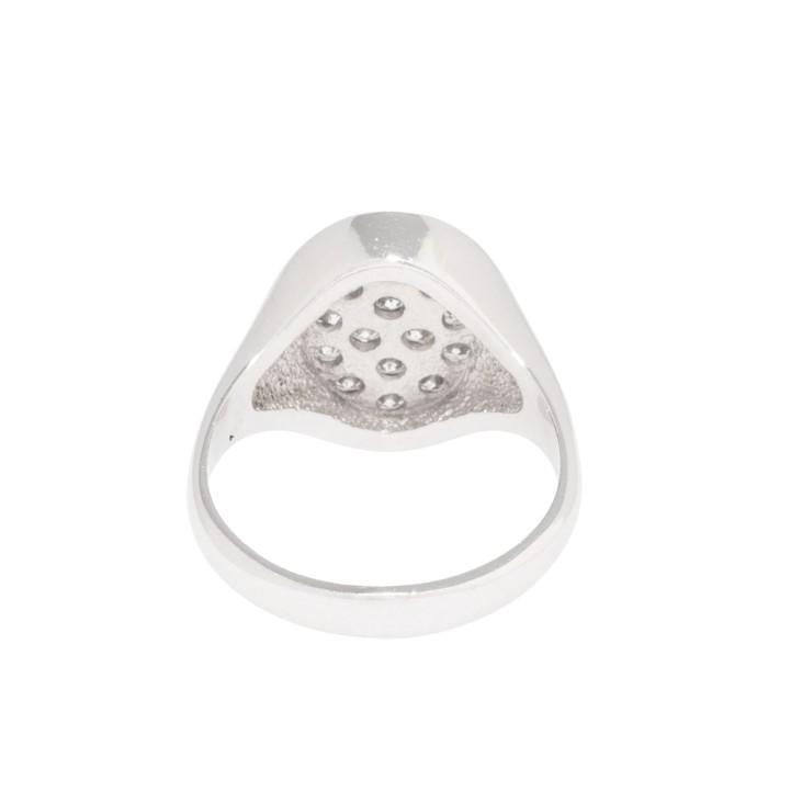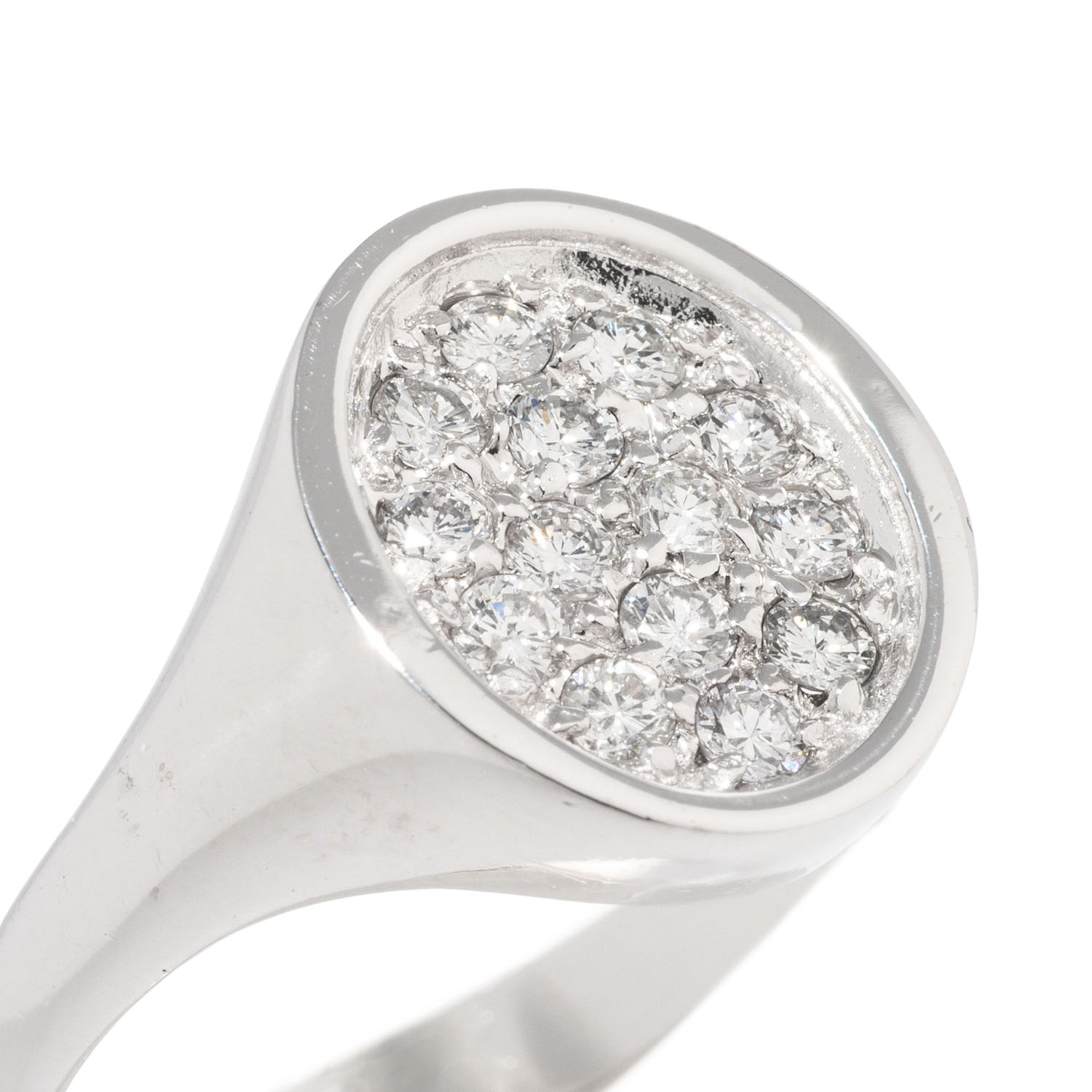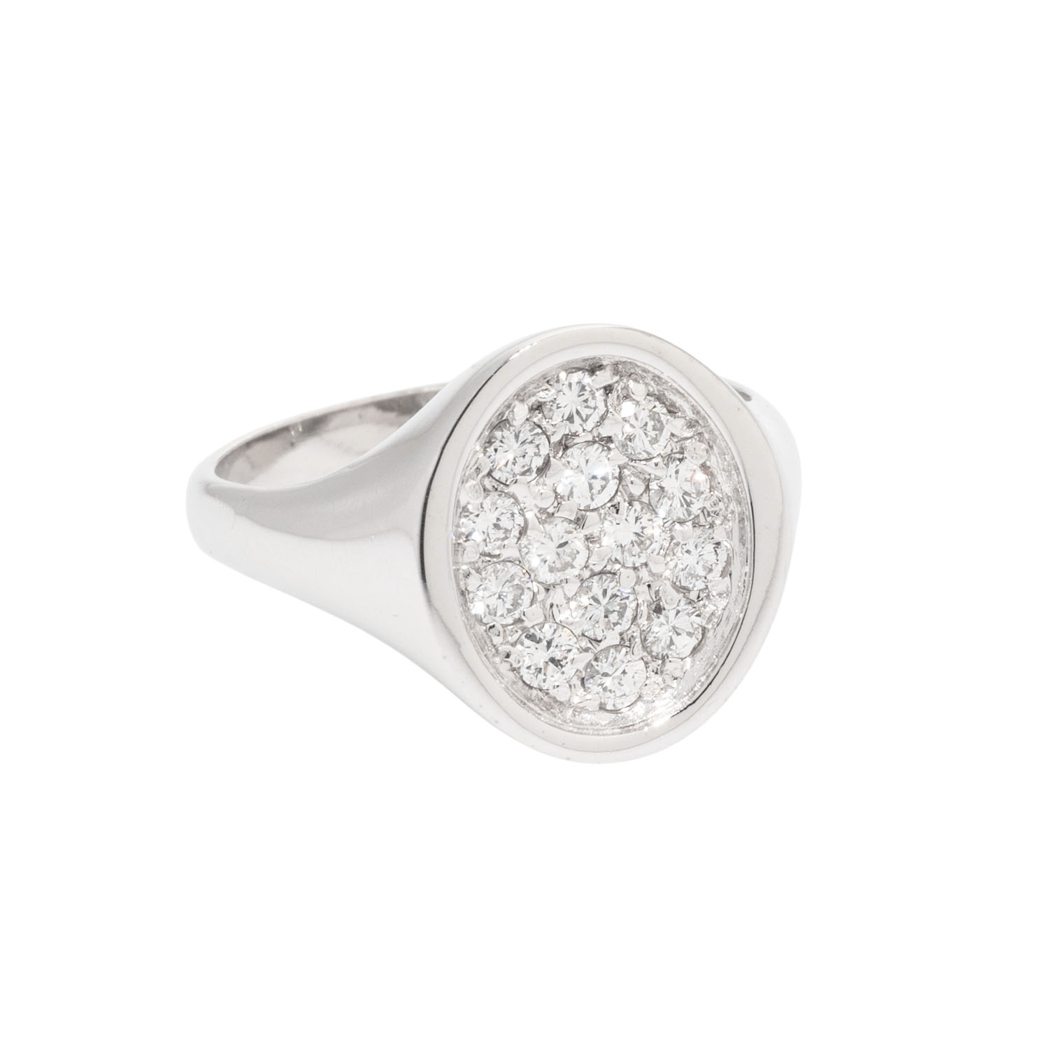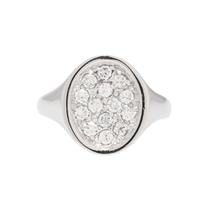 Ring with brilliant-cut diamonds totalling ca. 0.55 ct, ca. WHITE (H)/VS-SI in oval ring head, 14K white gold, 8.6 g, ring size 57, 2nd half of 20th century, minor signs of wear.
