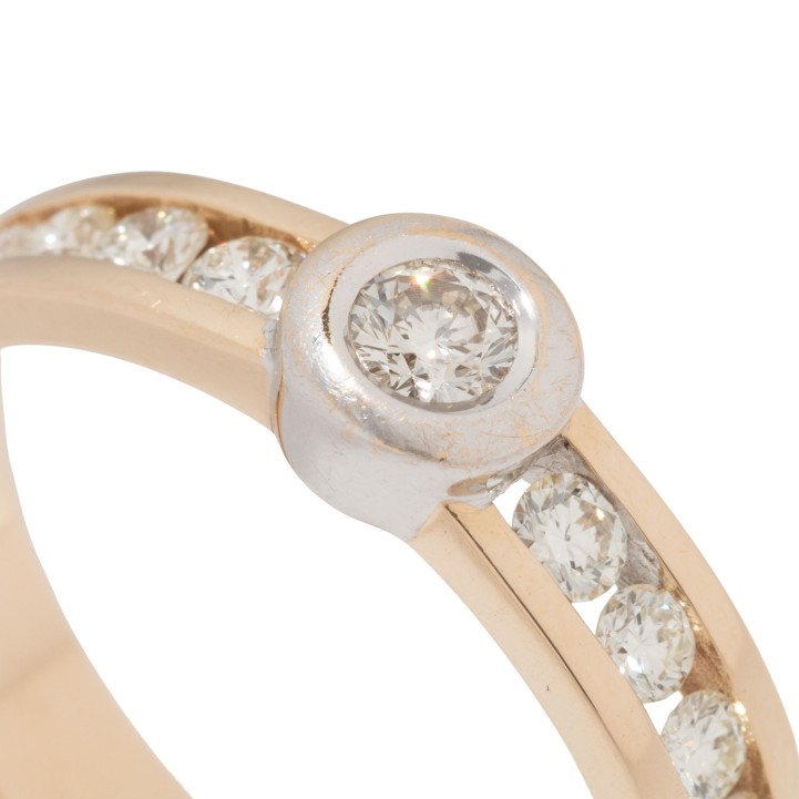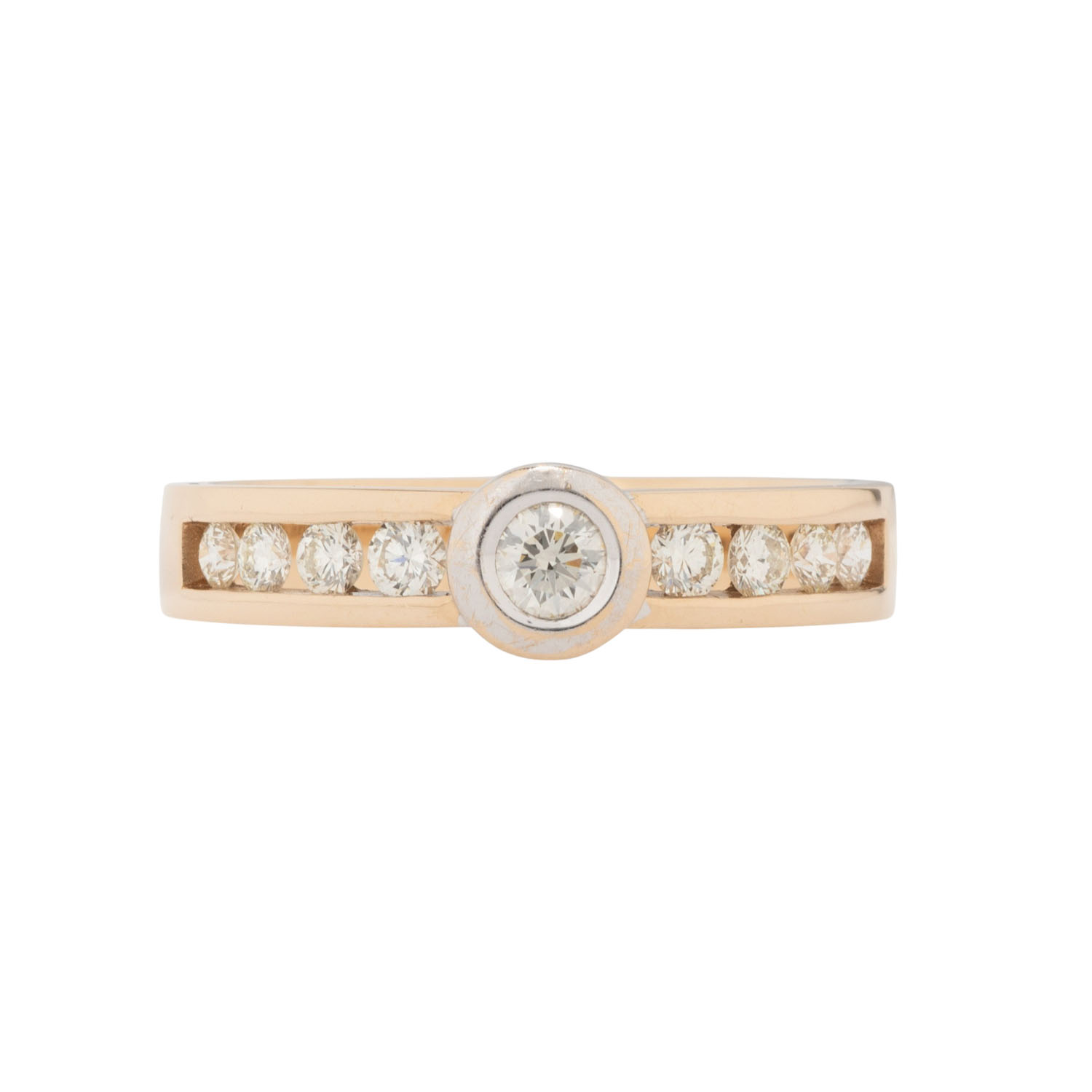 Ring with brilliant-cut diamonds totalling ca. 0.60 ct, ca. TIN (M-N)/VS, 14K YG, 6.2 g, ring size 66.5, 20th/21st century, minor signs of wear.