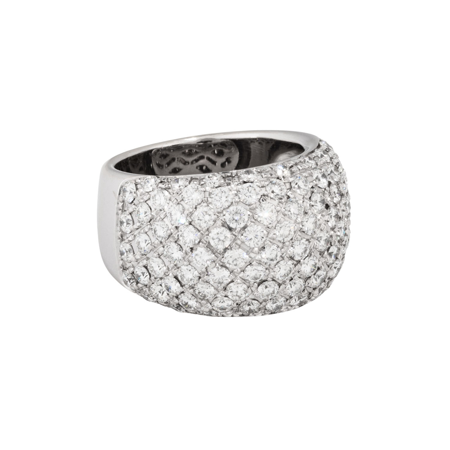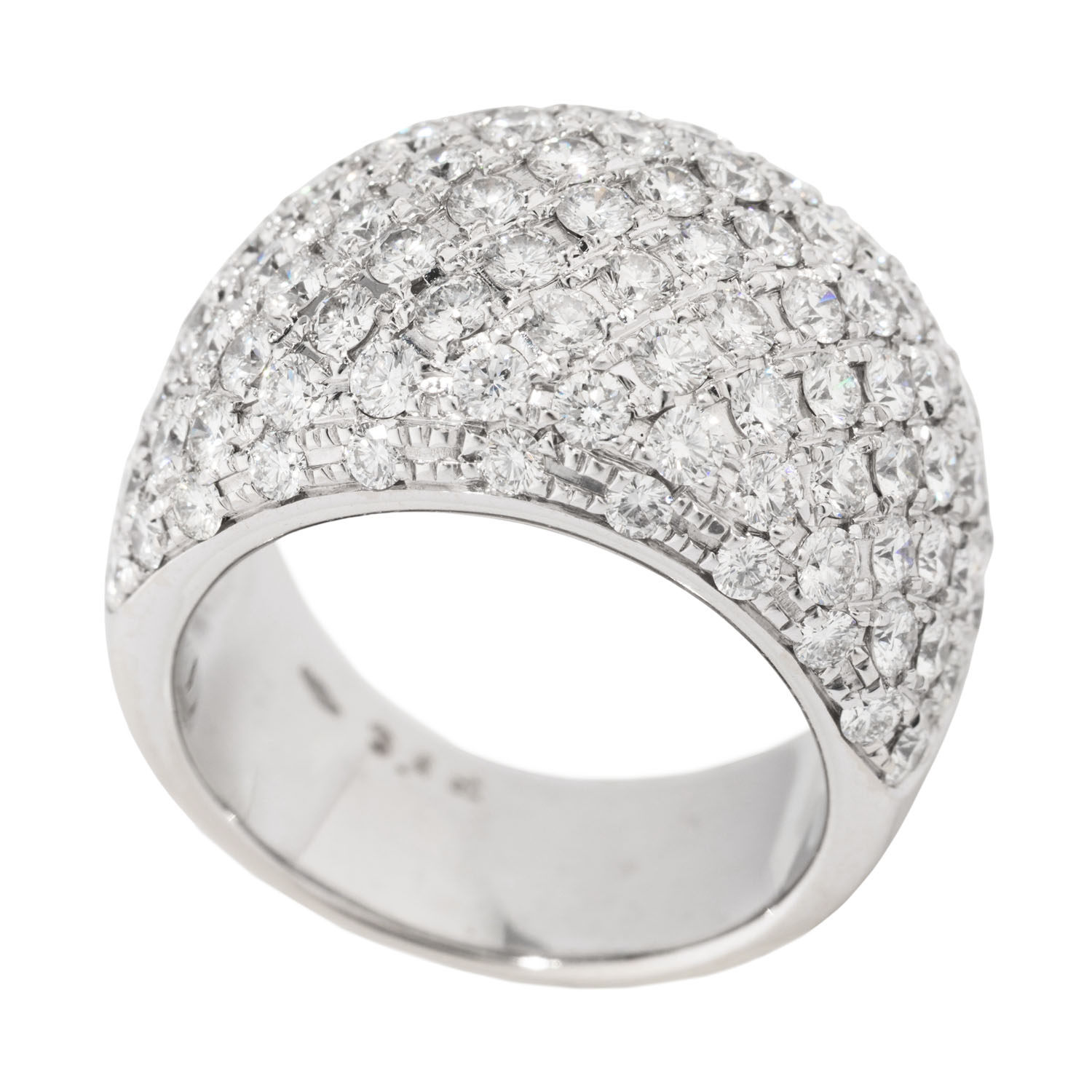 Ring with brilliant-cut diamonds totalling ca. 3.4 ct, marked, ca. RW-WHITE (G-H)/VVS-VS, 18K white gold, 18.8 g, ring size 55, 20th/21st century, signs of wear, rhodium plating abraded, including value certificate (2003): 9,800 €.