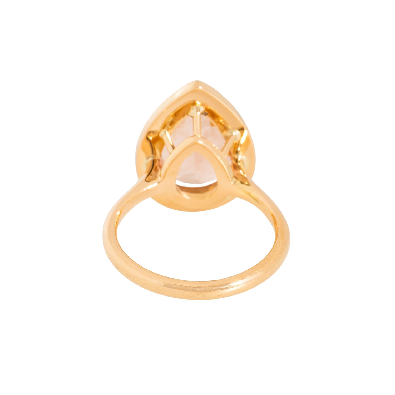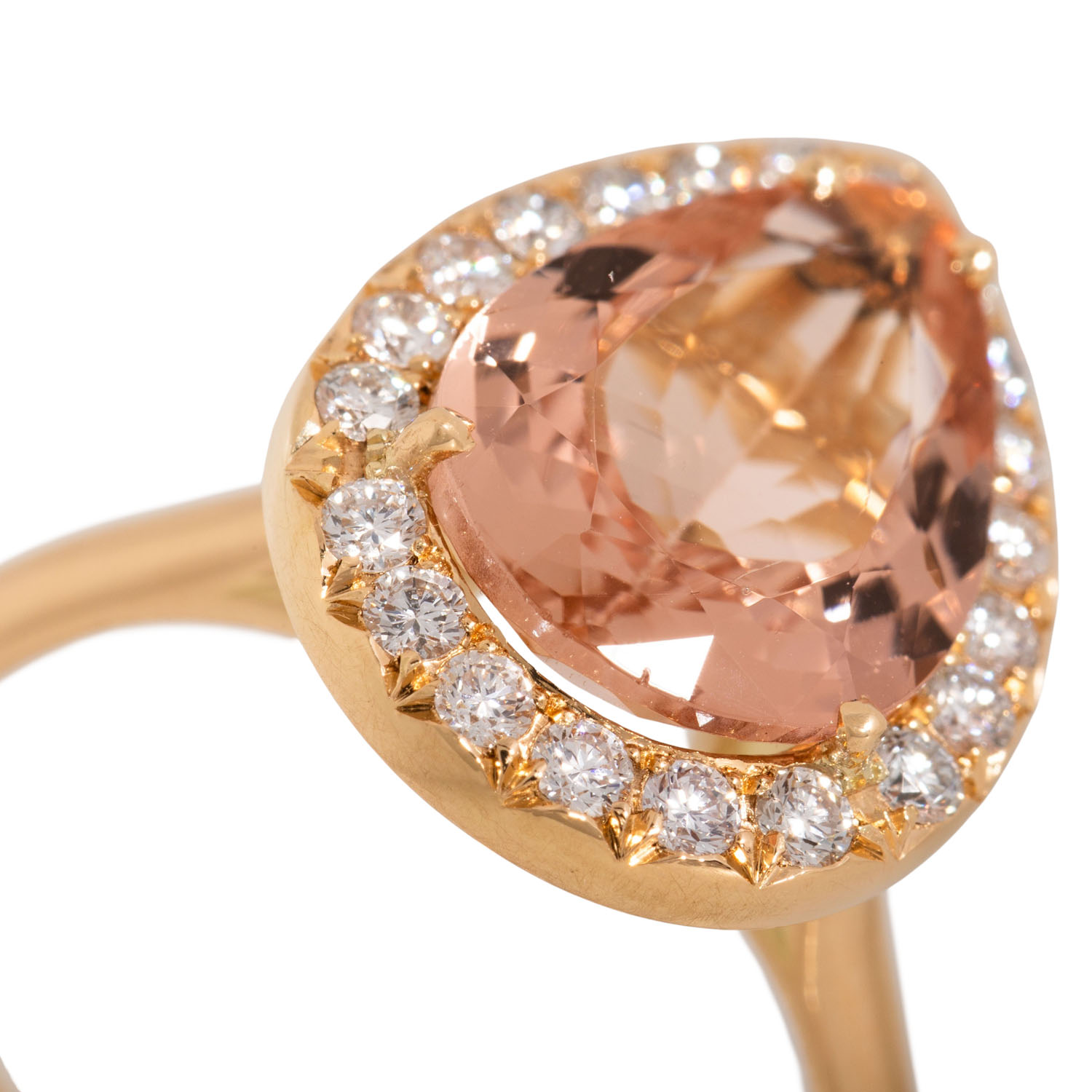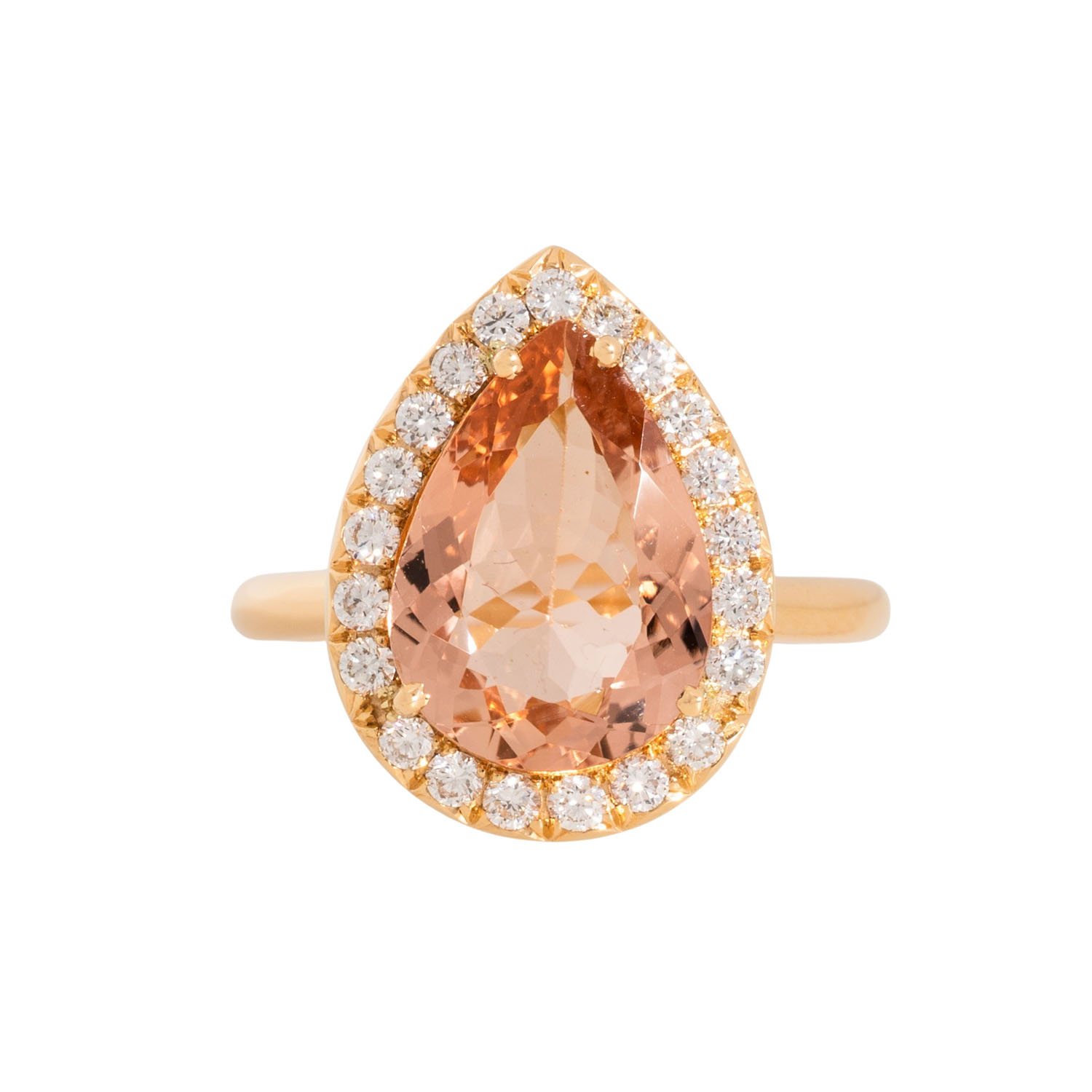 Ring with pear-cut tourmaline 4.4 ct, surrounded by brilliant-cut diamonds totalling 0.54 ct, RW- WHITE (G-H)/VS-SI, YG 18K, 7.7 g, ring size 56, 21st century, mint condition. Jeweller quality.