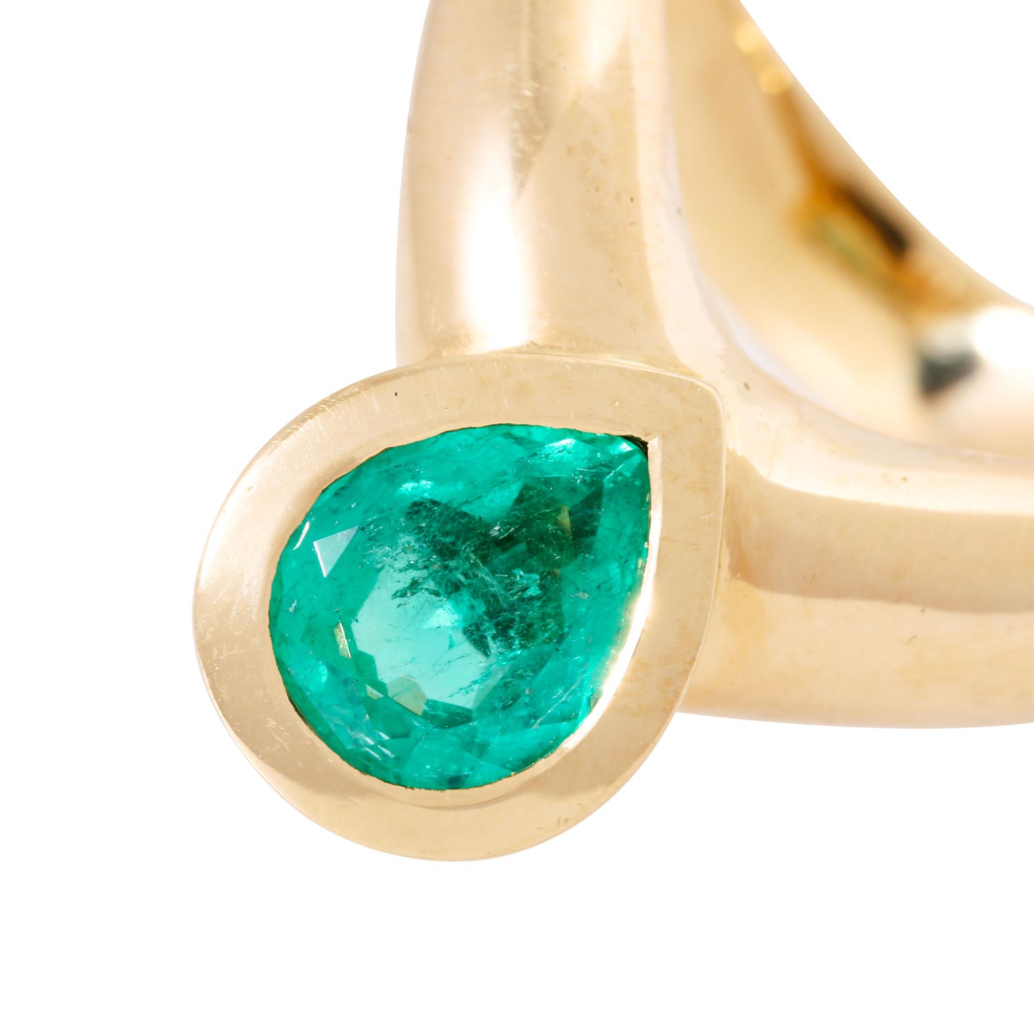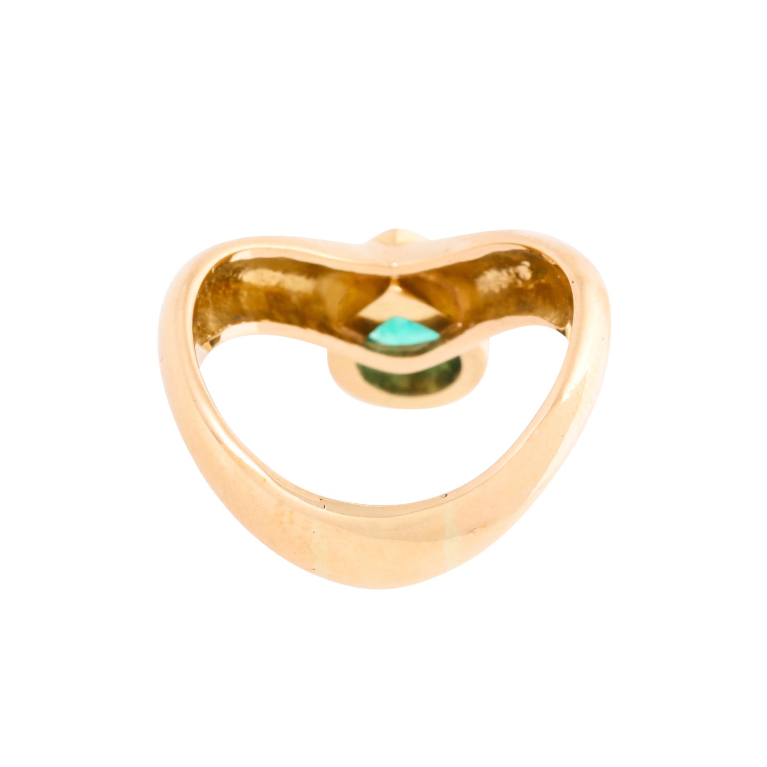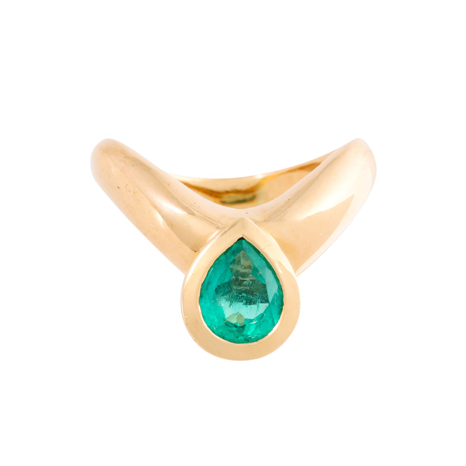 Ring with emerald, drop shaped faceted, ca. 10 x 8 mm, 18K yellow gold, ring size 63, late 20th century, minor signs of wear.