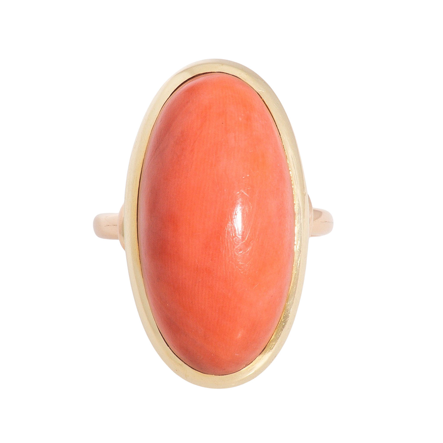 Ring with coral cabochon, approx. 21.2 x 16 mm,