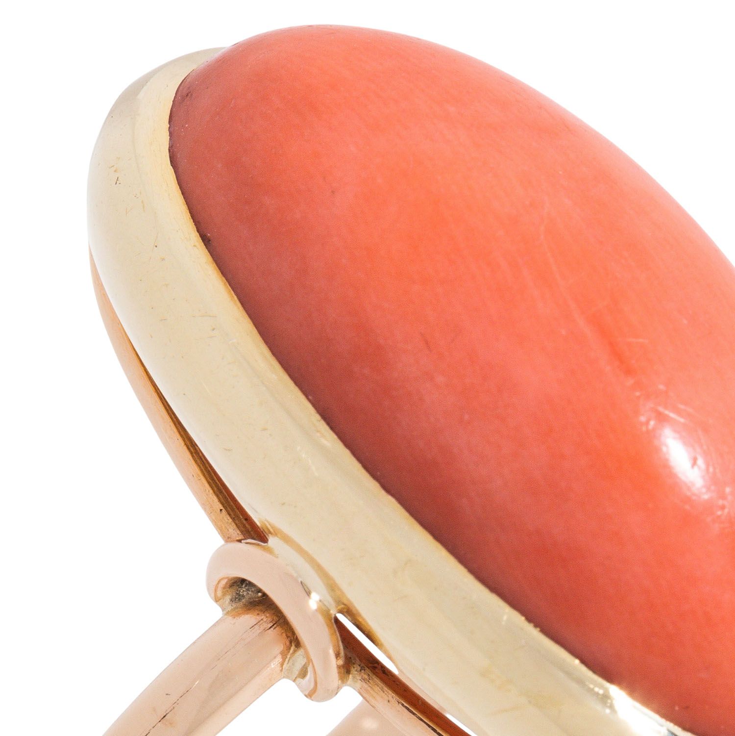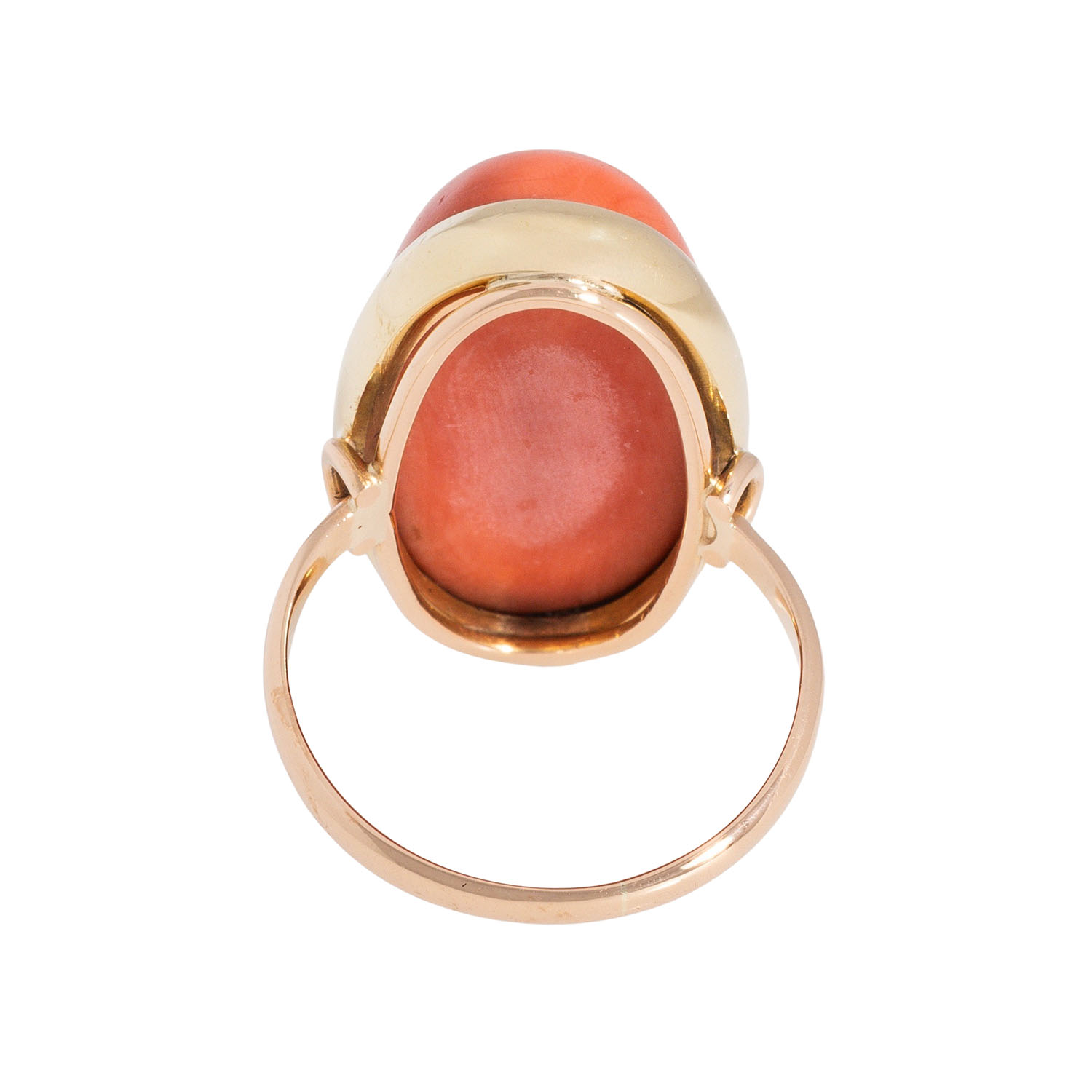Ring with fine coral, 24 x 12 mm, YG 18K, 10.1 g, ring size 54.5, 20th century, good condition. Handcrafted. NO SHIPPING OUTSIDE THE EU!