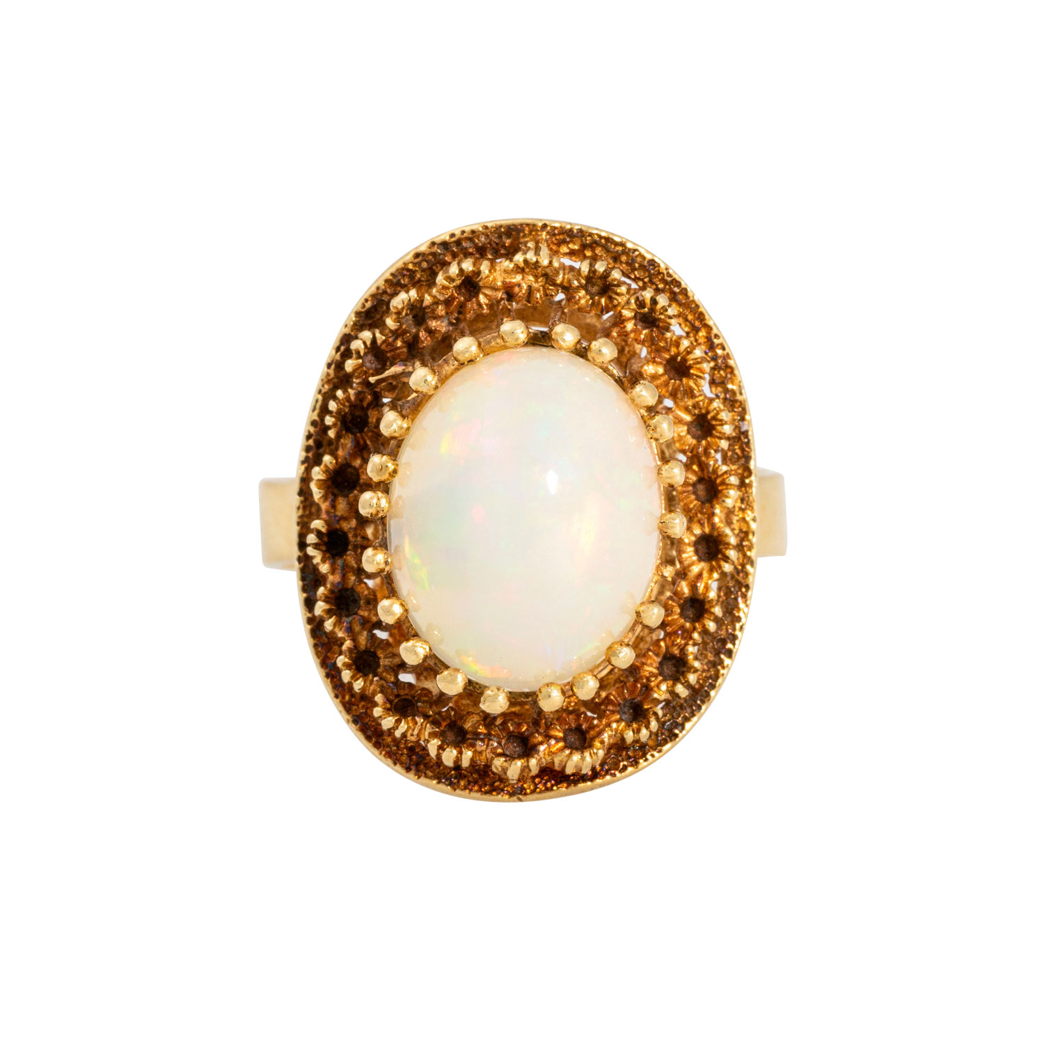 Ring with fine opal, YG 18K, 7.3 g, ring size 54, 13 X 10 mm, 21st century, good condition, 1 x missing claw.