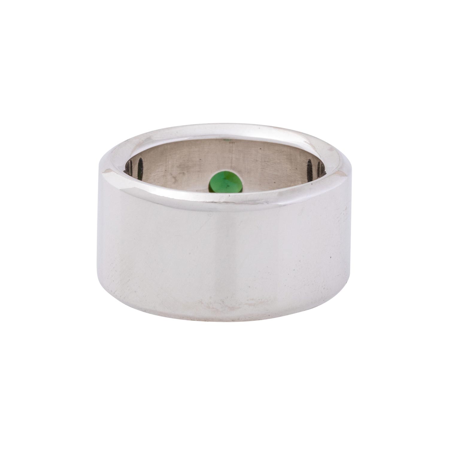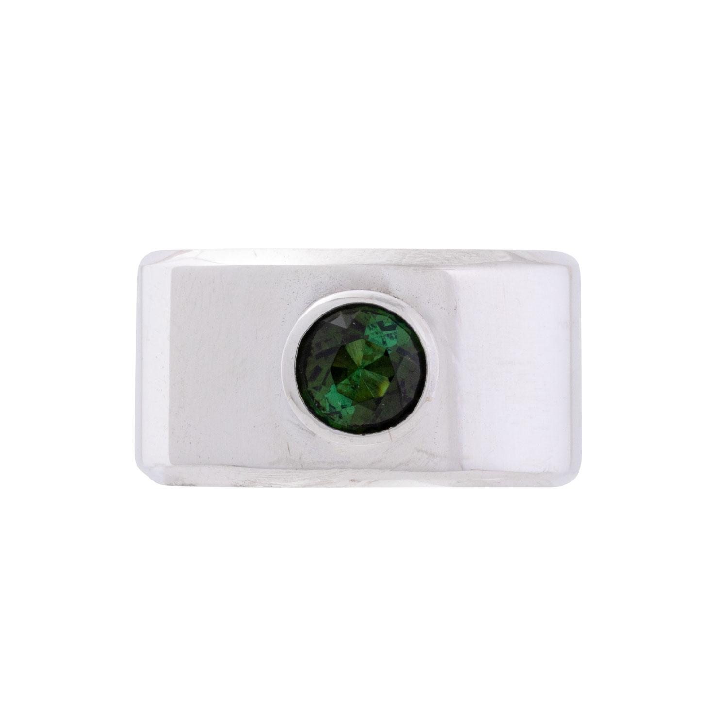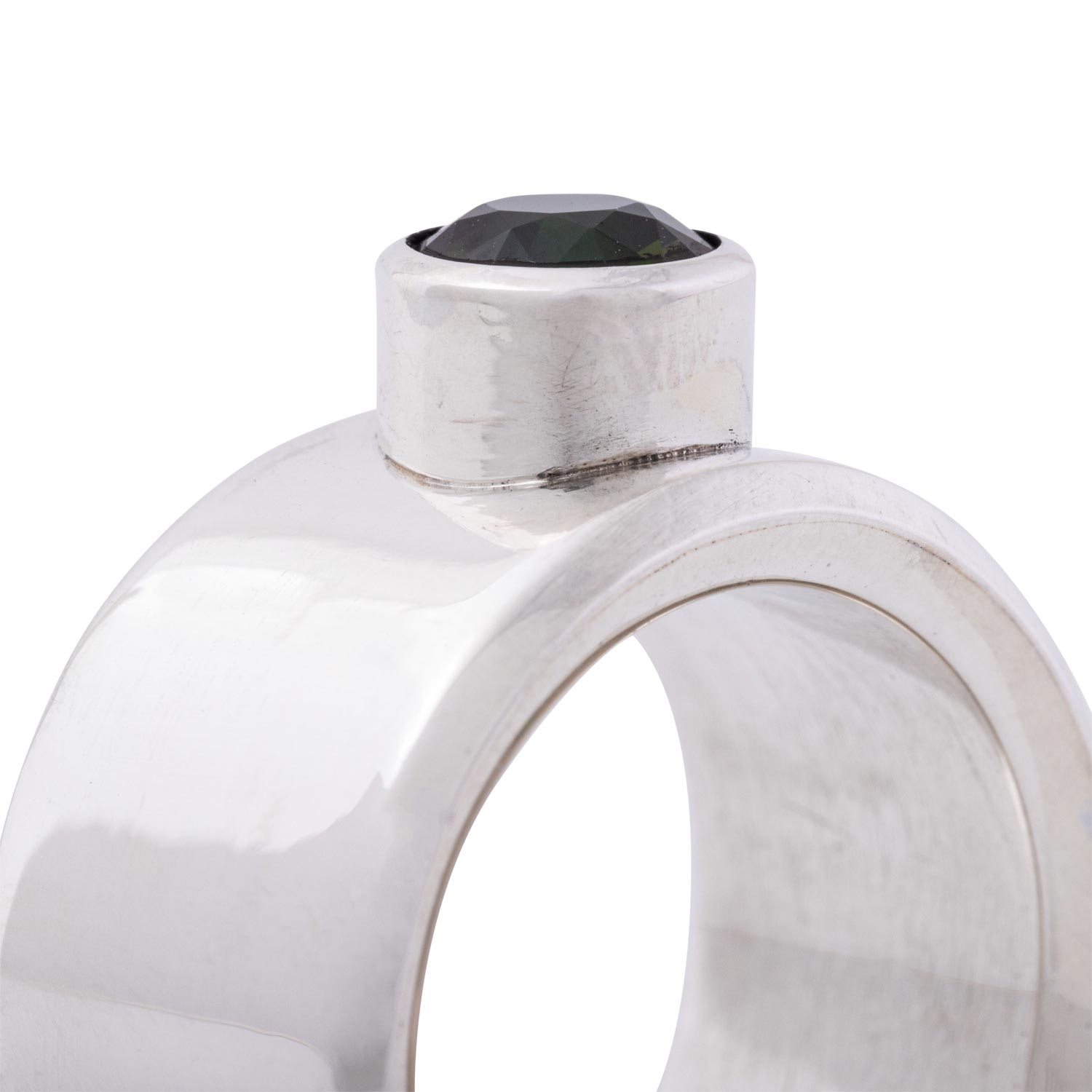 Ring with green faceted tourmaline, D: ca. 6.5 mm, 925 silver, 19.6 g. ring size 54, W: 12 mm, late 20th century, minimal signs of wear.