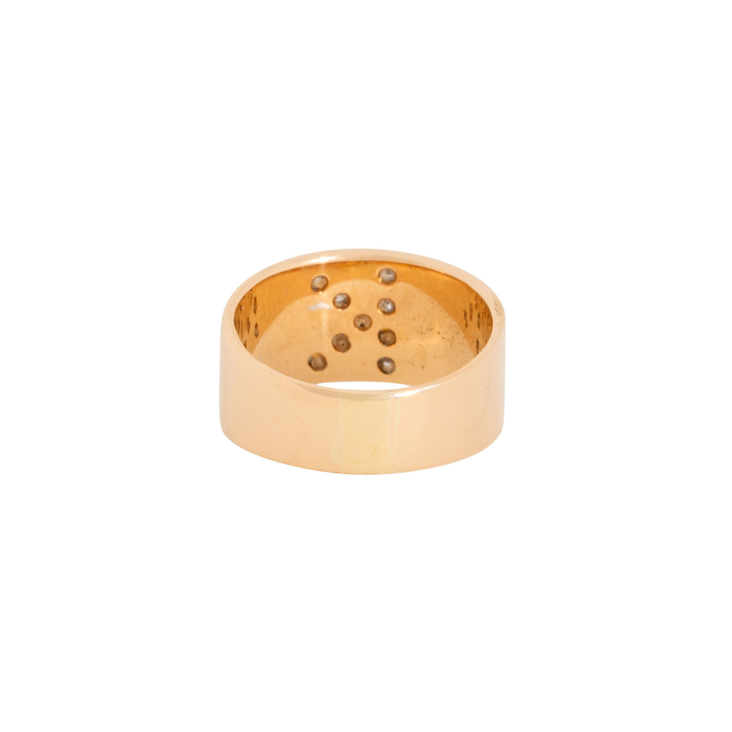 Ring with initial 'K', set with 9 brilliant cut diamonds, totalling ap. 0.09 ct, 18K yellow gold, 7.6 g, ring size 54, late 20th century, minimal signs of wear.