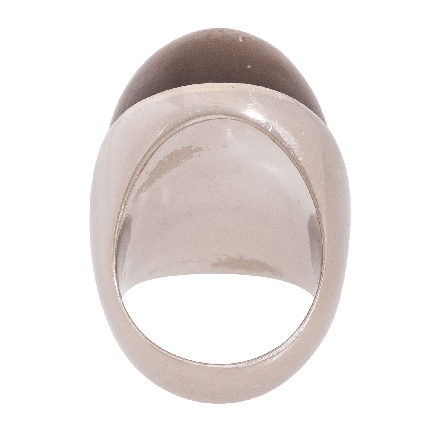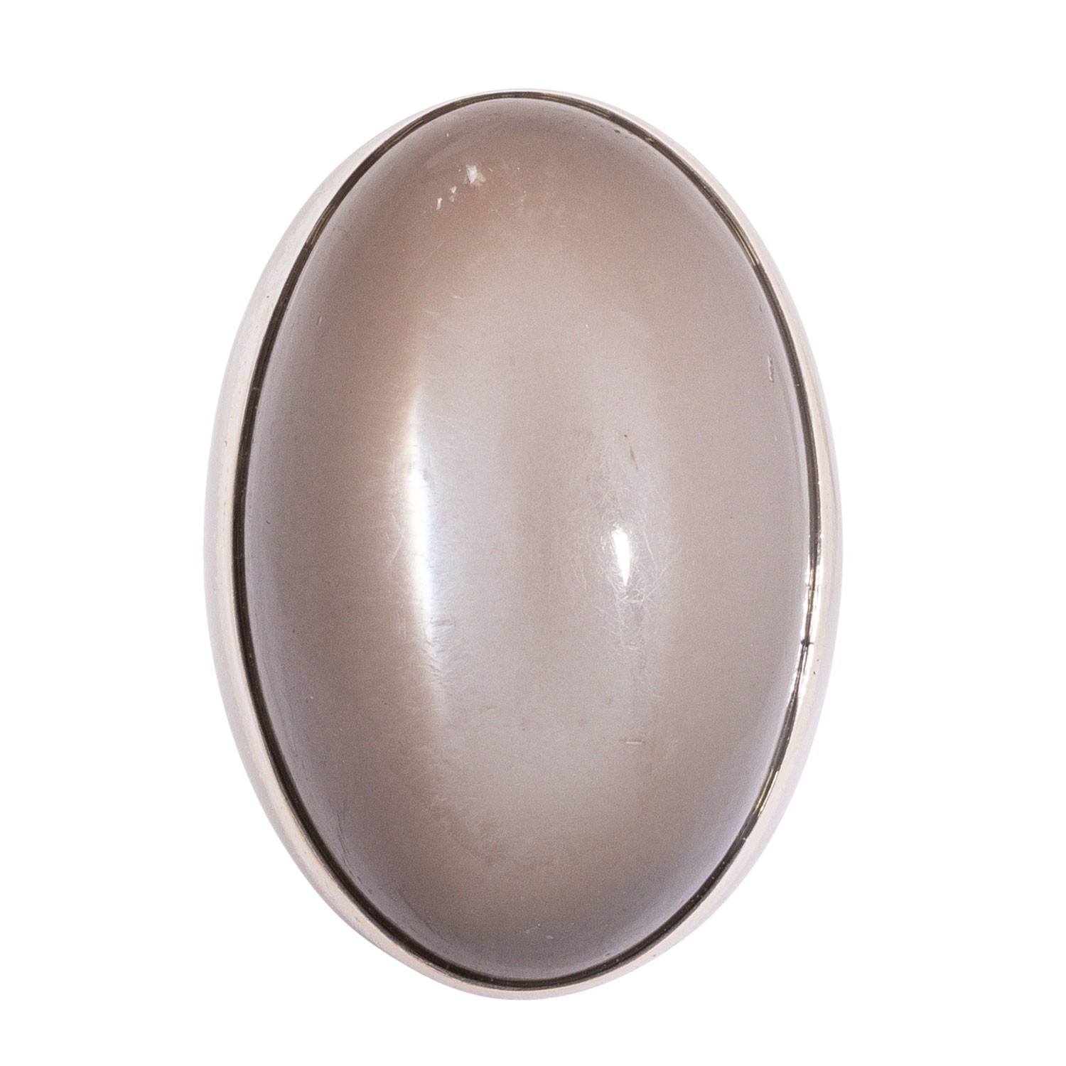 Ring with moonstone, 32 x 20 mm, WG 18K, 35.7 g, ring size 55, 21st century, good condition, solid design. Handcrafted.