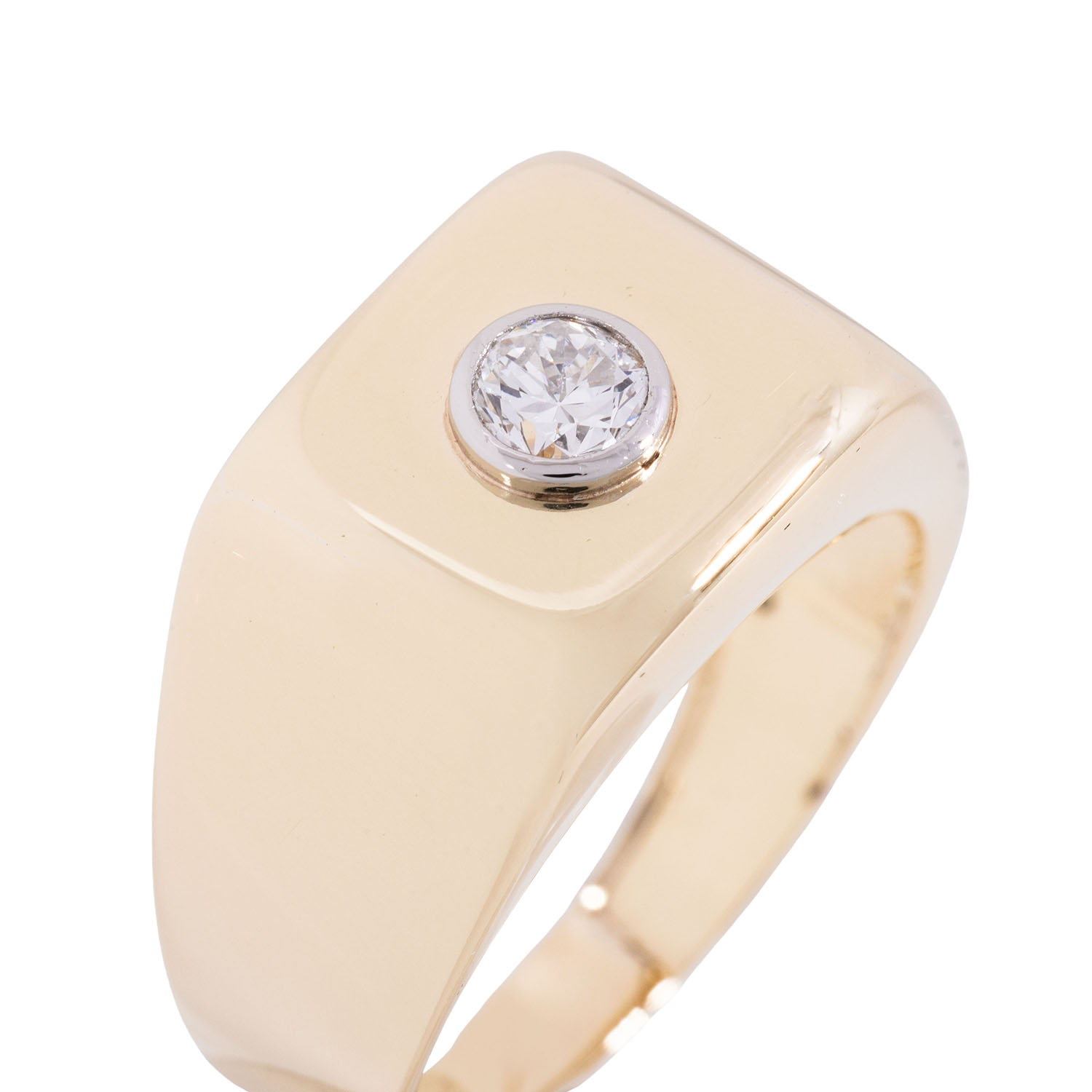 Ring with old-europen- cut diamond, ap. 0.3 ct, WHITE (H)/VS, 14K yellow gold, 6.0 g, ring size 56, late 20th century, minimal signs of wear.