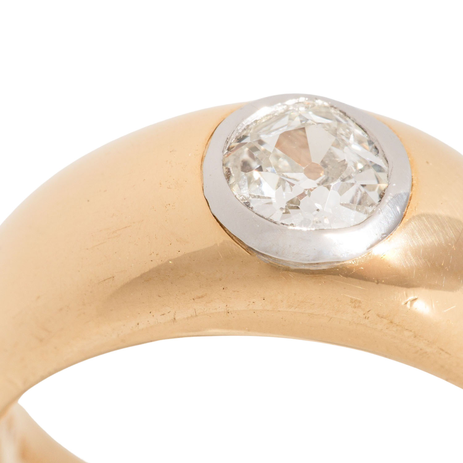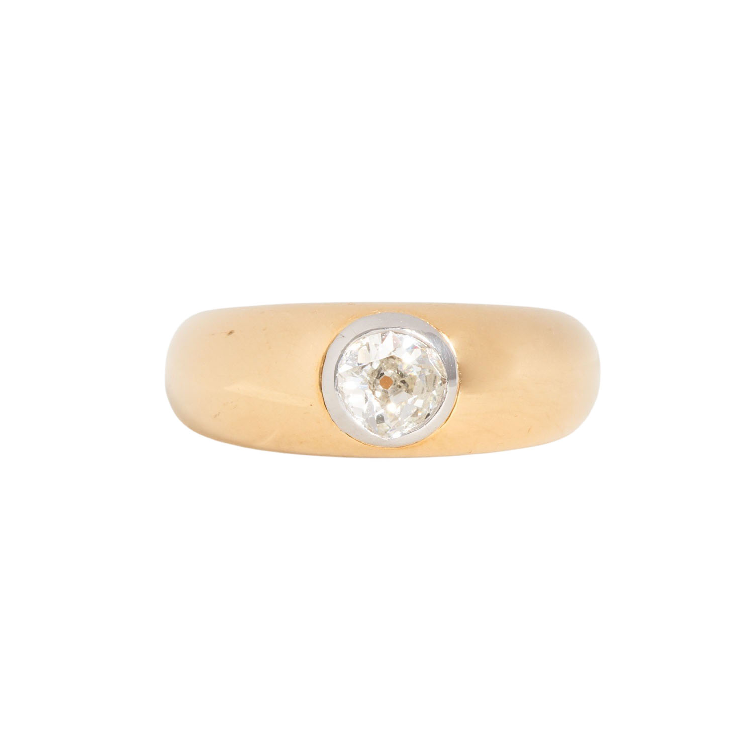 Ring set with old-cut diamond approx. 0.5 ct, approx. TIN (M)/VS, 18K YG and platinum, 12.9 g, ring size 54, 20th/21st century, slight signs of wear.