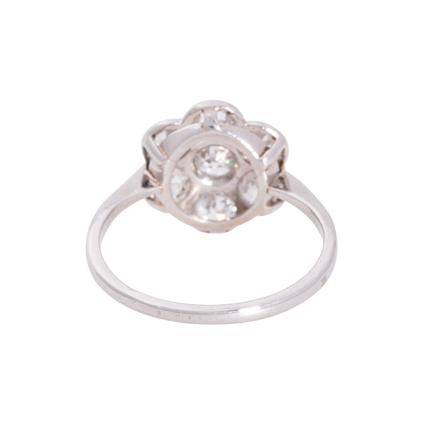 Ring with old-european-cut diamonds totatlling ca. 1 ct, ca. STW (I-J)/I1, platinum 950, 3 gr, ring size 51, 1st half 20th century, minor signs of wear.