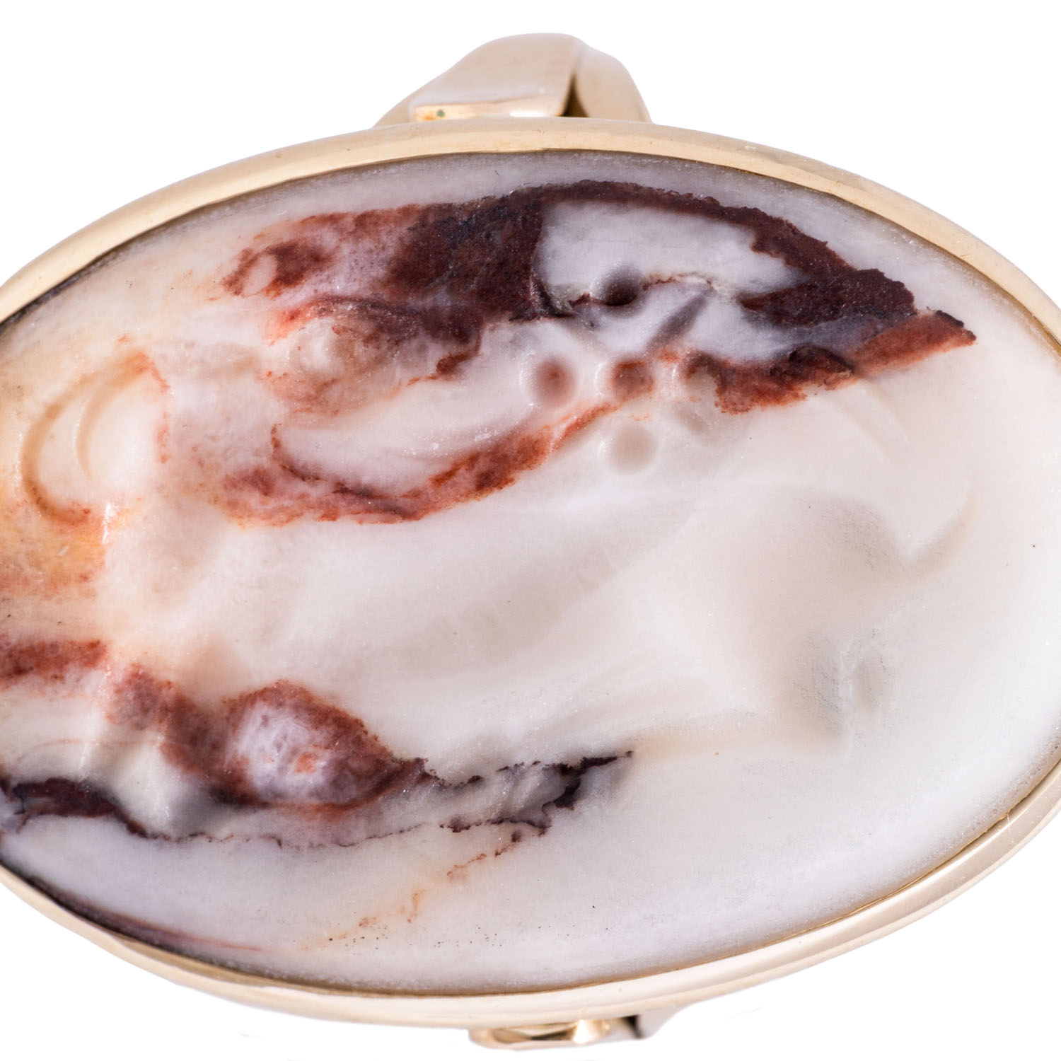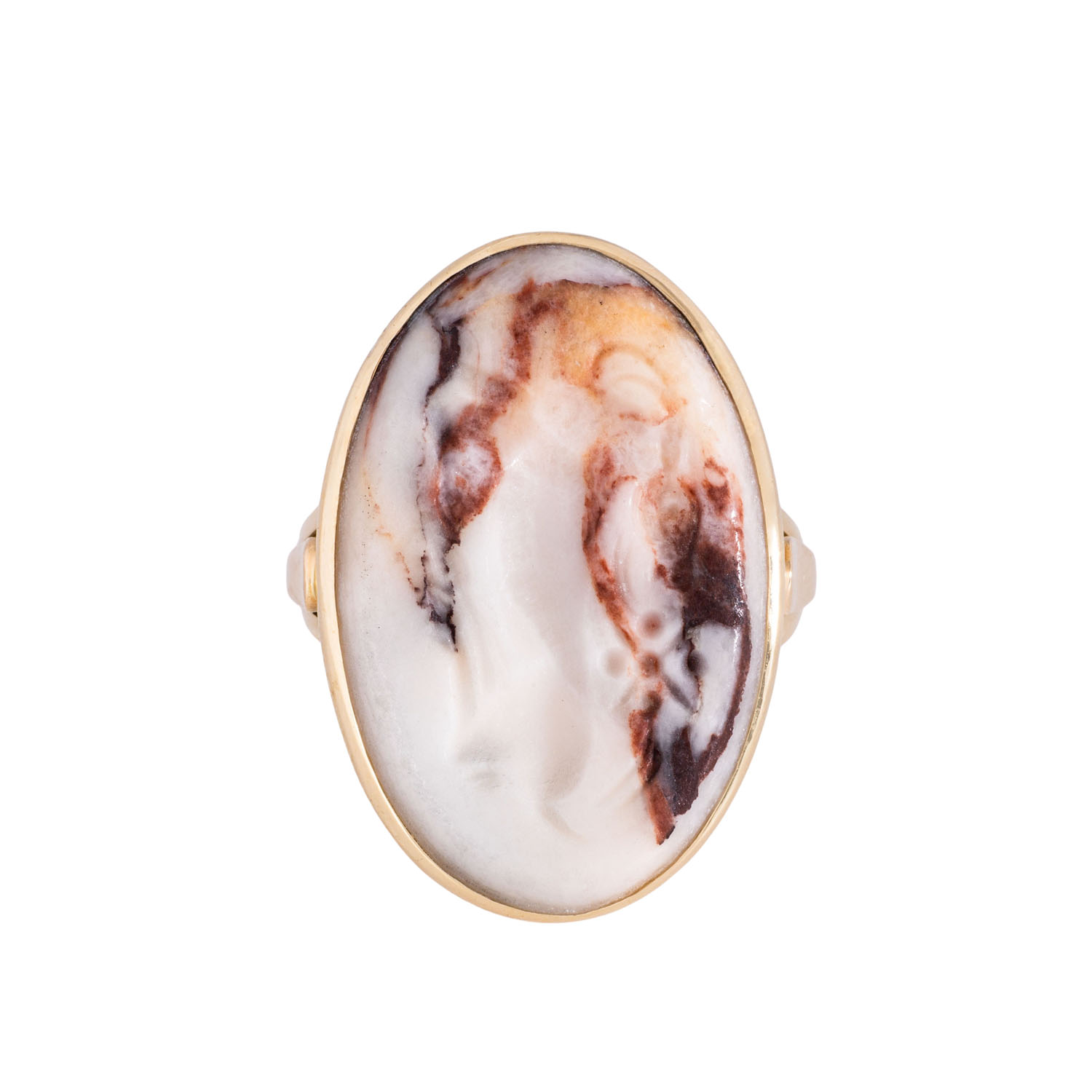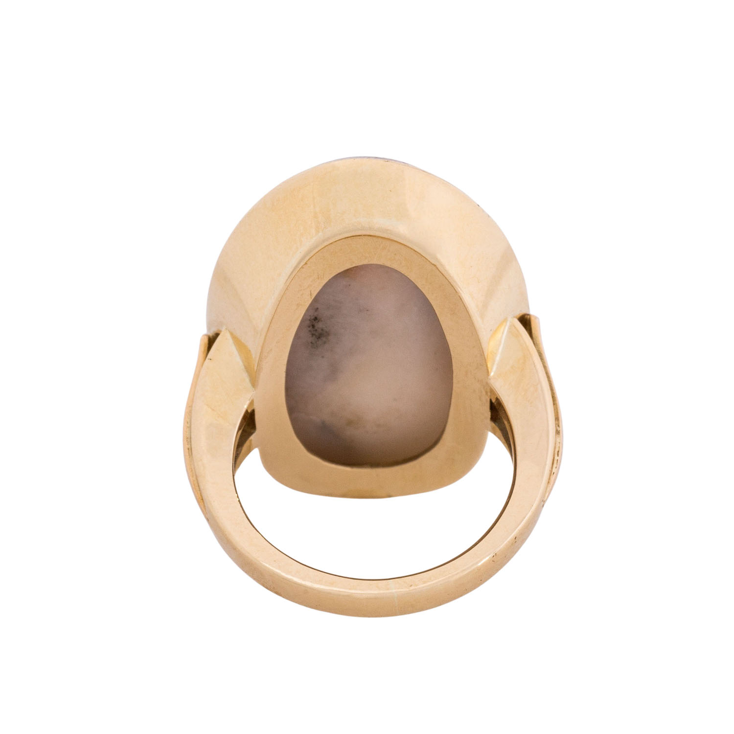 Ring with old Persian agate gem 'Reclining antelope', oval, 28 x 18 mm, 14K yellow gold, 12.9 g, ring size 52, late 20th century, minimal signs of wear.
