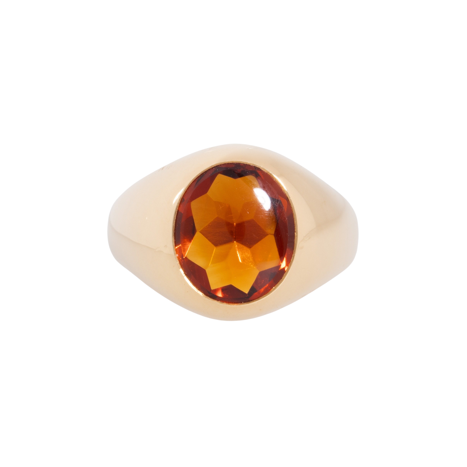 Ring with oval citrine, YG 18K, 10.7 g, ring size 53, 21st century, good condition. Handcrafted.