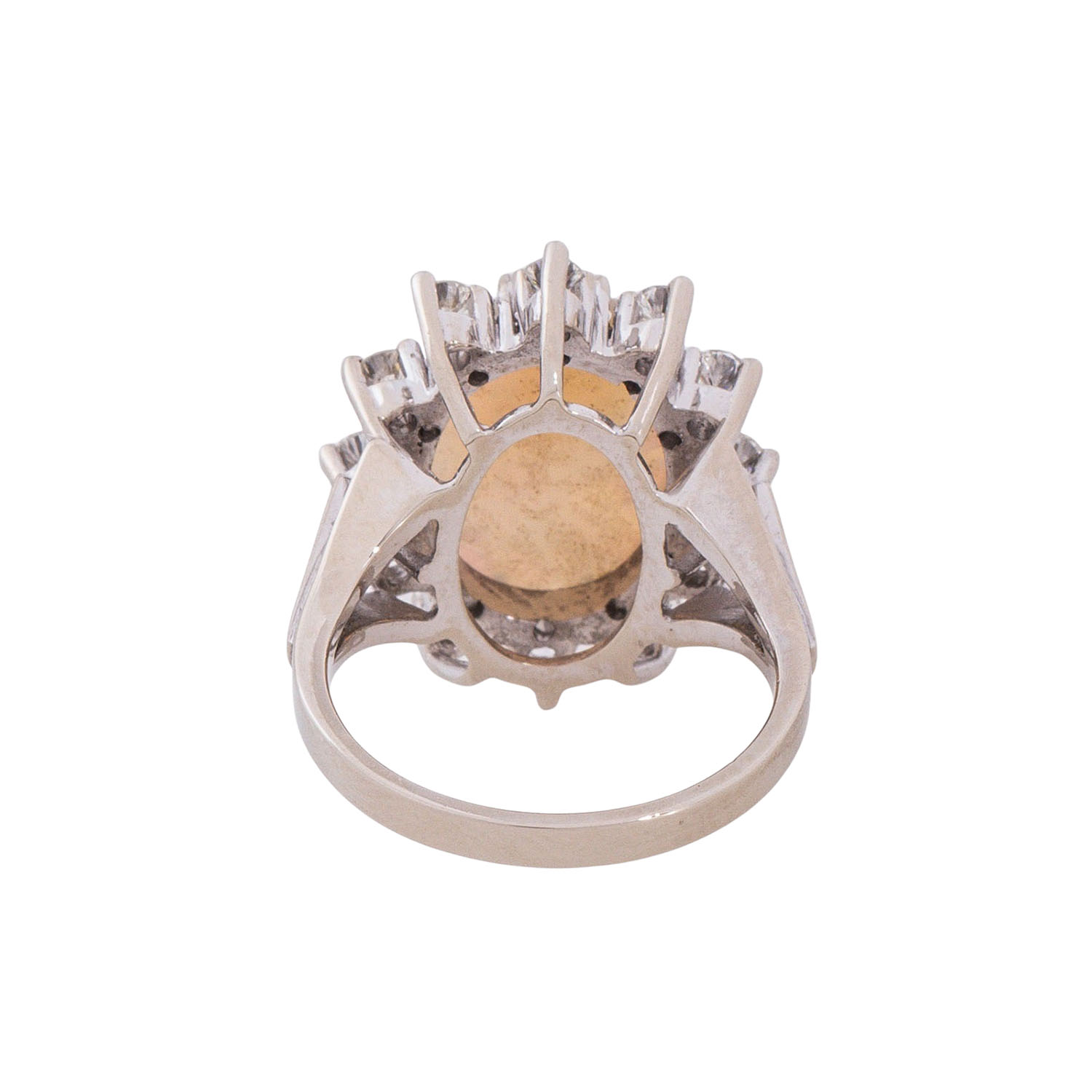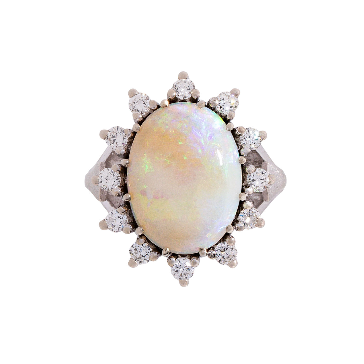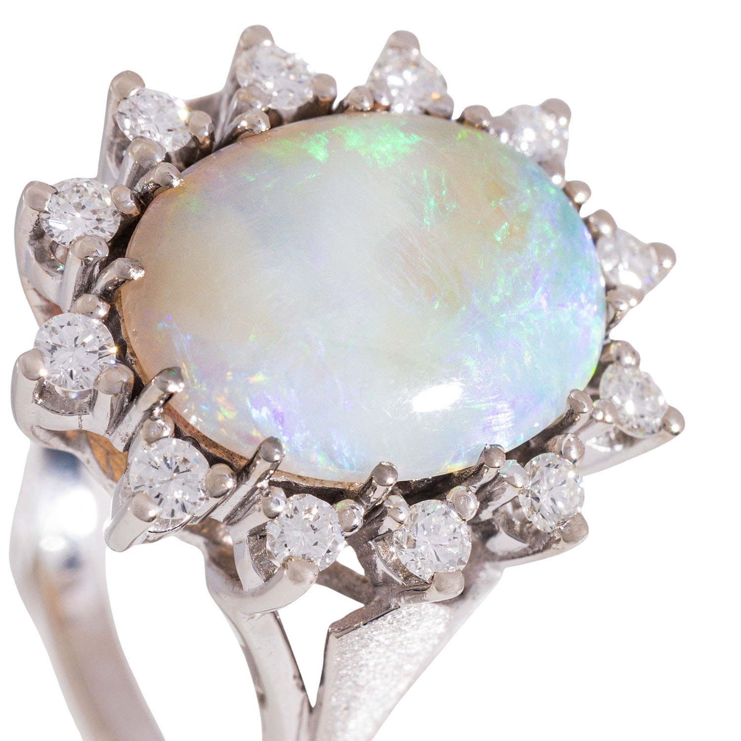 Ring with white opal surrounded by diamonds totaling approx. 0.5 ct,