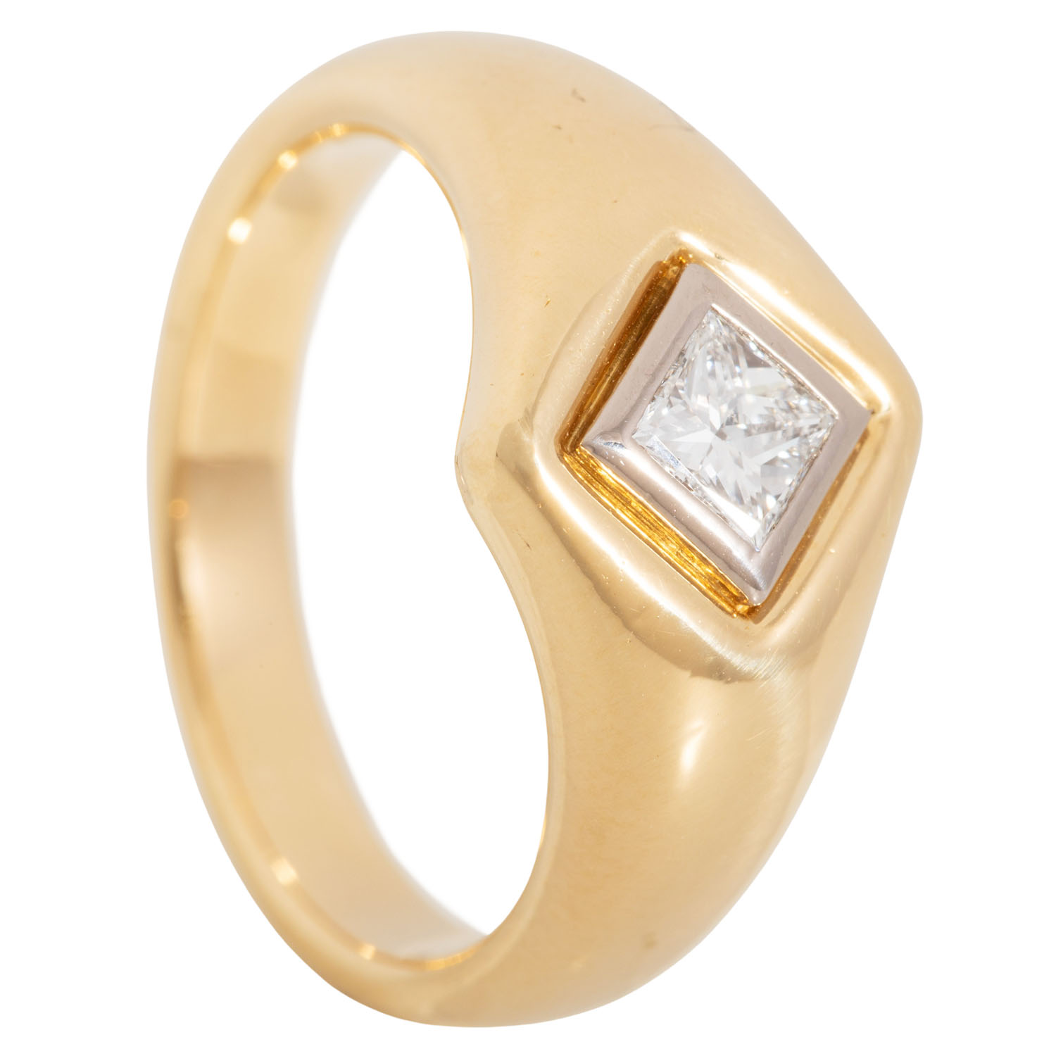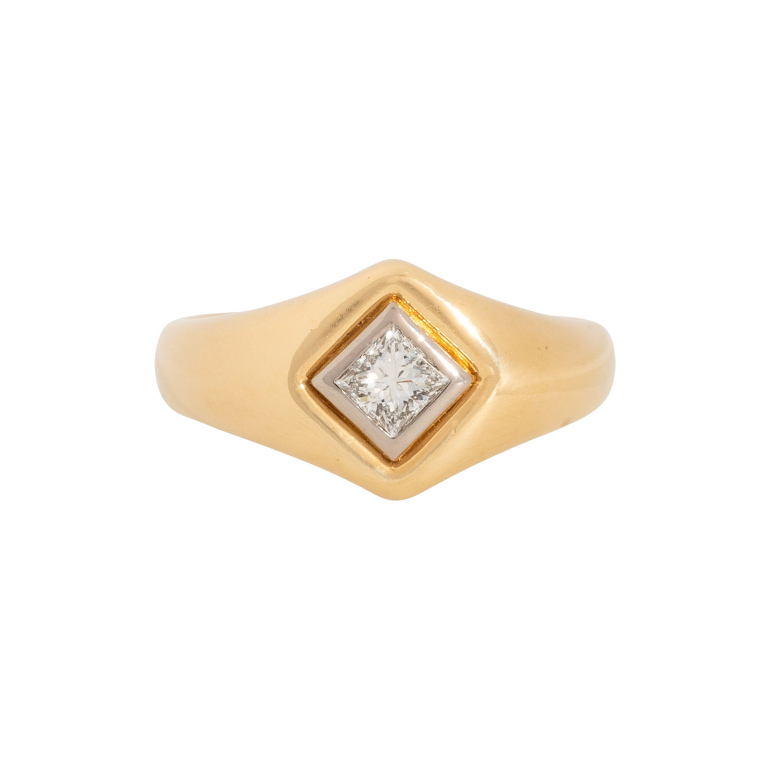 Ring with Princess-cut diamond ca. 0.3 ct, ca. WHITE (H)/VS, 18K yellow and white gold, 11.3 g, ring size 56, late 20th century, signs of wear, solid craftsmanship.