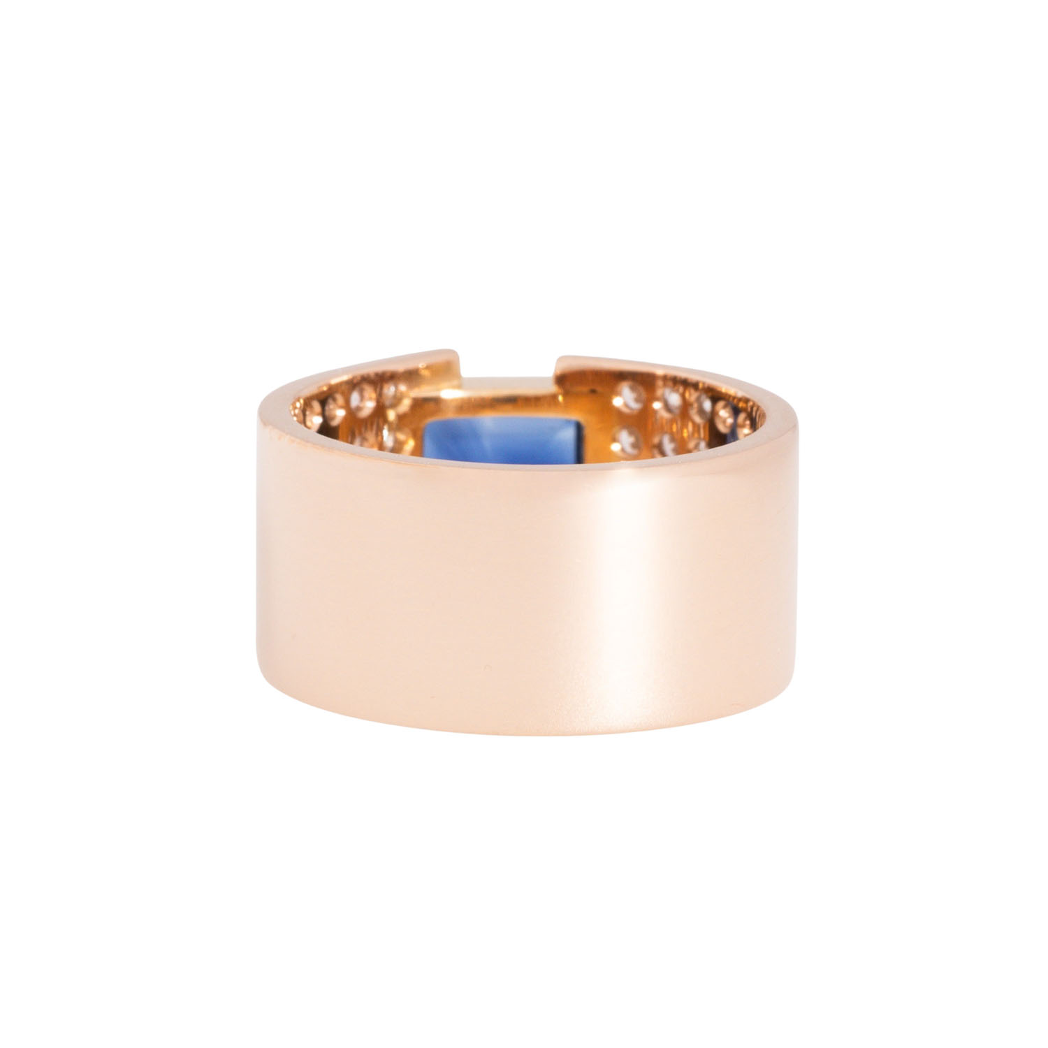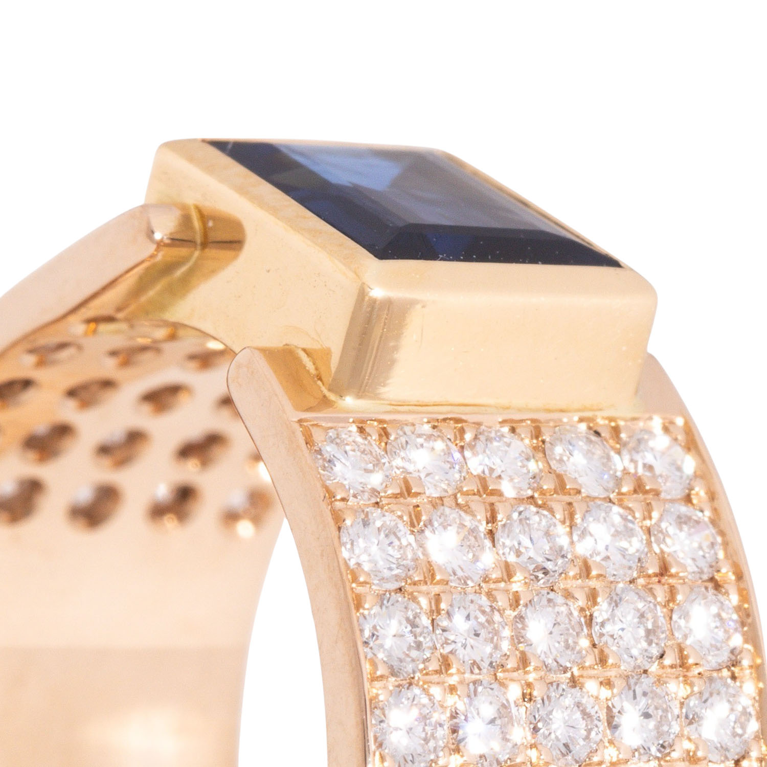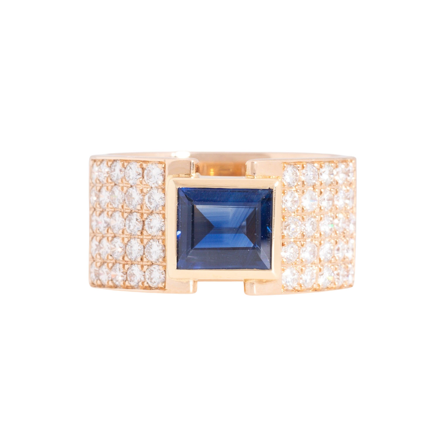 Ring with sapphire of 1.27 with color zoning and brilliant-cut diamonds totalling 0.94 ct of good color and clarity, 18K YG, 11.5 gr, ring size 55, 21st century, minimal signs of wear, maker's mark 'SUPLA'.