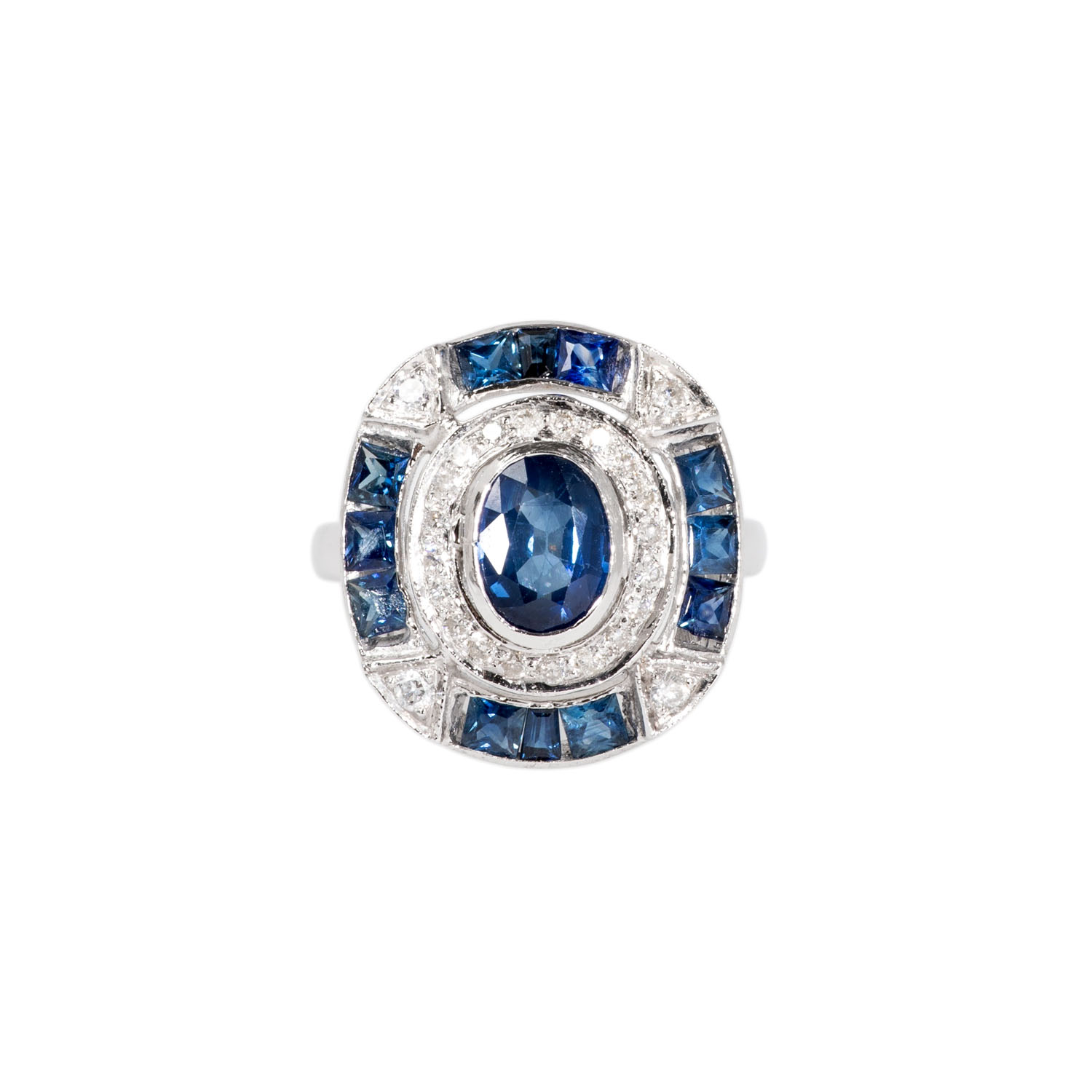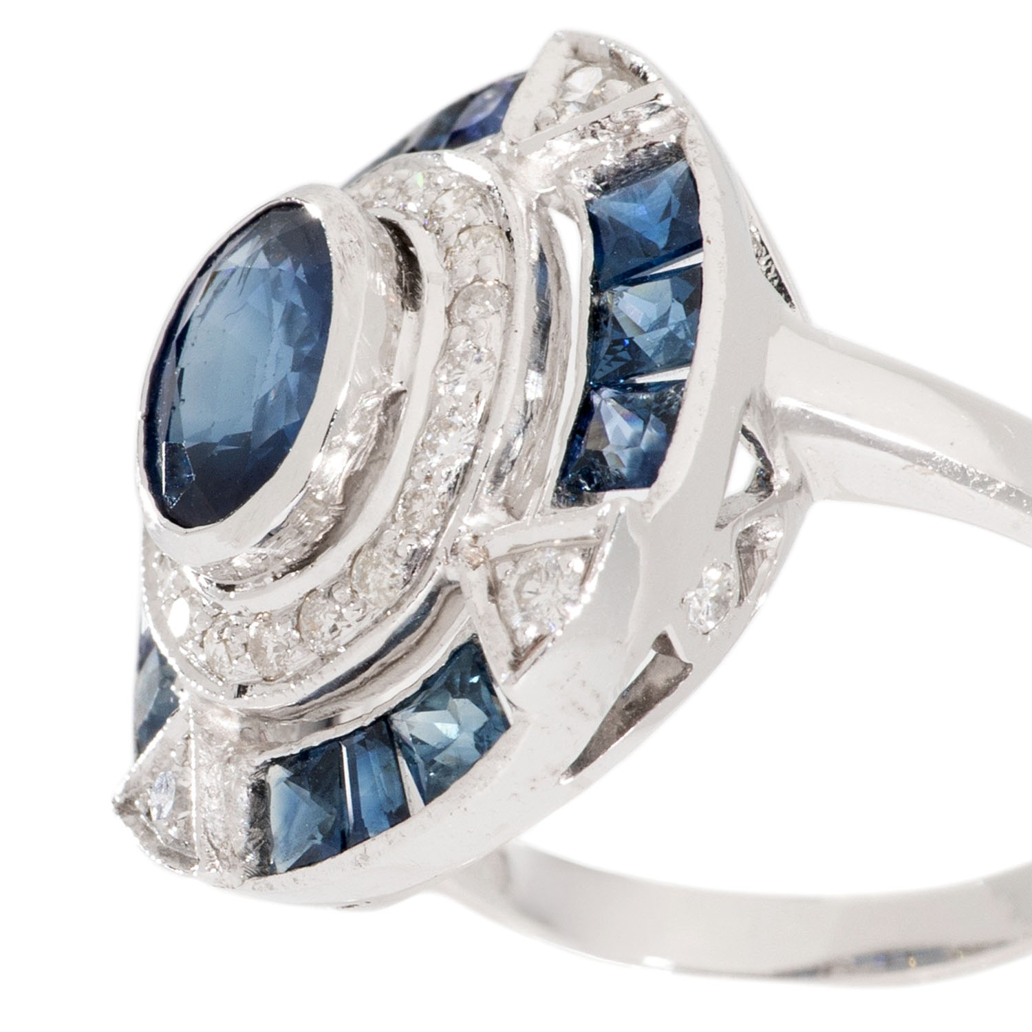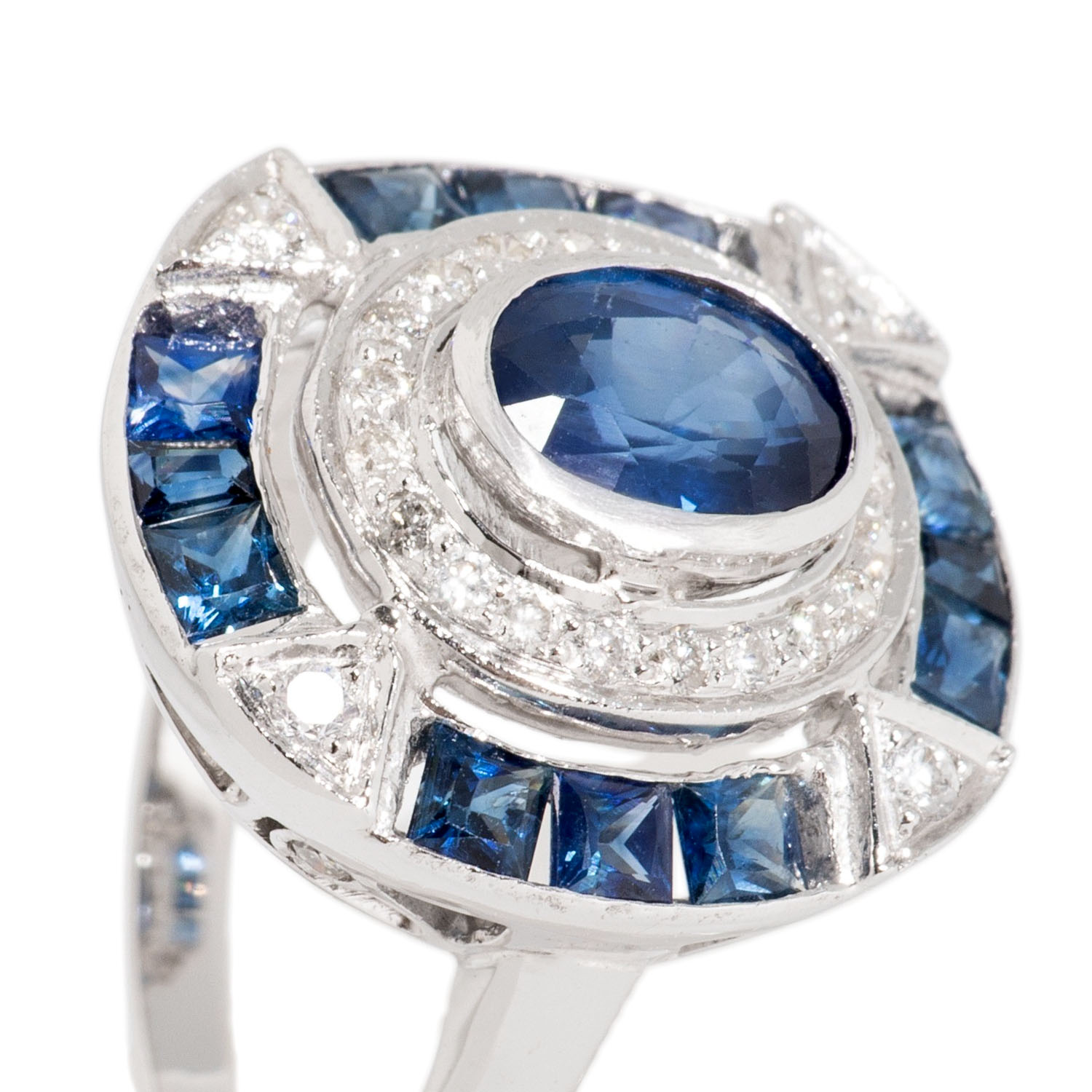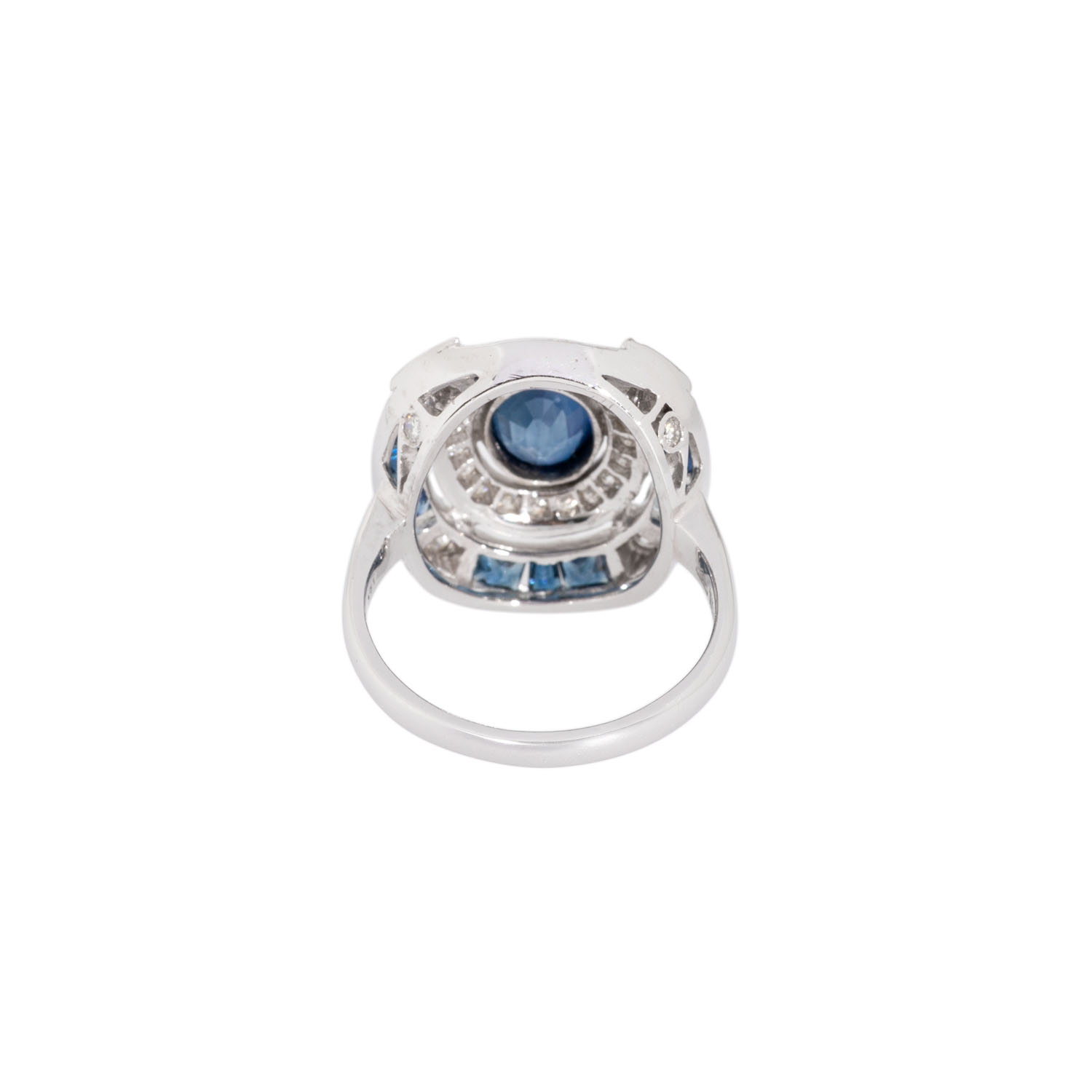 Ring with sapphires totalling 1.76 ct and brilliant-cut diamonds totalling 0.36 ct, WG 18 K, 7.7 g, ring size 56, 21st century, mint condition.