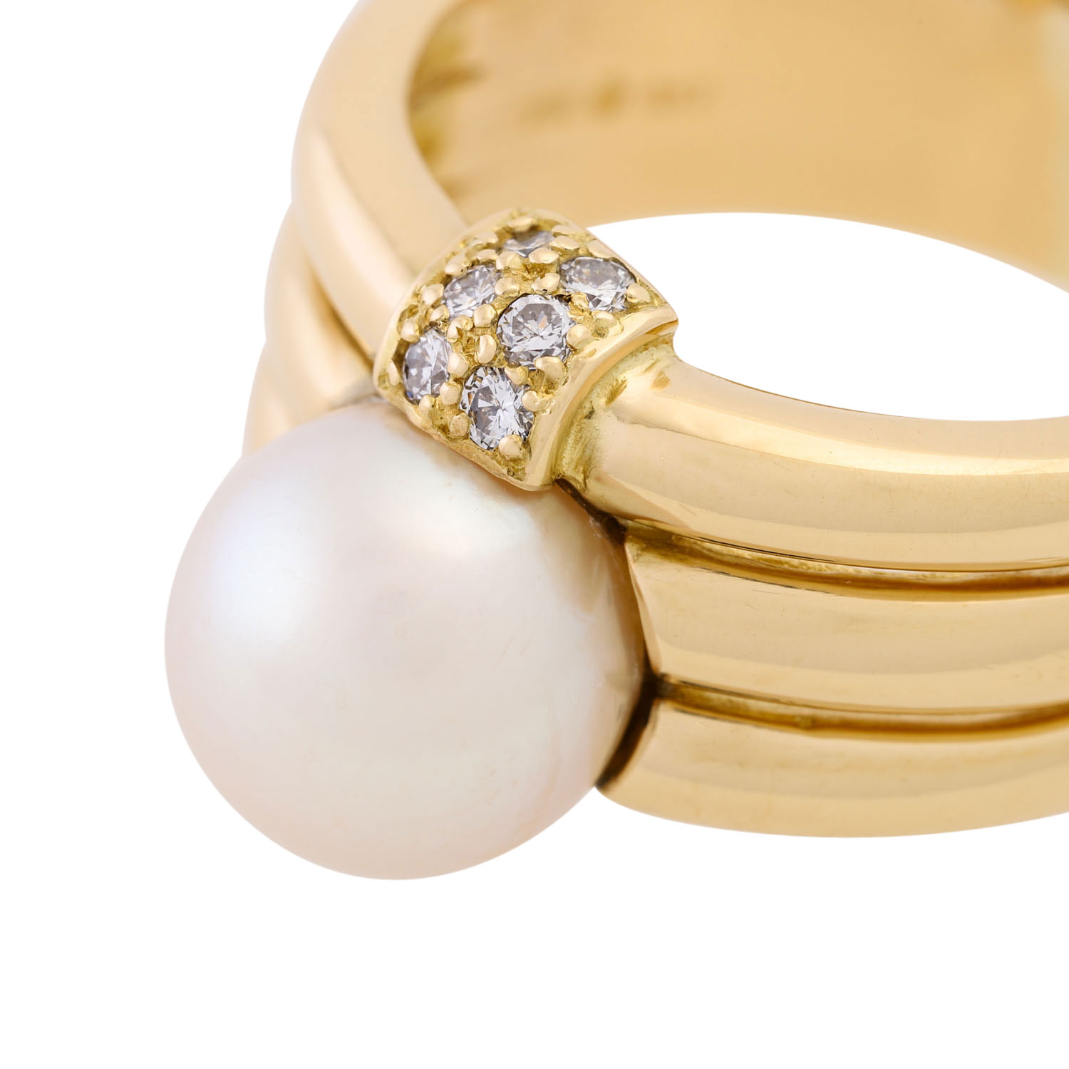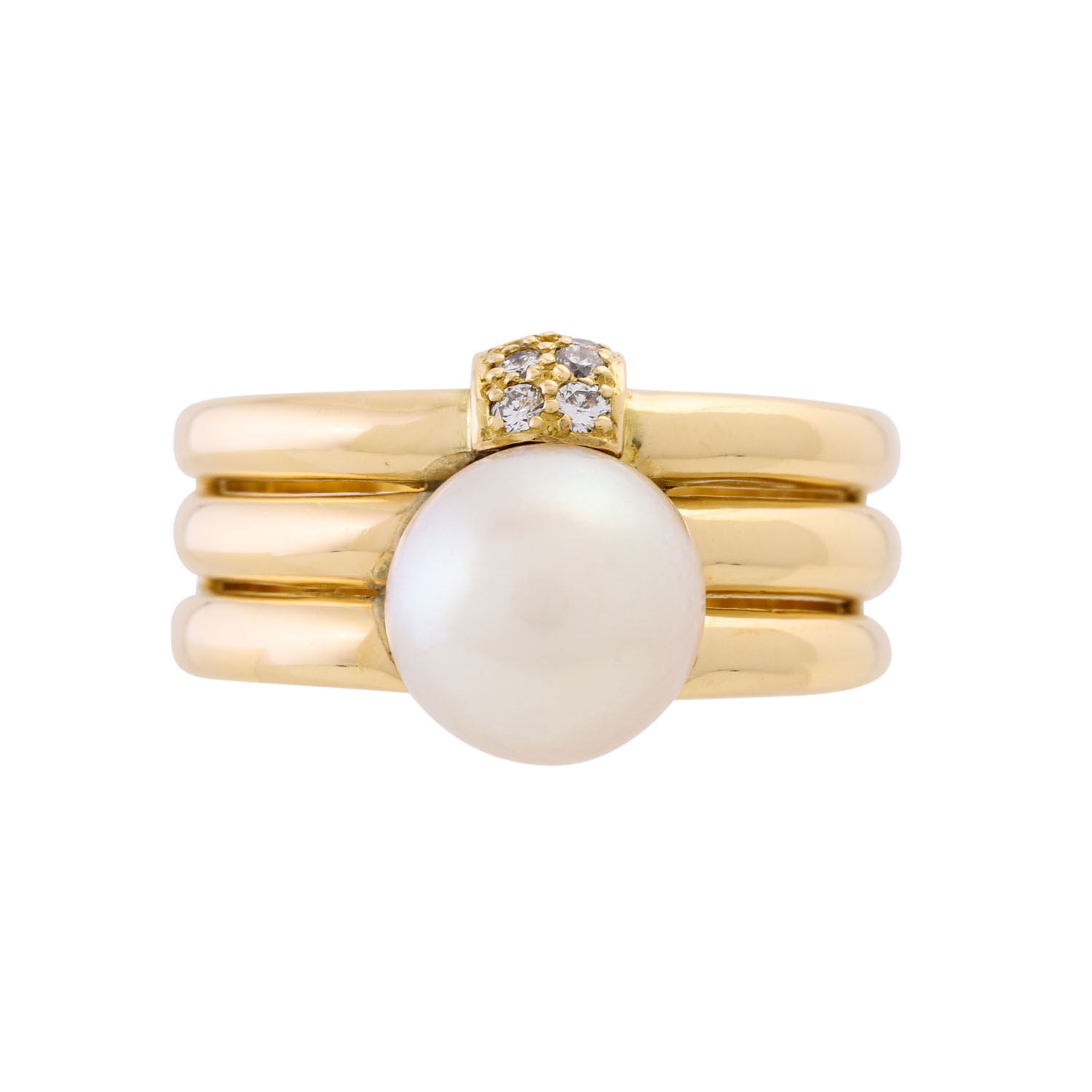 Ring with cultured southsea pearl approx 9.60 mm and brilliant-cut diamonds from approx 0.12ct with good color and clarity. 18K YG 10.48 gr. Ring size 59. Late 20th century. Slight signs of wear.