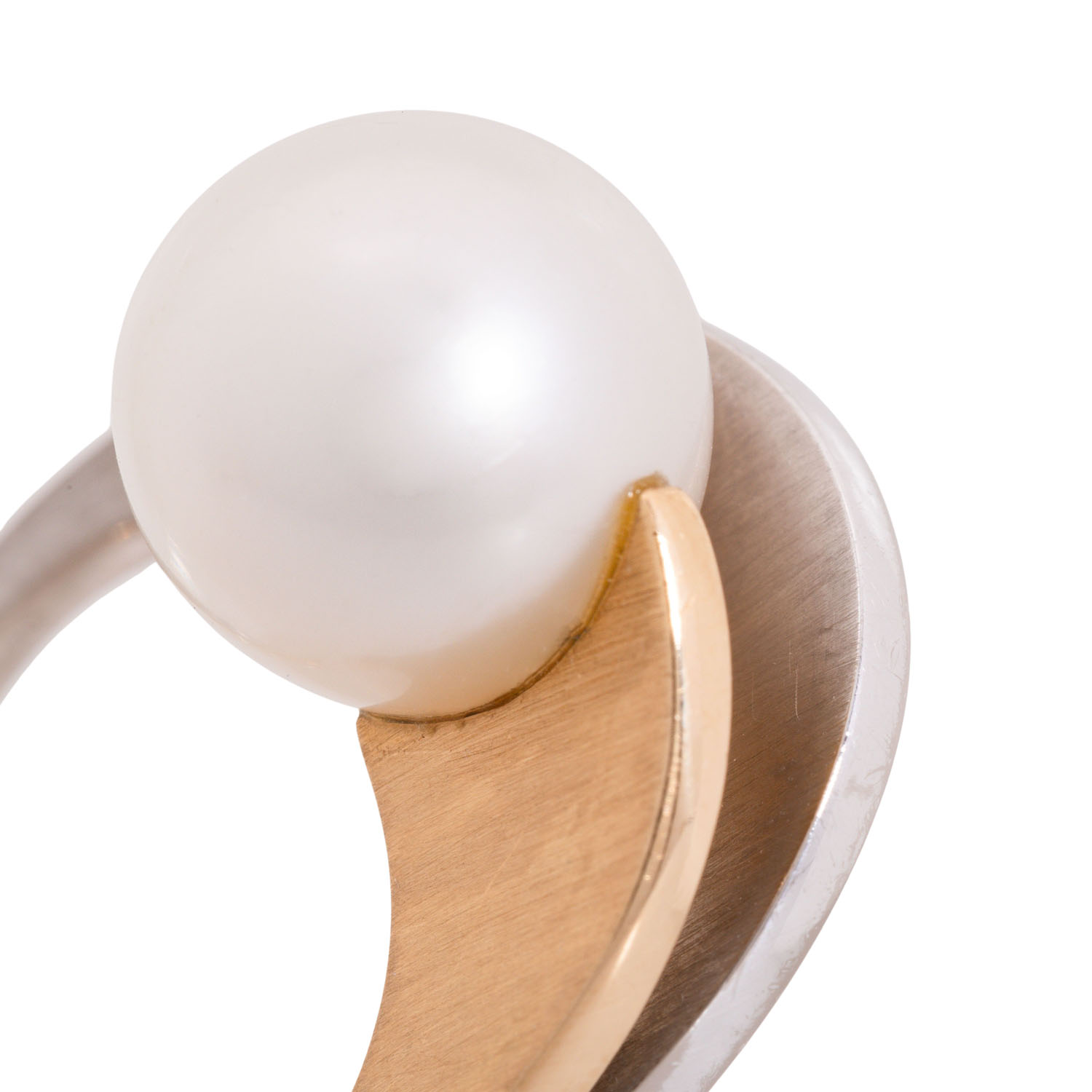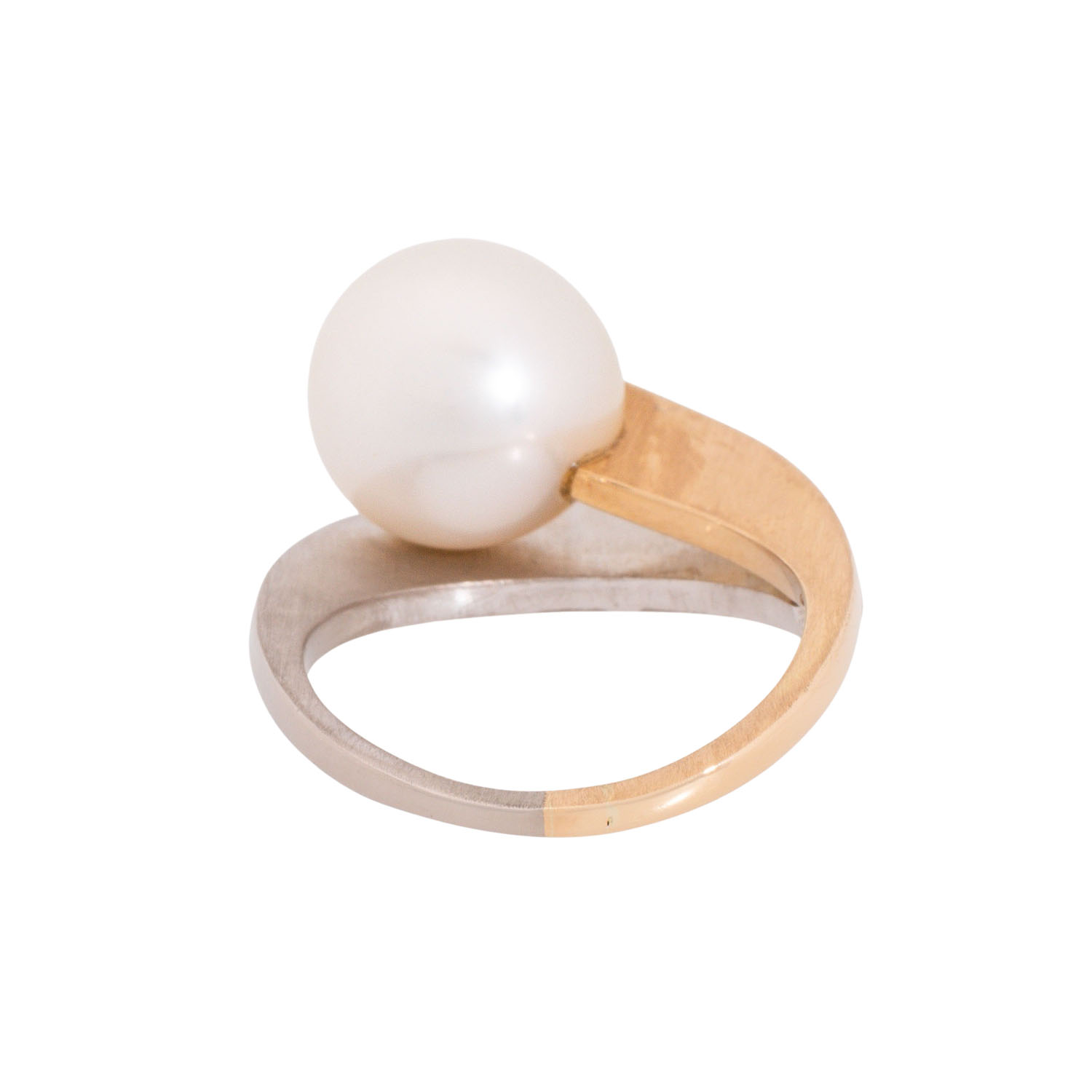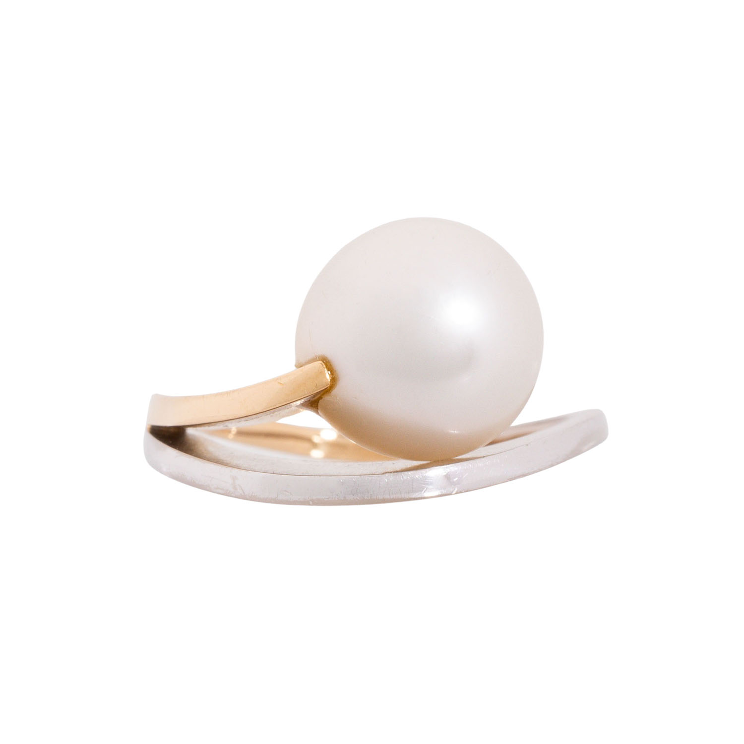Ring with South Sea cultured pearl, white, D: approx. 12.1 mm, beautiful luster, 18K yellow gold/white gold, 11.3 g, polished/satin finished, ring size: 58, W: approx. 1.5 - 13.6 mm, 21st century, signs of wear, with Italian hallmark.