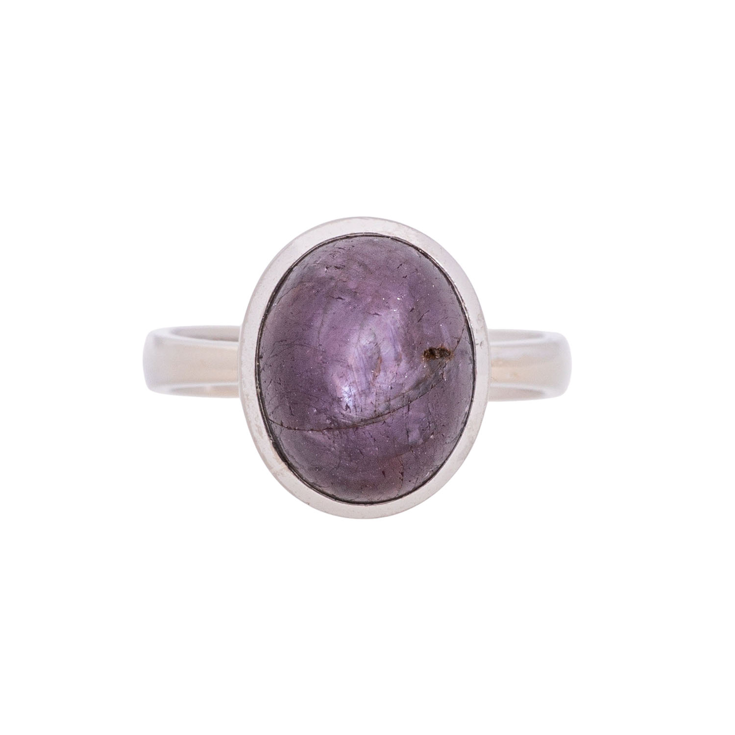 Ring with star ruby, oval cabochon, ap. 12 x 9 mm, 18K white gold, 8.4 g, ring size 54, late 20th century, minimal signs of wear, star slightly pronounced.
