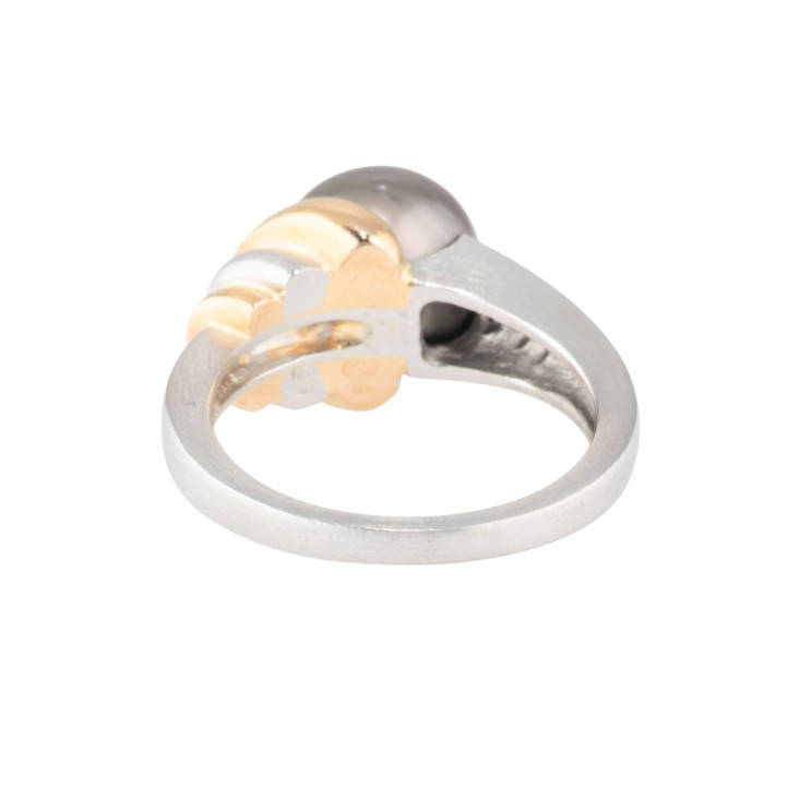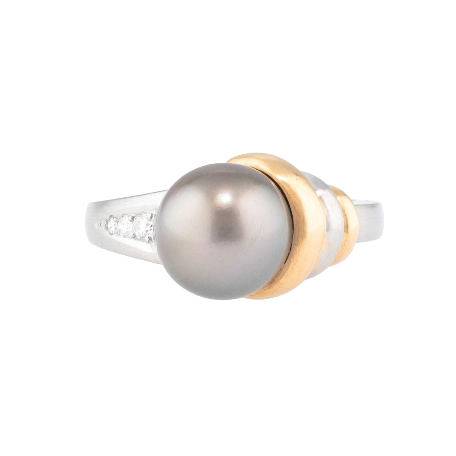 Ring with Tahitian culured pearl and 3 brilliants, totall. c. 0.05 ct, good colour and clarity, RW: c. 57.5, 20th/21st ventury, signs of wear, ring band with minor crack, hallmarked Pt and GG.