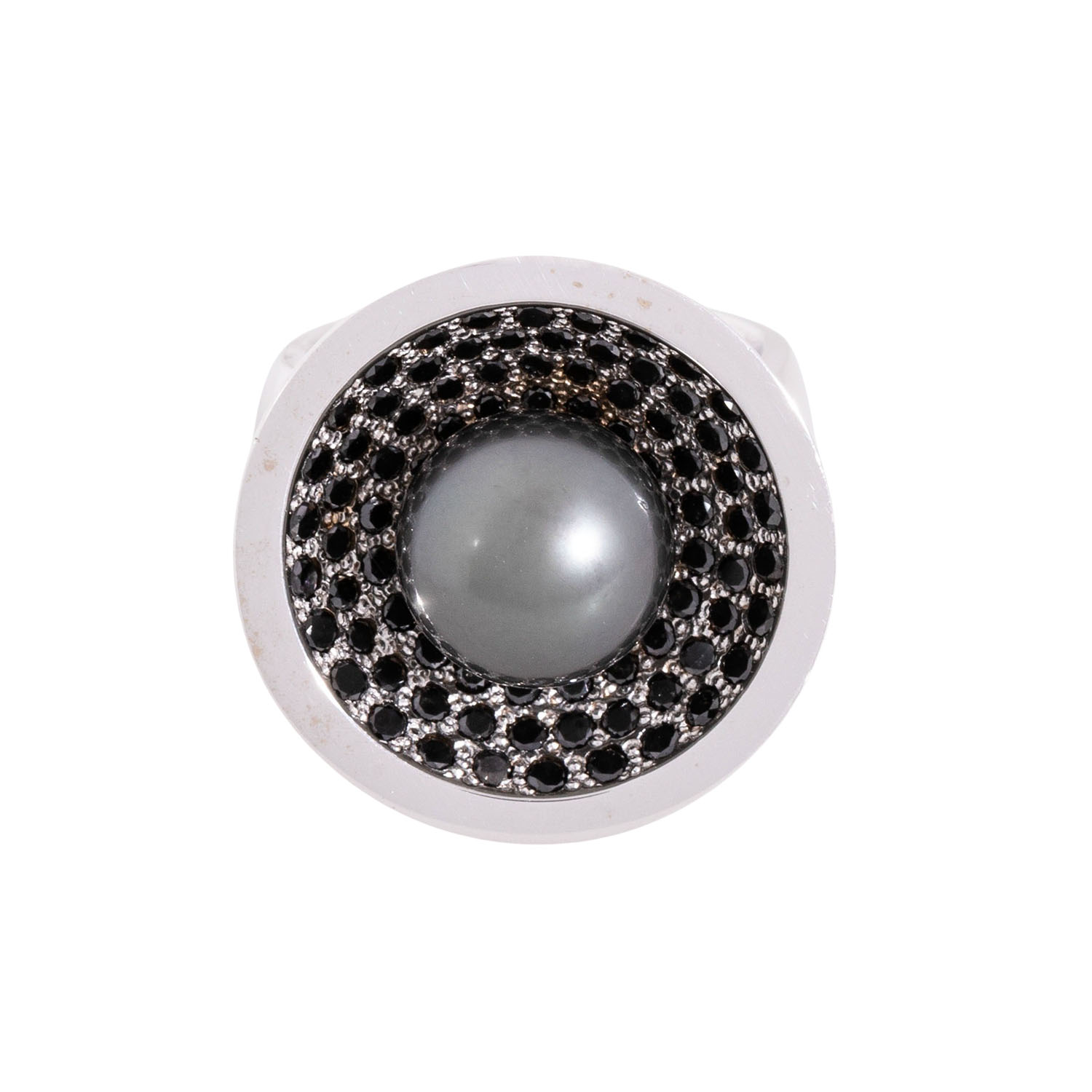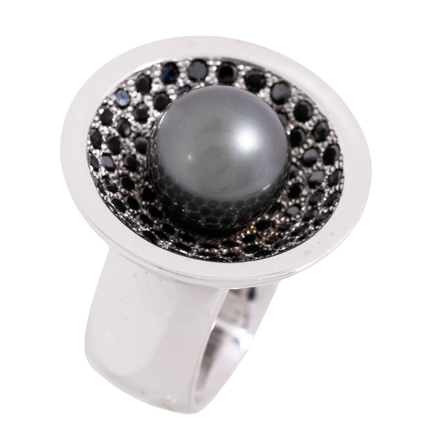 Ring with Tahitian pearl and black diamonds totalling ca. 2.5 ct, 18K WG, 33 gr, ring size 57, 21st century, minor signs of wear, maker's mark Ellen Kapellari, incl. certificate (2016).