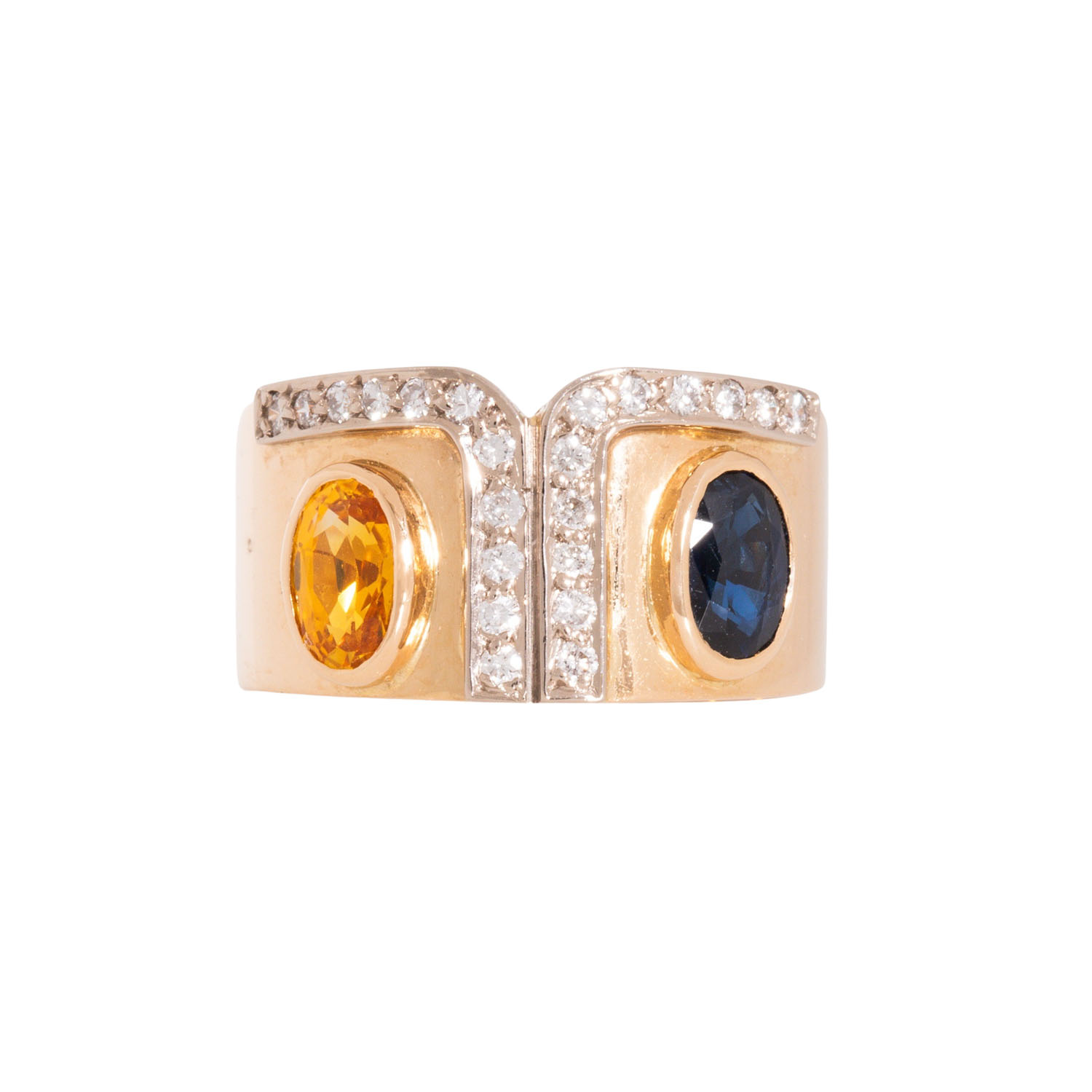 Ring with yellow sapphire, blue sapphire and 22 brilliant-cut diamonds