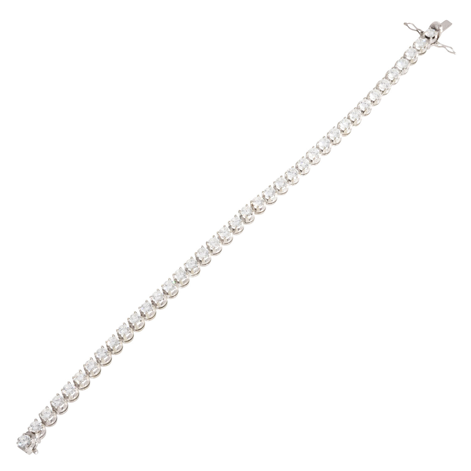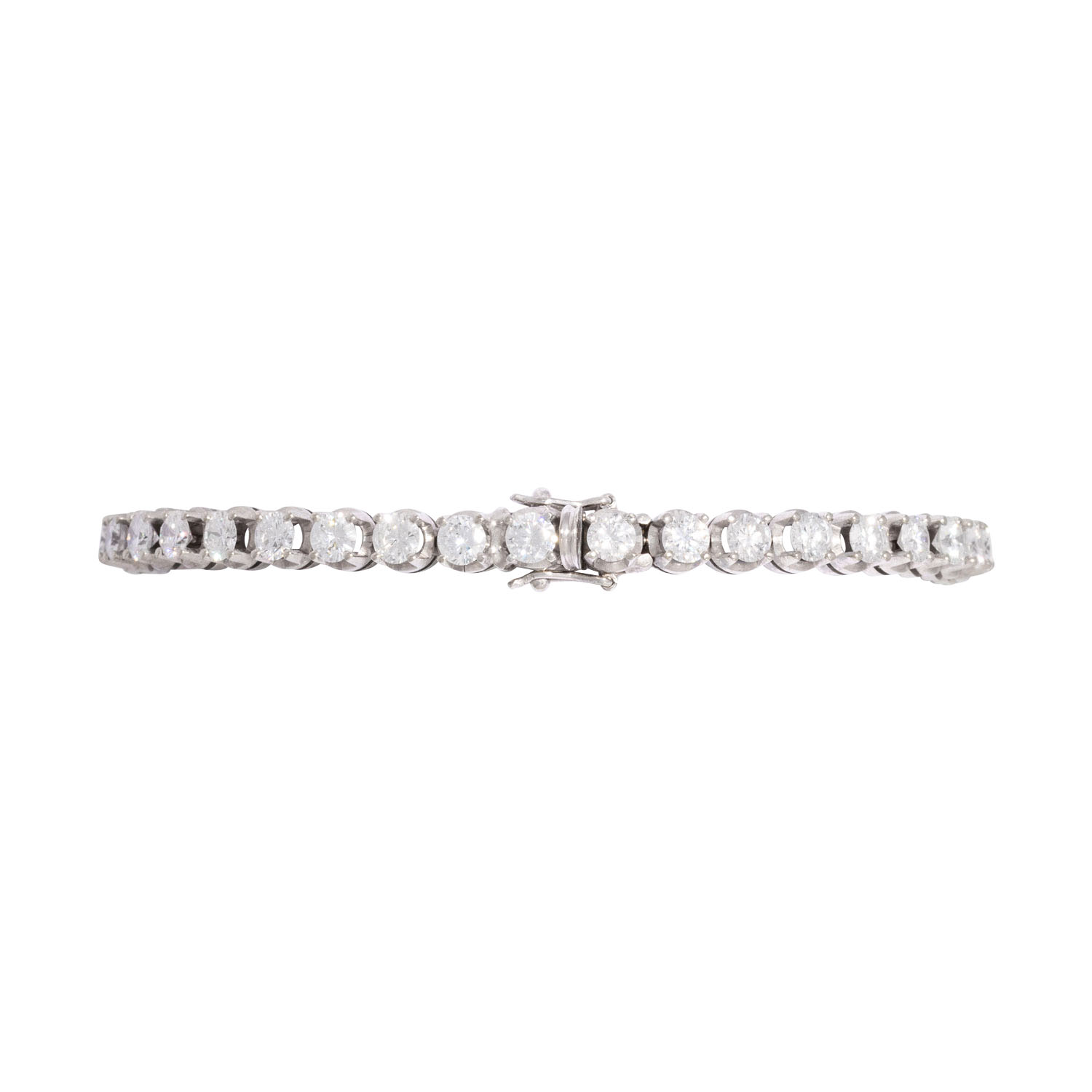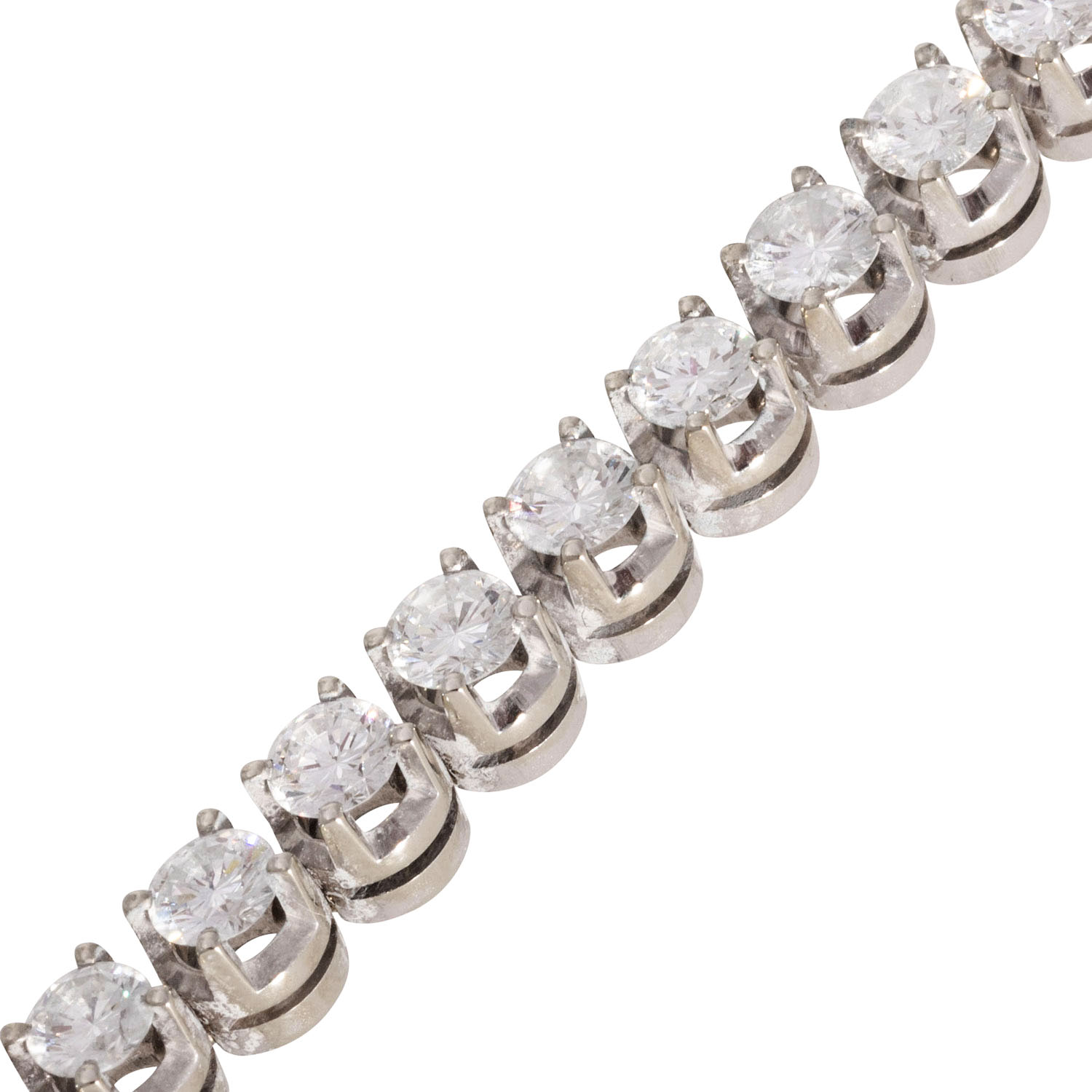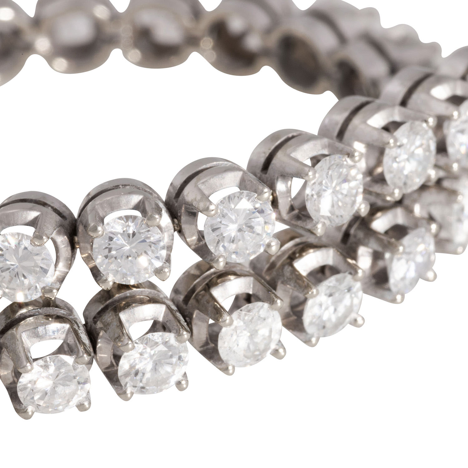 Bracelet with 39 brilliant cut diamonds, totalling 6.67 ct (cert.), RW(E-F)/IF, 18K white gold, 18.0 g, L: 19 cm, W: 4,8 mm, box clasp, 2 security catches, 1970s, minimal signs of wear, accessory: certificat of sale.