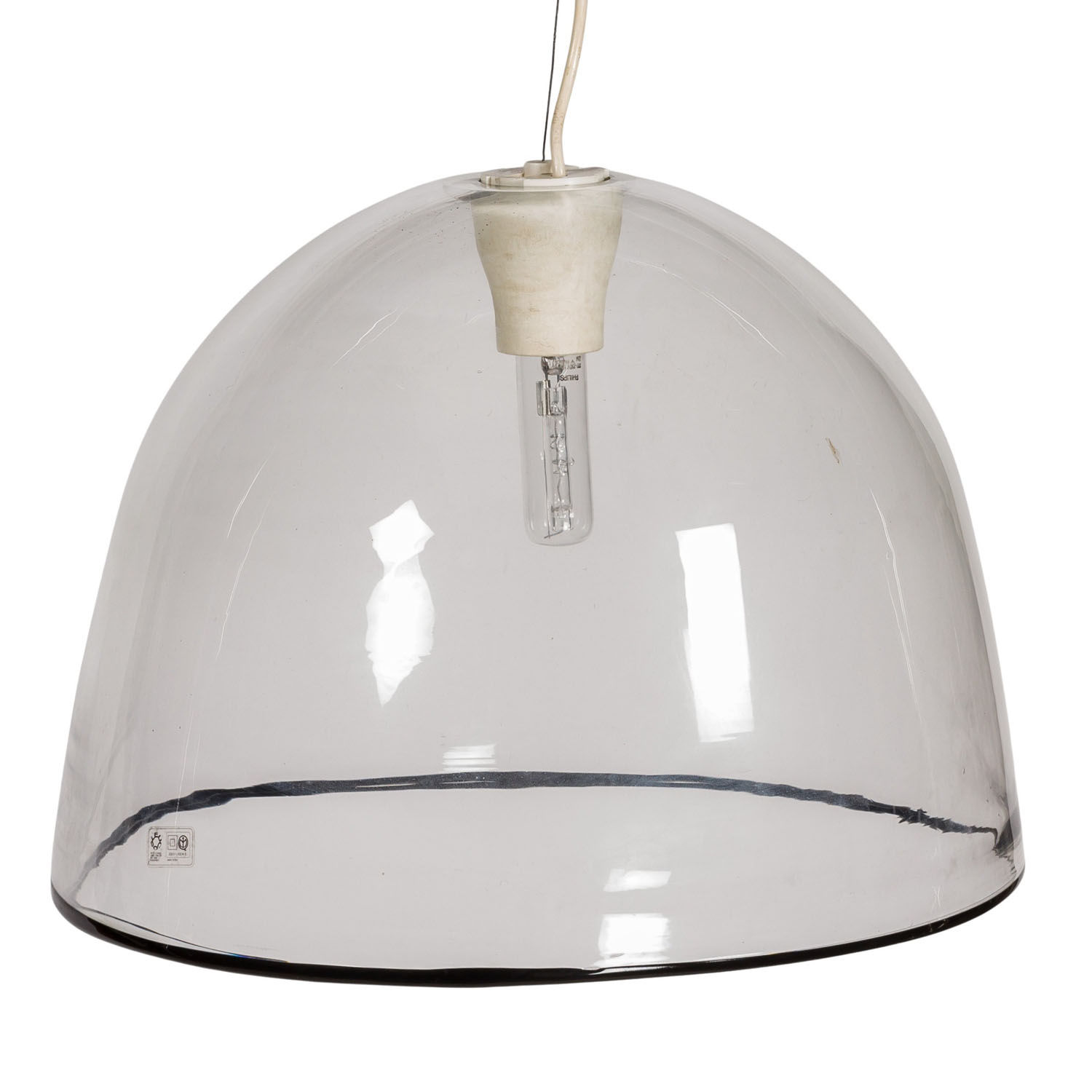 Italy, design 1970s, Leucos version, heavy glass shade made of Murano glass, black edging at the bottom. HxD: 33/45 cm. Signs of age and wear.