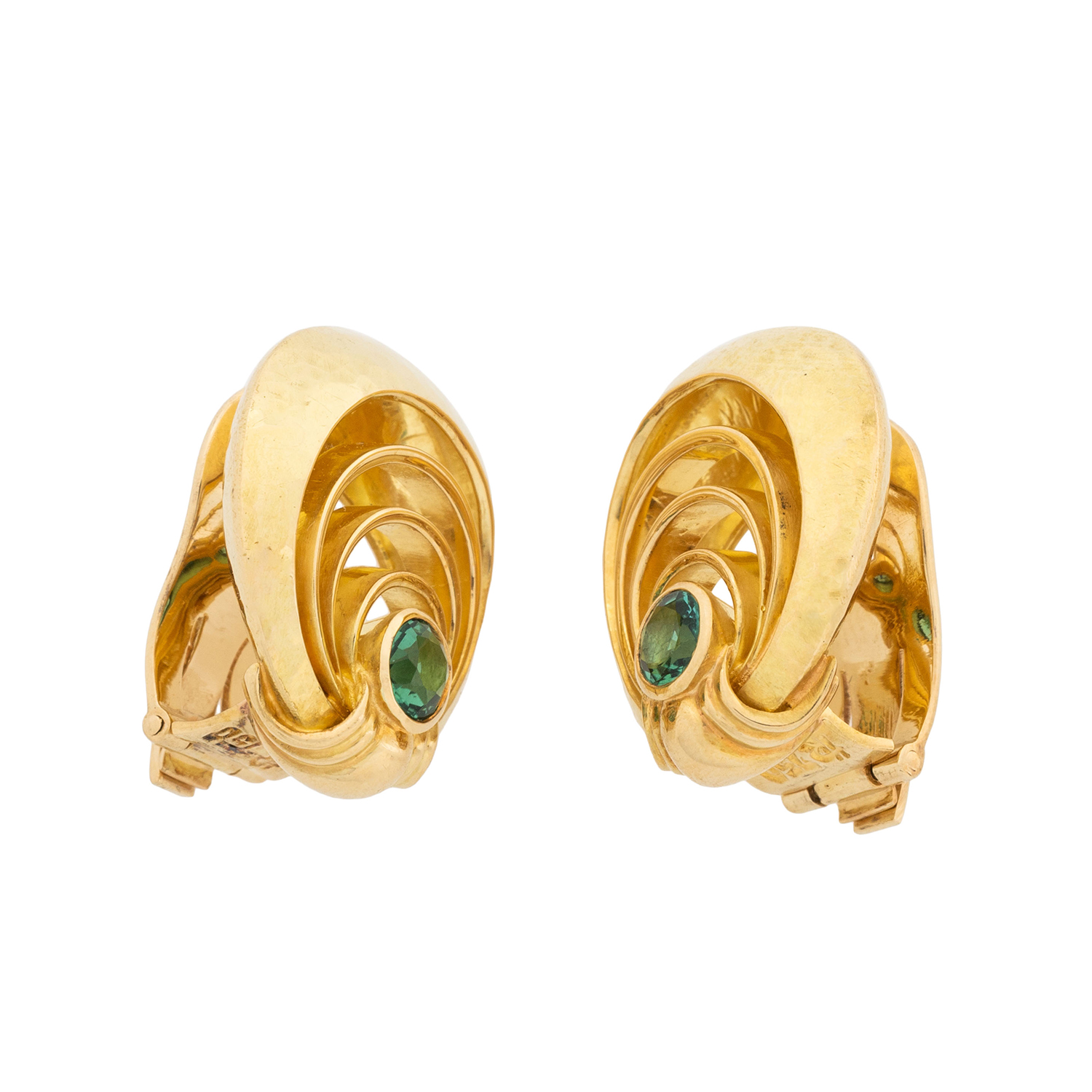 Pair of clip earrings with 2 green tourmalines and 4 diamonds