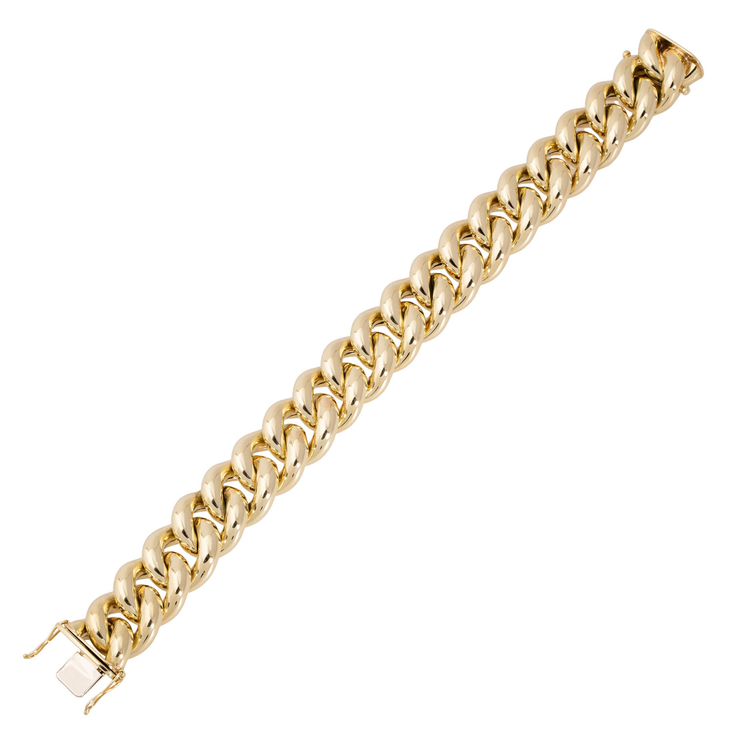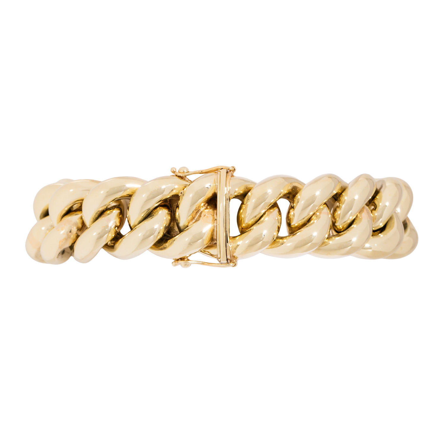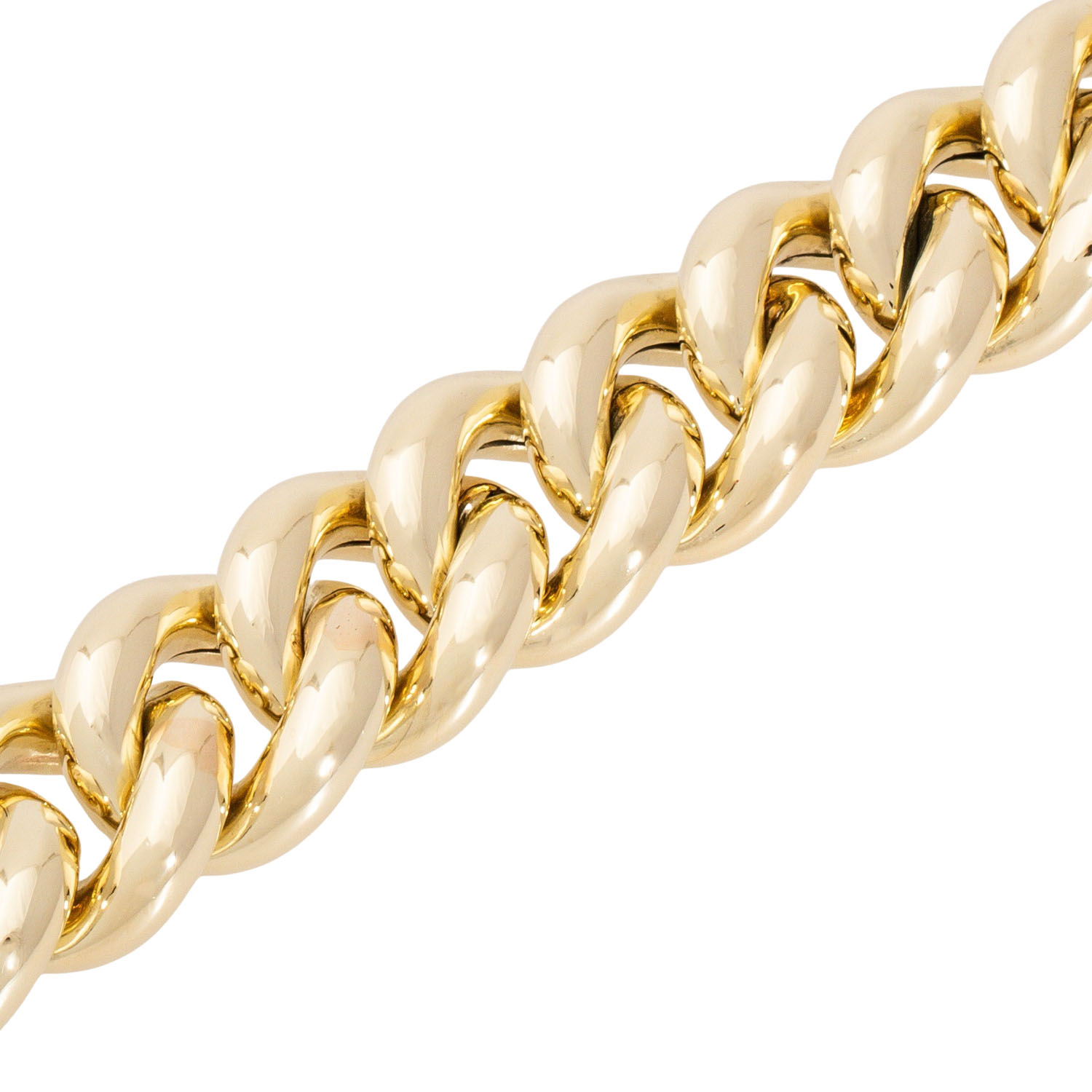 Bracelet round curb links, 14K yellow gold, 96 g, L: 21 cm, W x H: 17.5 x 9.2 g, box clasp, 2 safety catches, 1960s to 1980s, minimal signs of wear, accessories: original sale case.