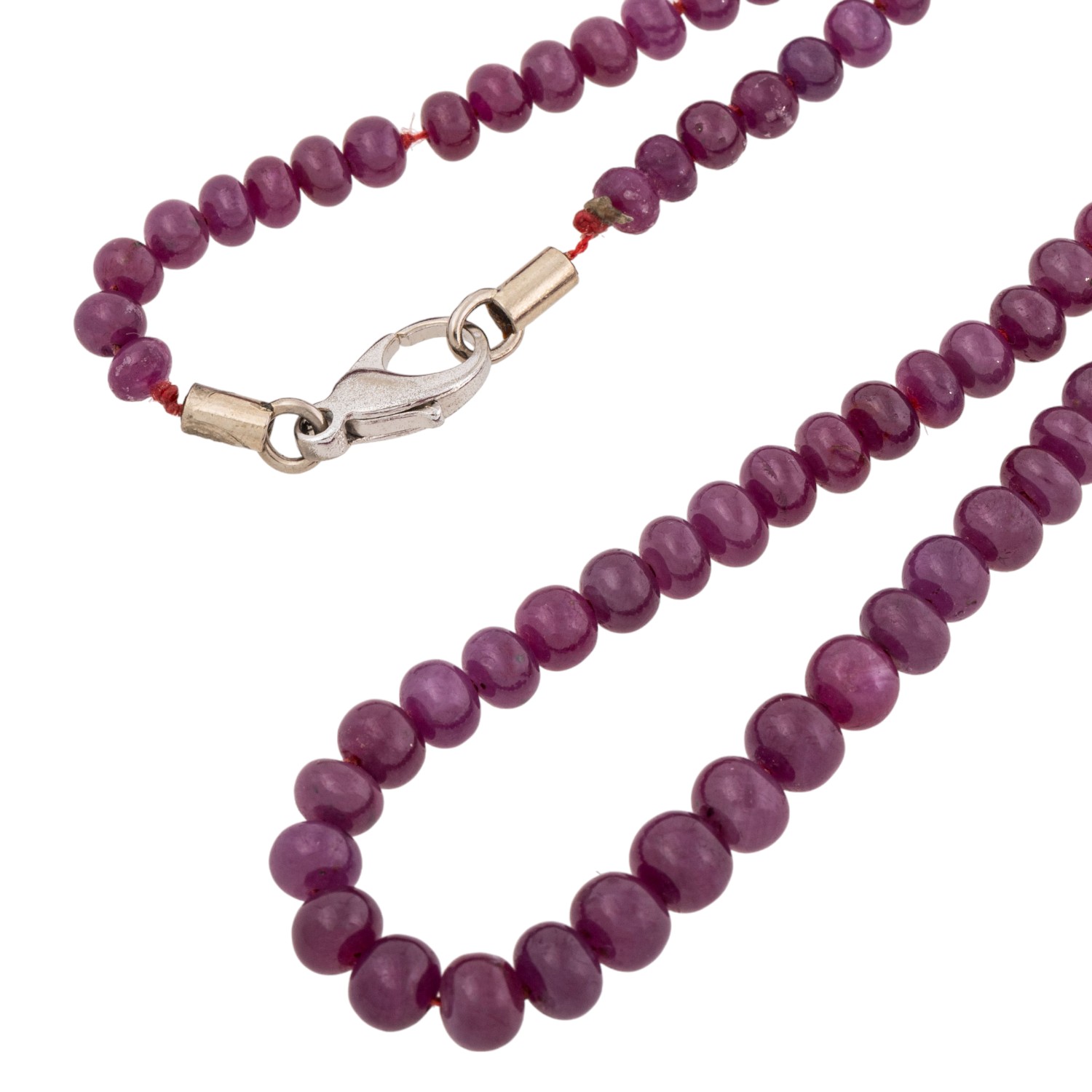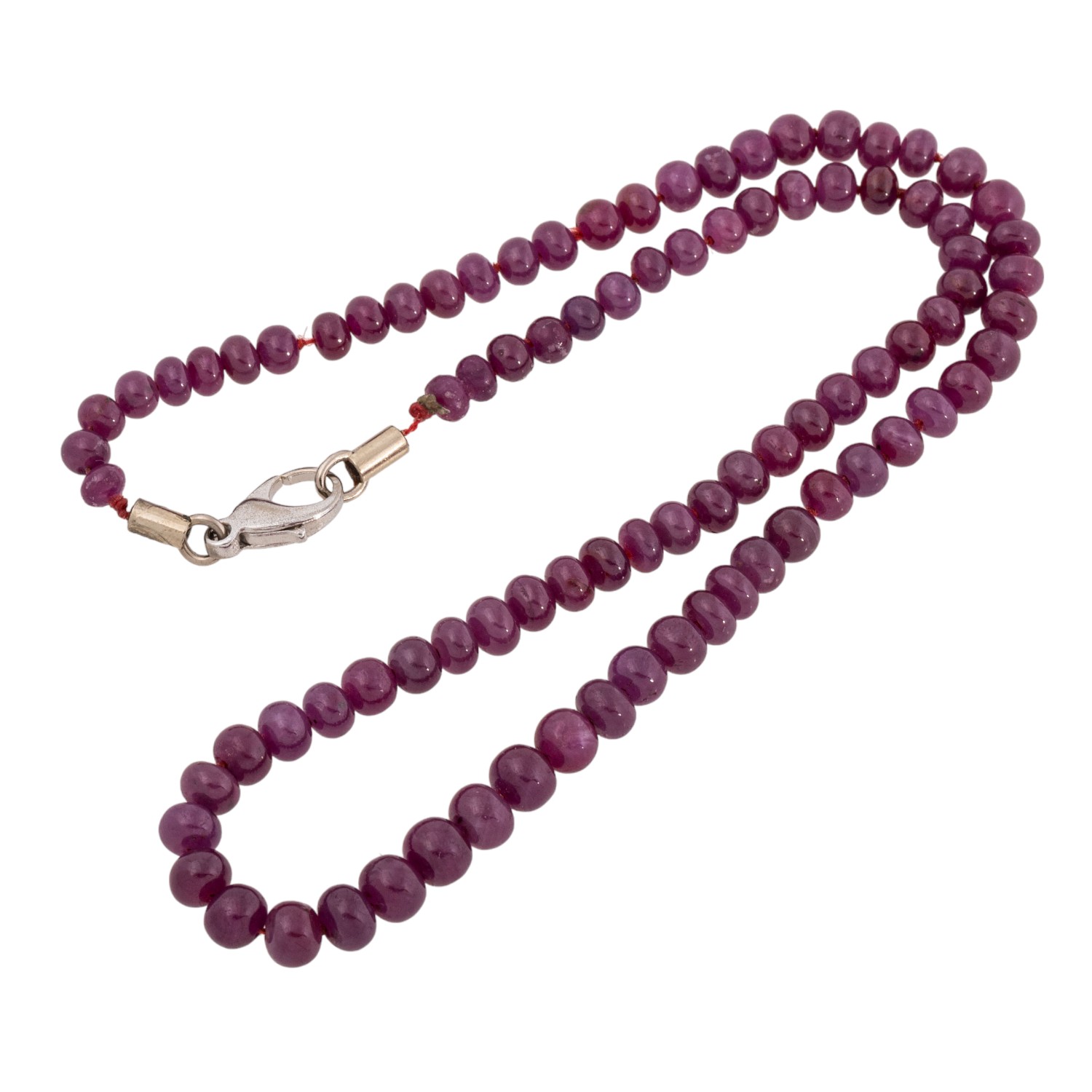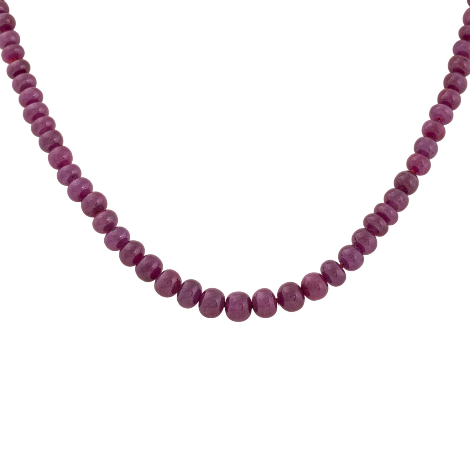 Necklace made of ruby rondels graduating from 4.5 to 6.5 mm, L: 43 cm, clasp made of 14K white gold, 20th/21st century, signs of wear and glue, should be threaded new.