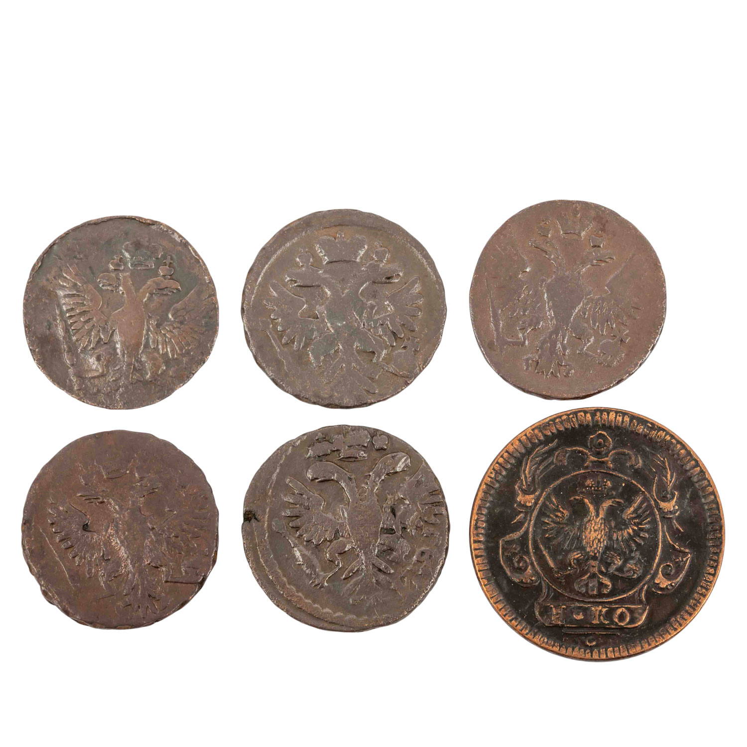 Russia - collection of 5 x 1/2 kopek (denga) and 1 x 2 Kopeks (restrike) Elizabeth and Anna 1731-1755, mainly copper coins, various states of preservation, mainly clear abrasion and also cleaning marks due to the surface procurement. No commitment to authenticity.