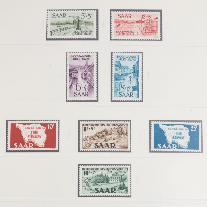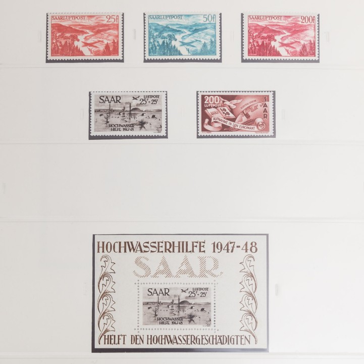 Saarland 1945–59*/**. Complete collection, mostly mint, block 1 in both types III (deeply signed Hoffmann) and VIII on safe dual sheets.