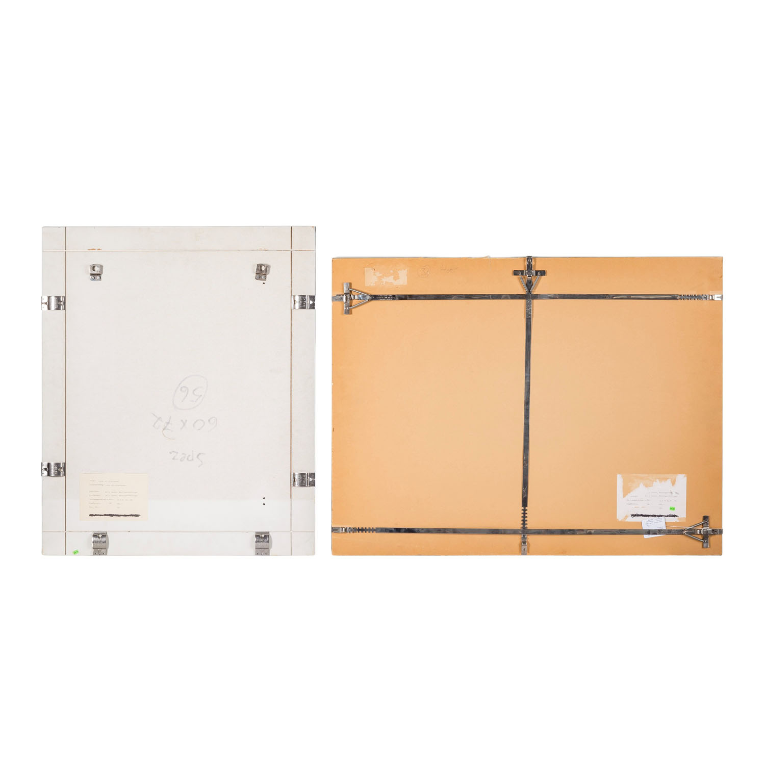 Watercolor on paper, HxW: 50/36 cm. and 36/64 cm. Traces of age. Both framed.