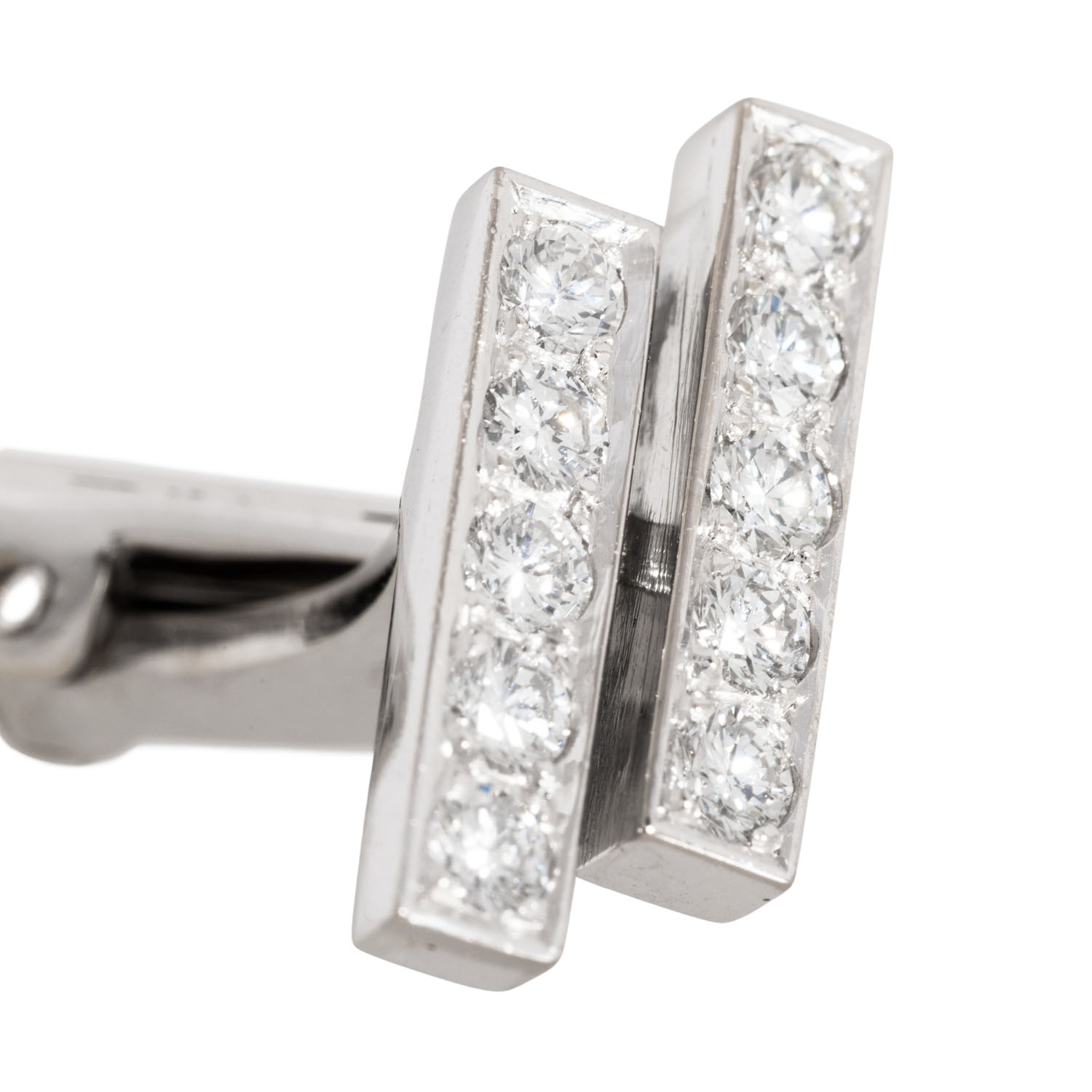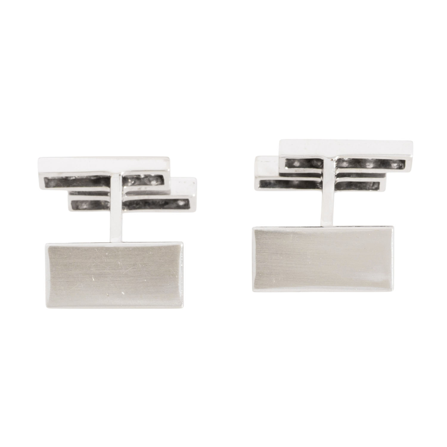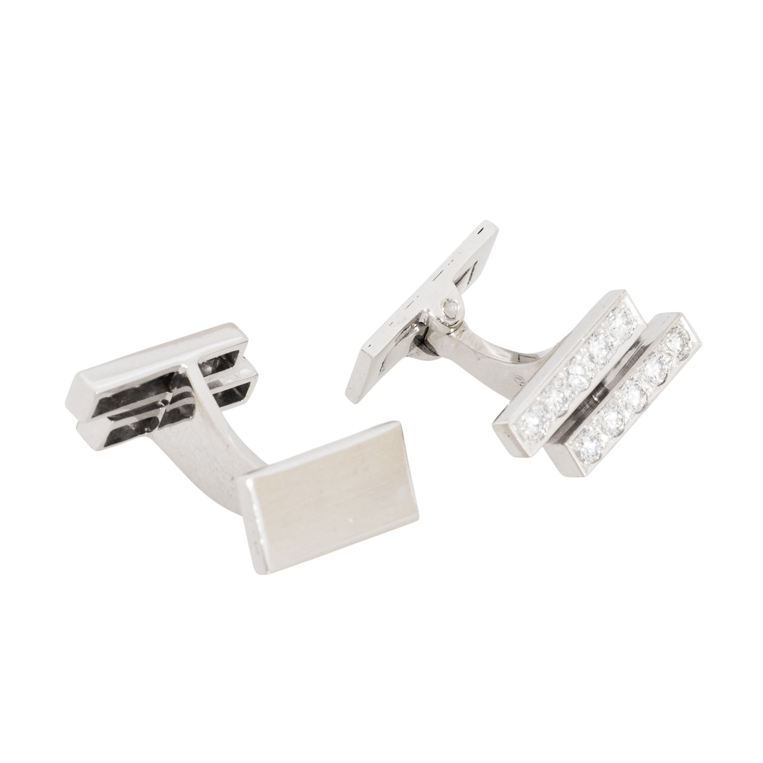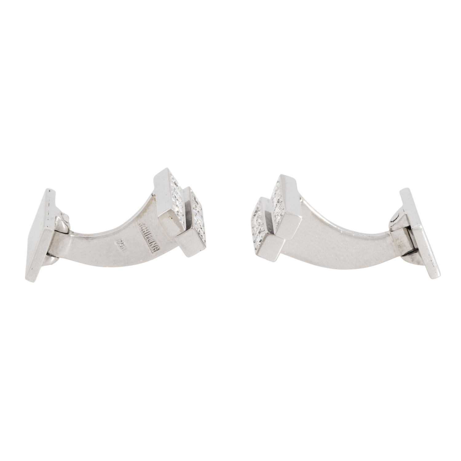 SCHILLING cuff links with brilliant-cut diamonds totalling ca. 1.2 ct, very good colour and clarity, 18K white gold, 11 g, 16x7 mm, ca. 1970-80s, minor signs of wear, marked 'SCHILLING', solid craftsmanship.