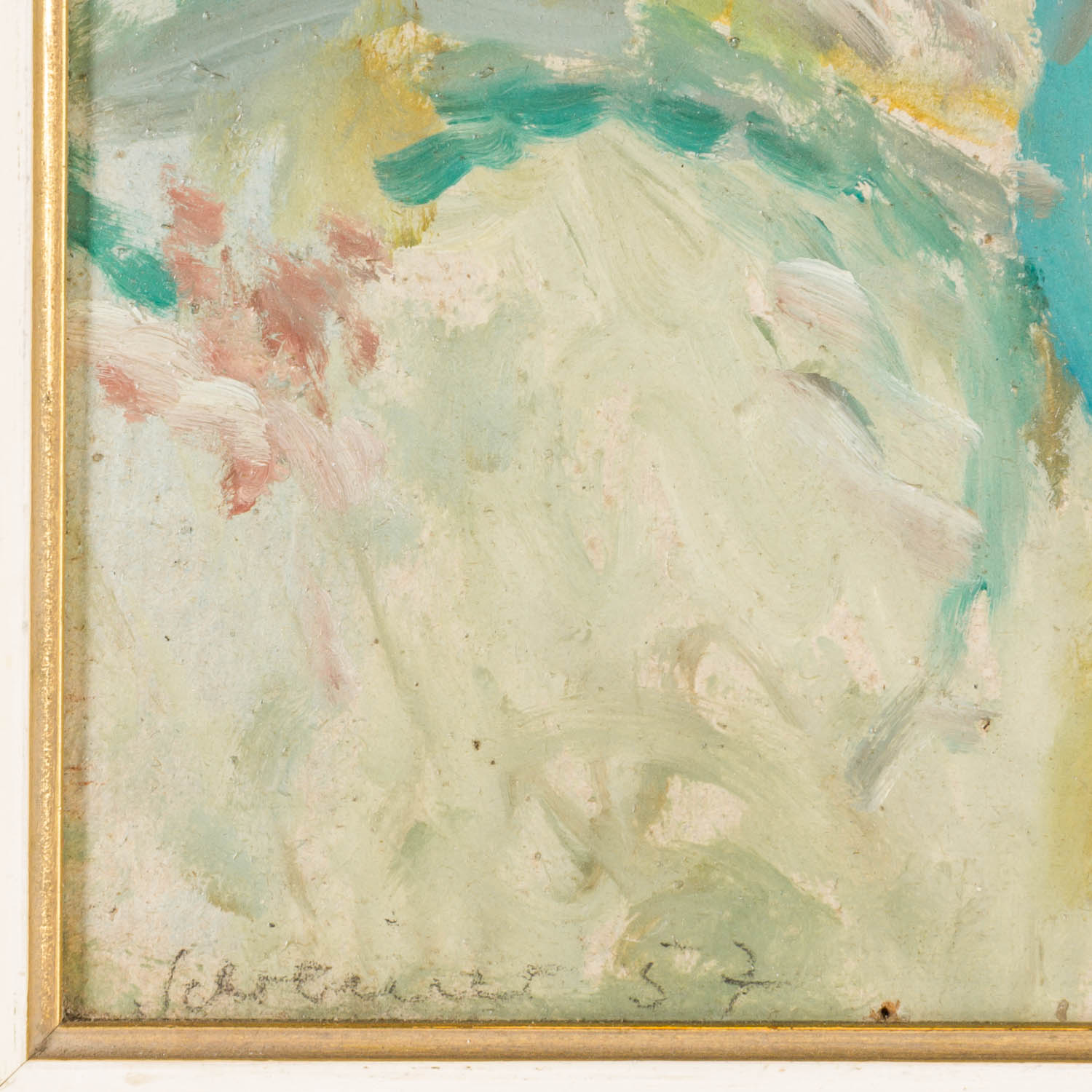SCHREINER, HANS (born 1930), 'Rocky Coast', 1957, signed and dated 'Schreiner 57' lower left, oil/hard fibre, HxW: approx. 35x44 cm (37.8x47 cm with frame). Traces of age, stains. With frame. PROVENANCE: from the circle of acquaintances of the artist.