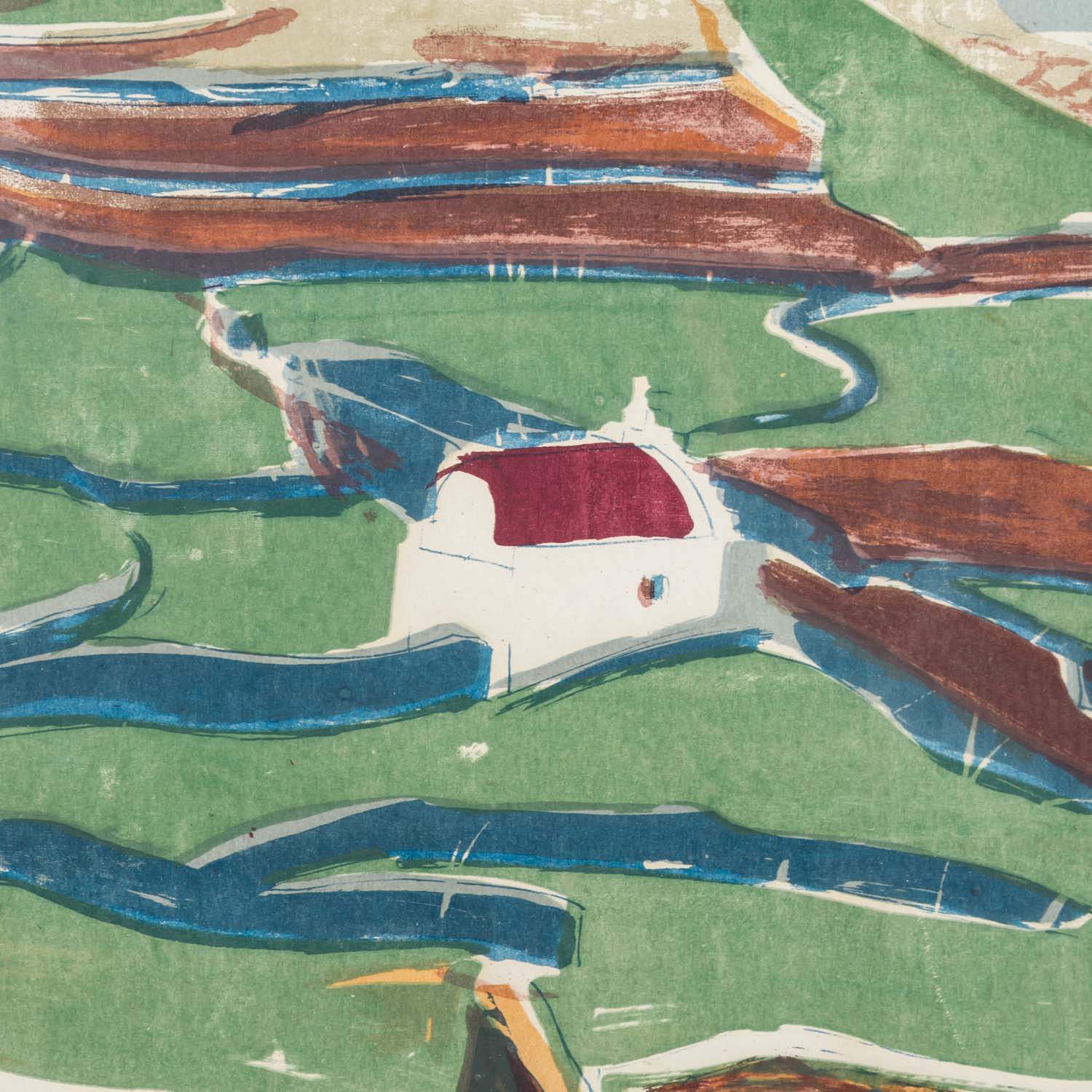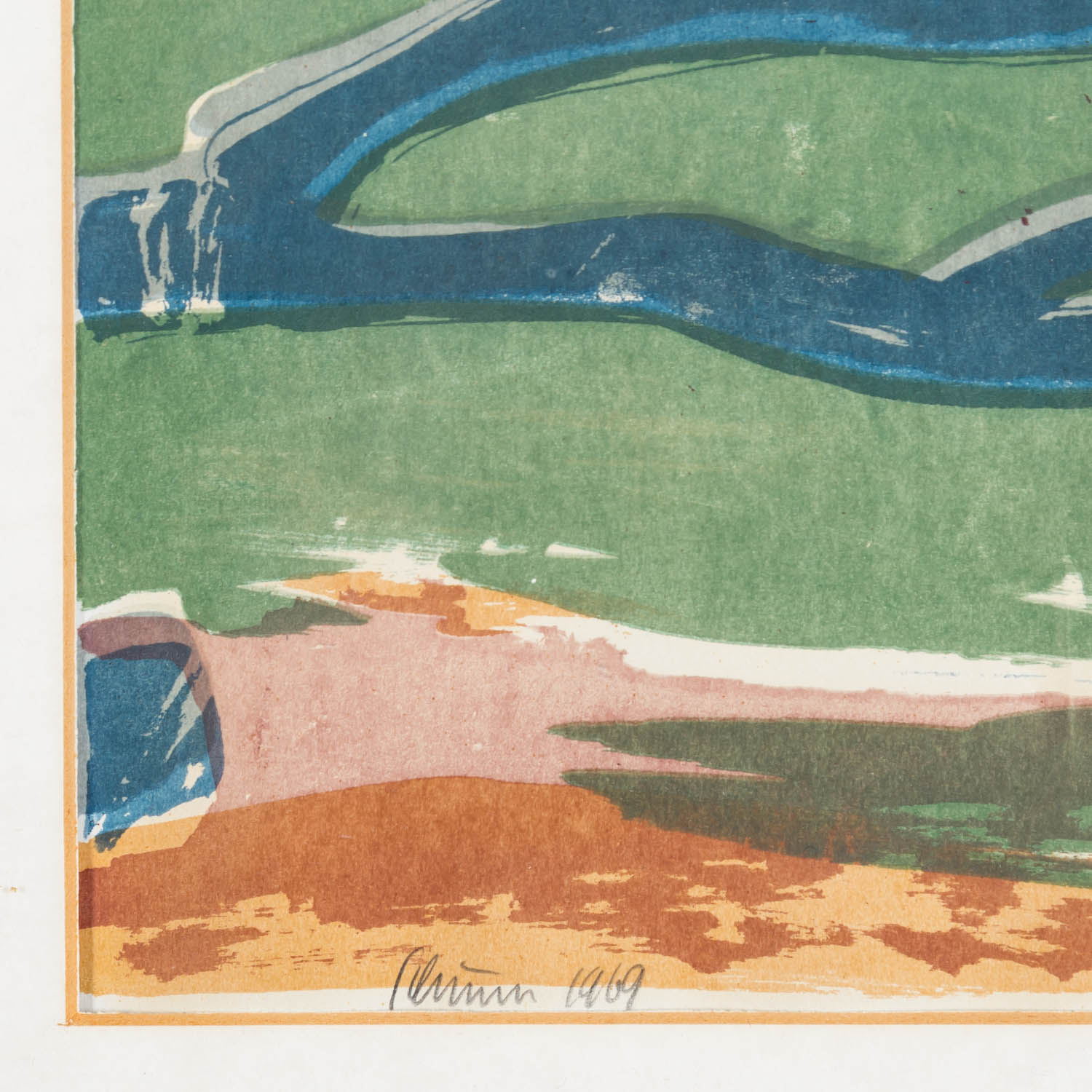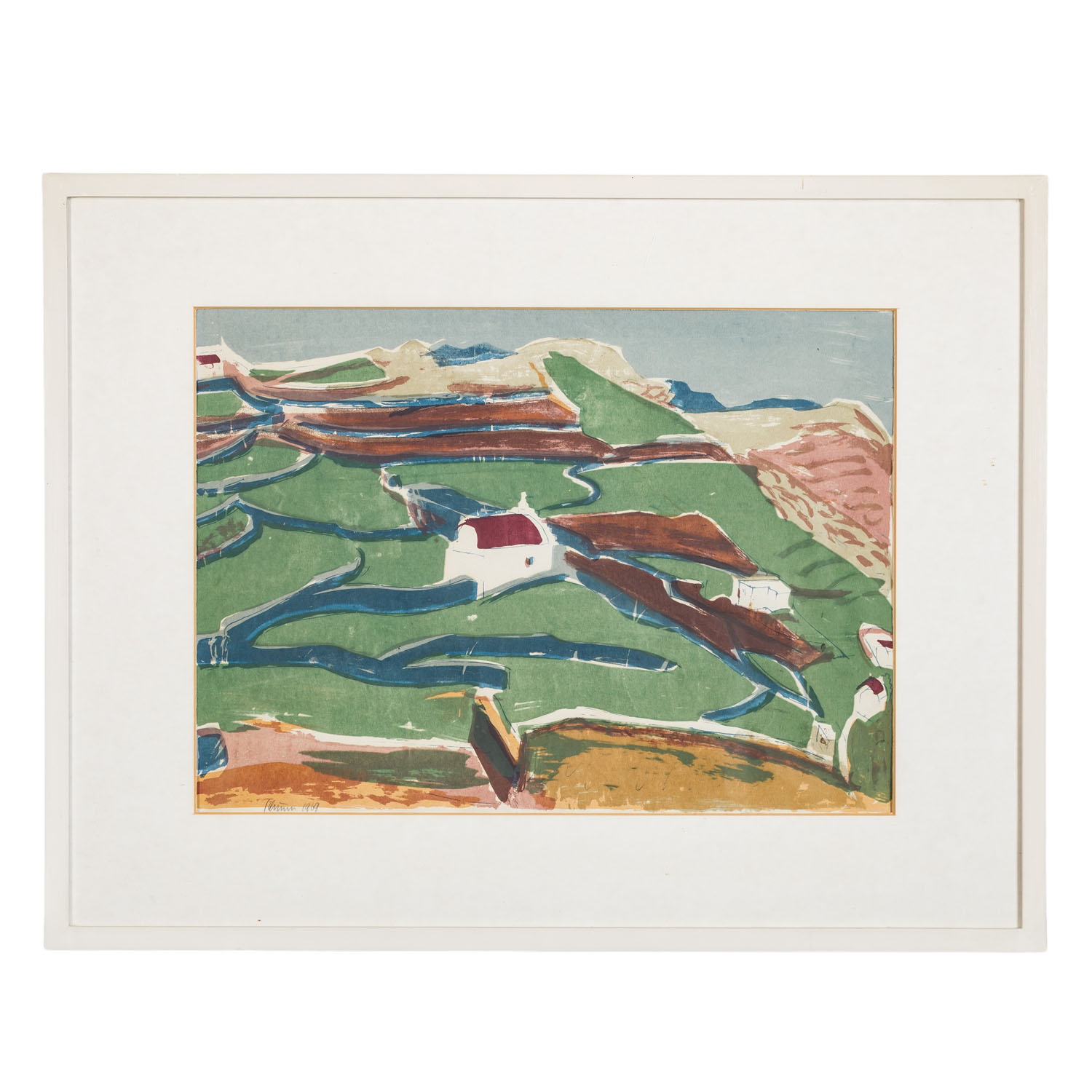 SCHUNN, HEINZ (1923-2014), ‘Weide mit weißer Kapelle’, Woodcut, signed lower left, verso titled ‘Weide mit weißer Kapelle’. HxW: 33.5/46.5 cm (mat cut-out) 52/67 cm (with frame). Traces of age, framed behind glass.